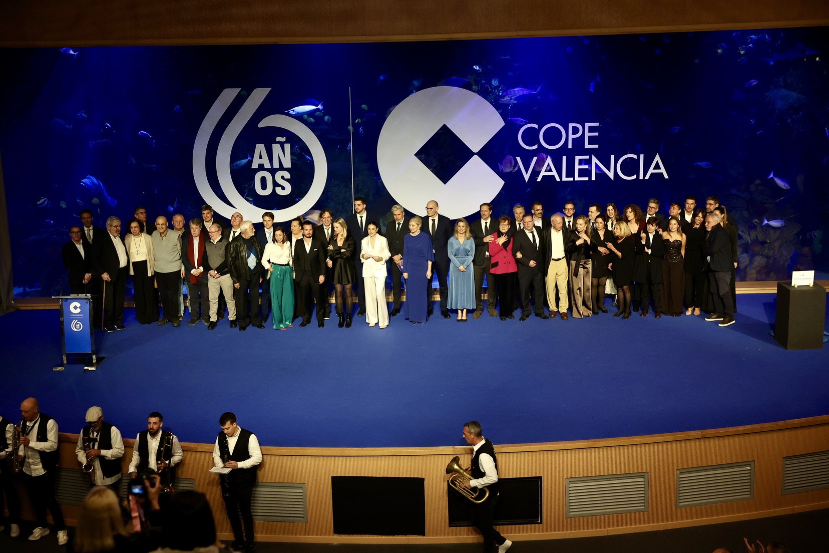La gala ha finalitzat amb una foto de família de tots els premiats, de tots els treballadors de COPE València, tant actuals com en els seus 60 anys d’història, i la interpretació de l’Himne Regional.