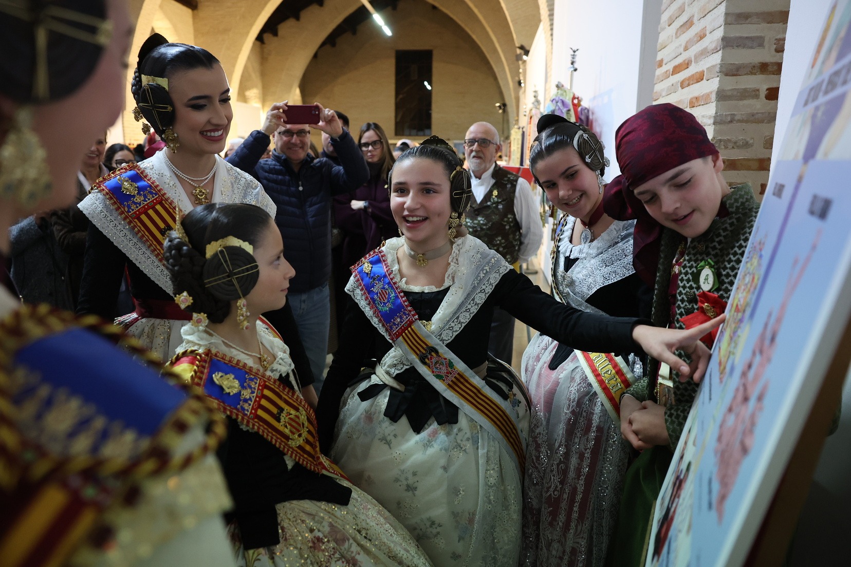 A la presentació han assistit les Falleres Majors de València, Carmen Prades Gil i Marta Mercader Roig, acompanyades per les seues Corts d’Honor, que han recorregut l’exposició i s’han interessat pels diferents esbossos, mantenint contacte directe amb representants i comissions.