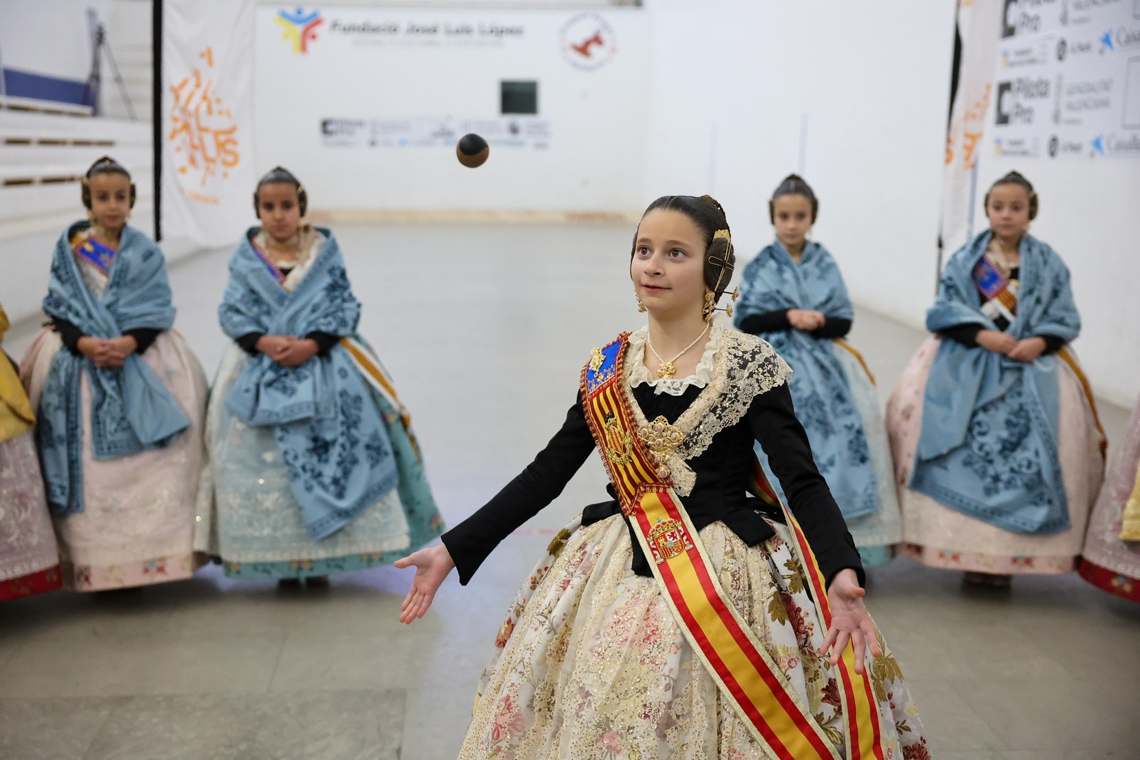 La jornada va començar amb la final del Trofeu Fallera Major Infantil de València, que va comptar amb la presència de Marta Mercader i la seua Cort d’Honor. Marta va realitzar la treta d’honor que va donar inici a la partida final de la qual, finalment, van eixir victoriosos els menuts de la falla Pintor Pascual Capuz-Fontanars.