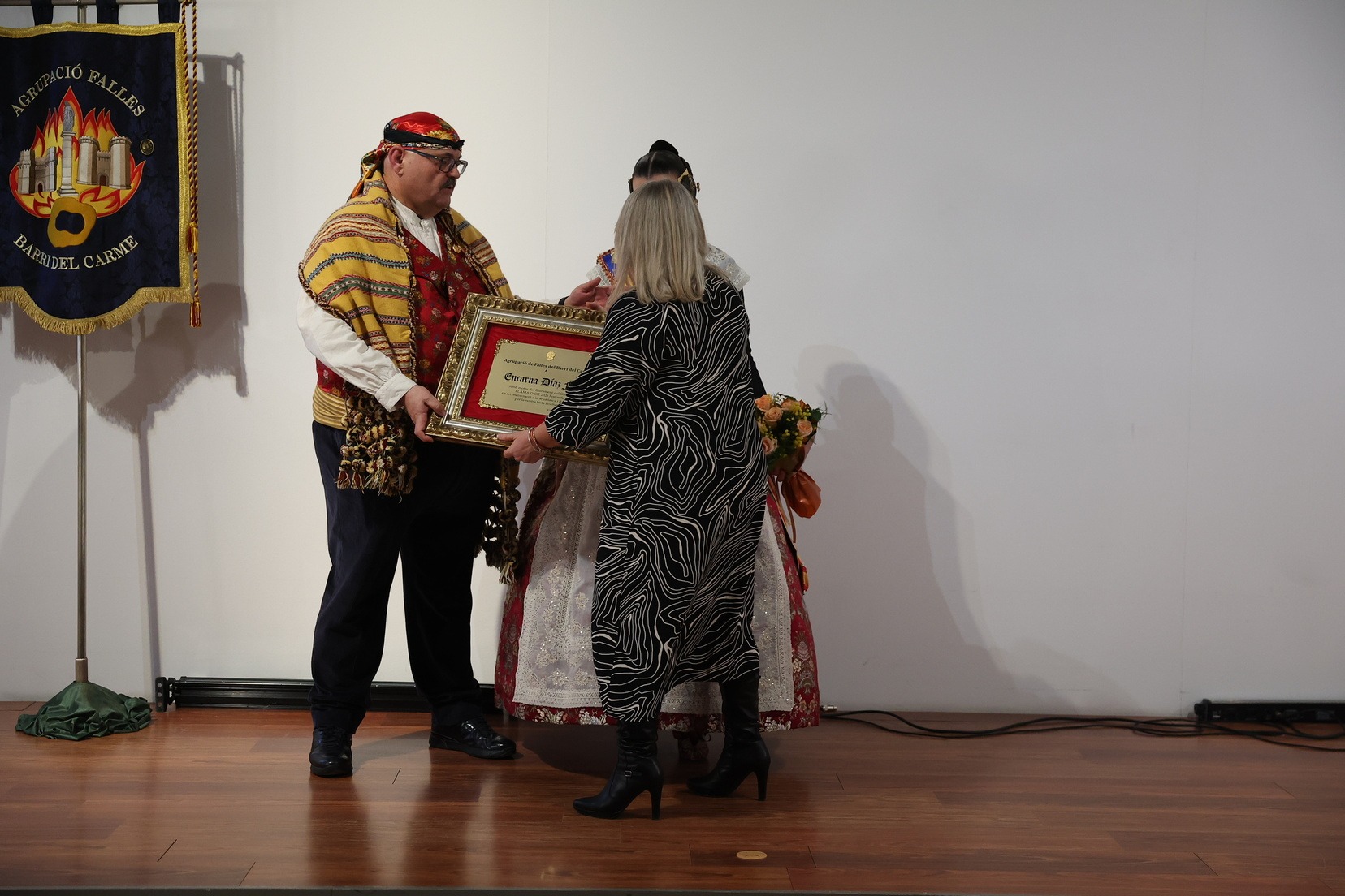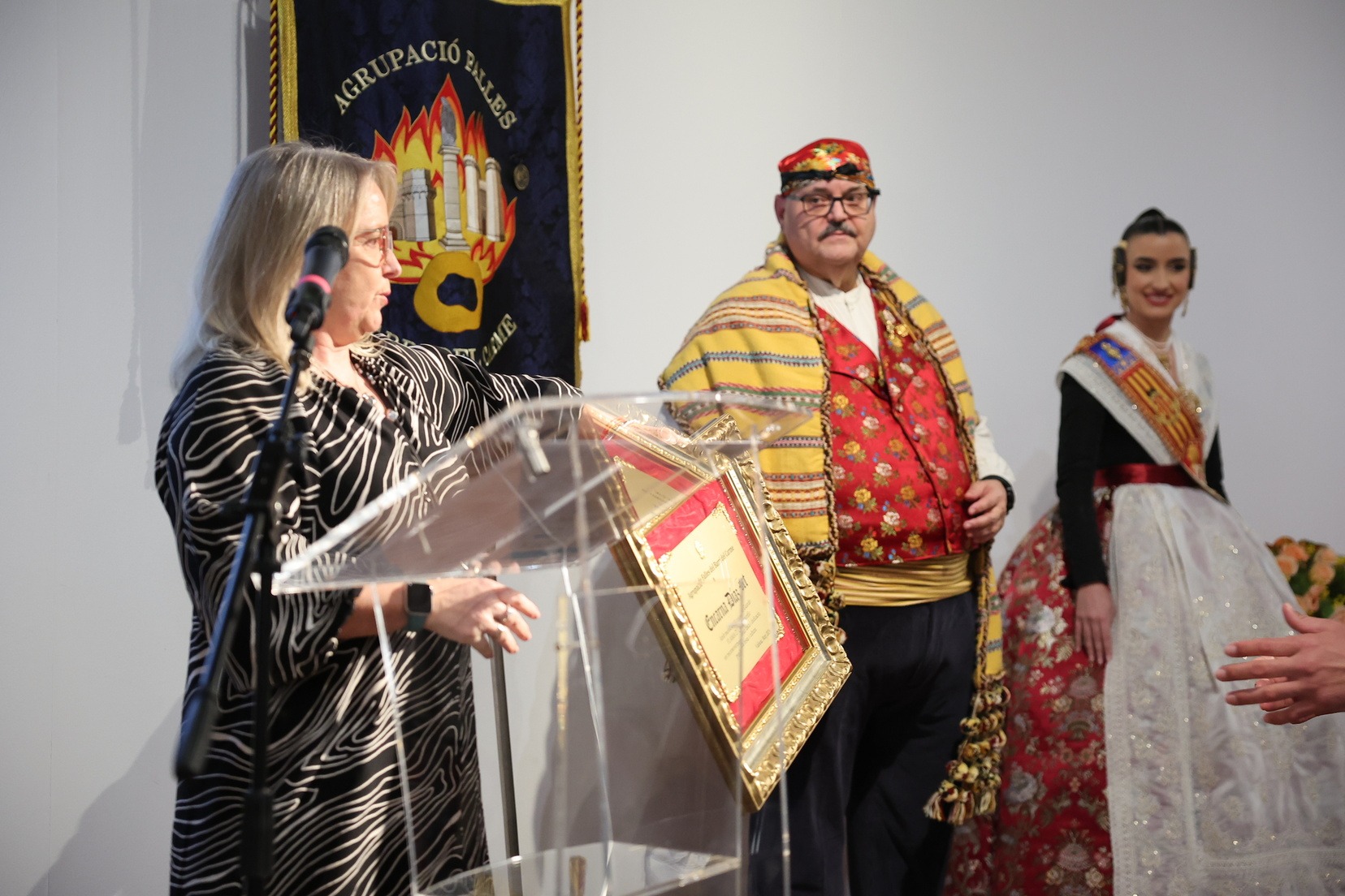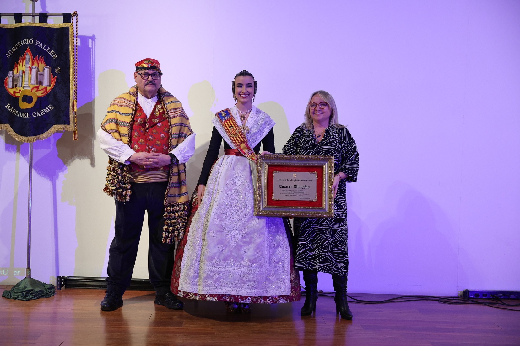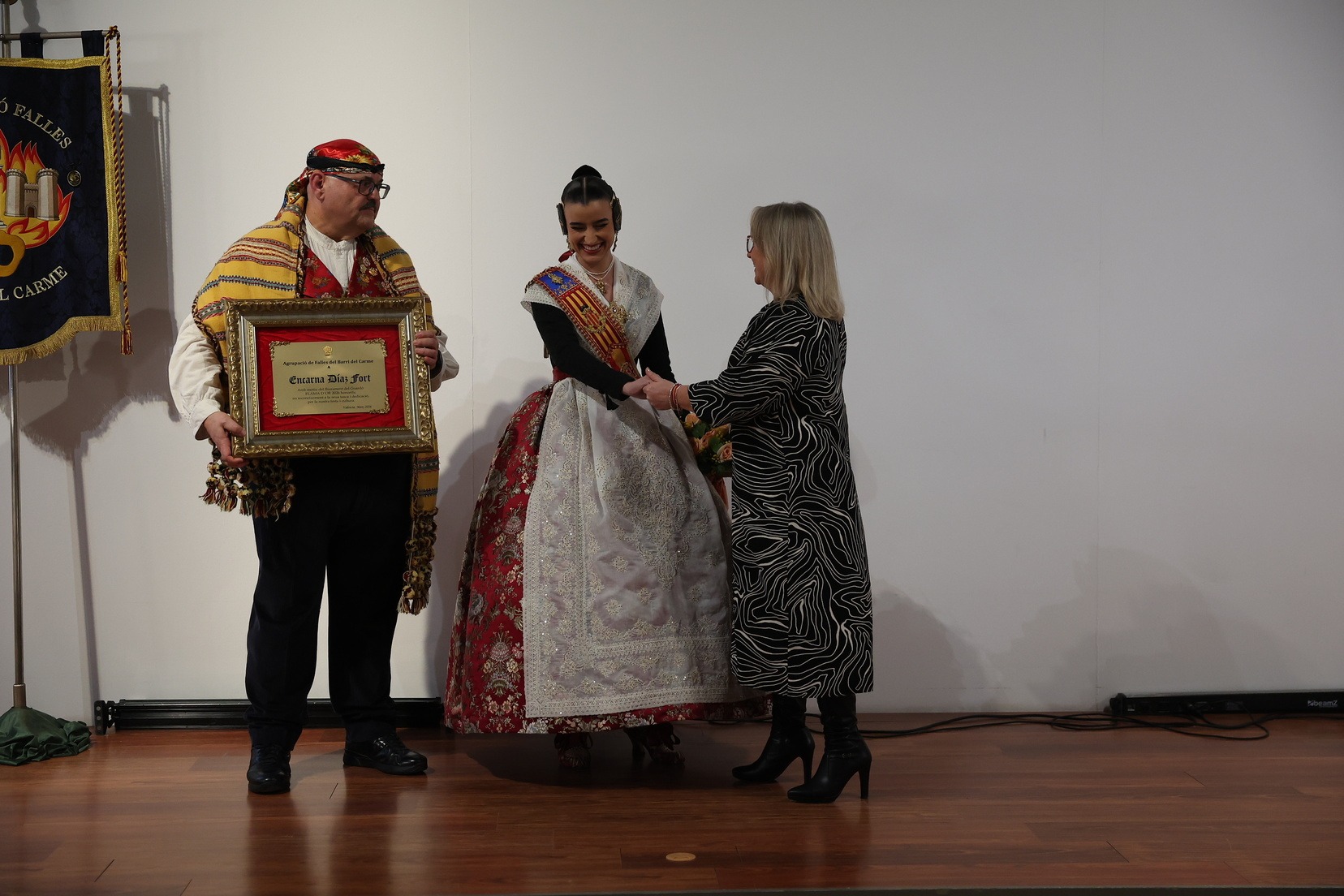 La Fallera Major de València, Carmen Prades, ha sigut l’encarregada de realitzar l’entrega d’este guardó, que enguany ha recaigut en Encarna Díaz i Javier Mozas, en una cerimònia marcada per l’emoció i el simbolisme.
