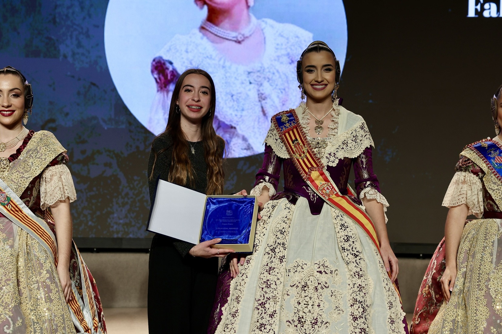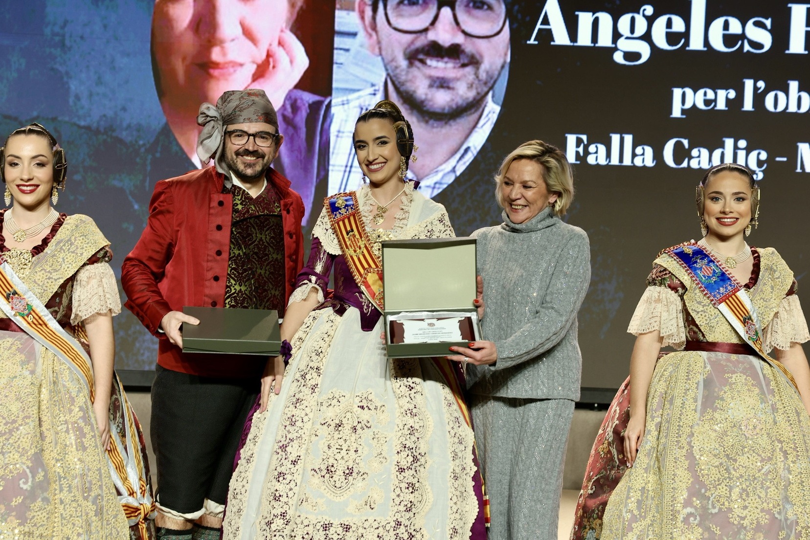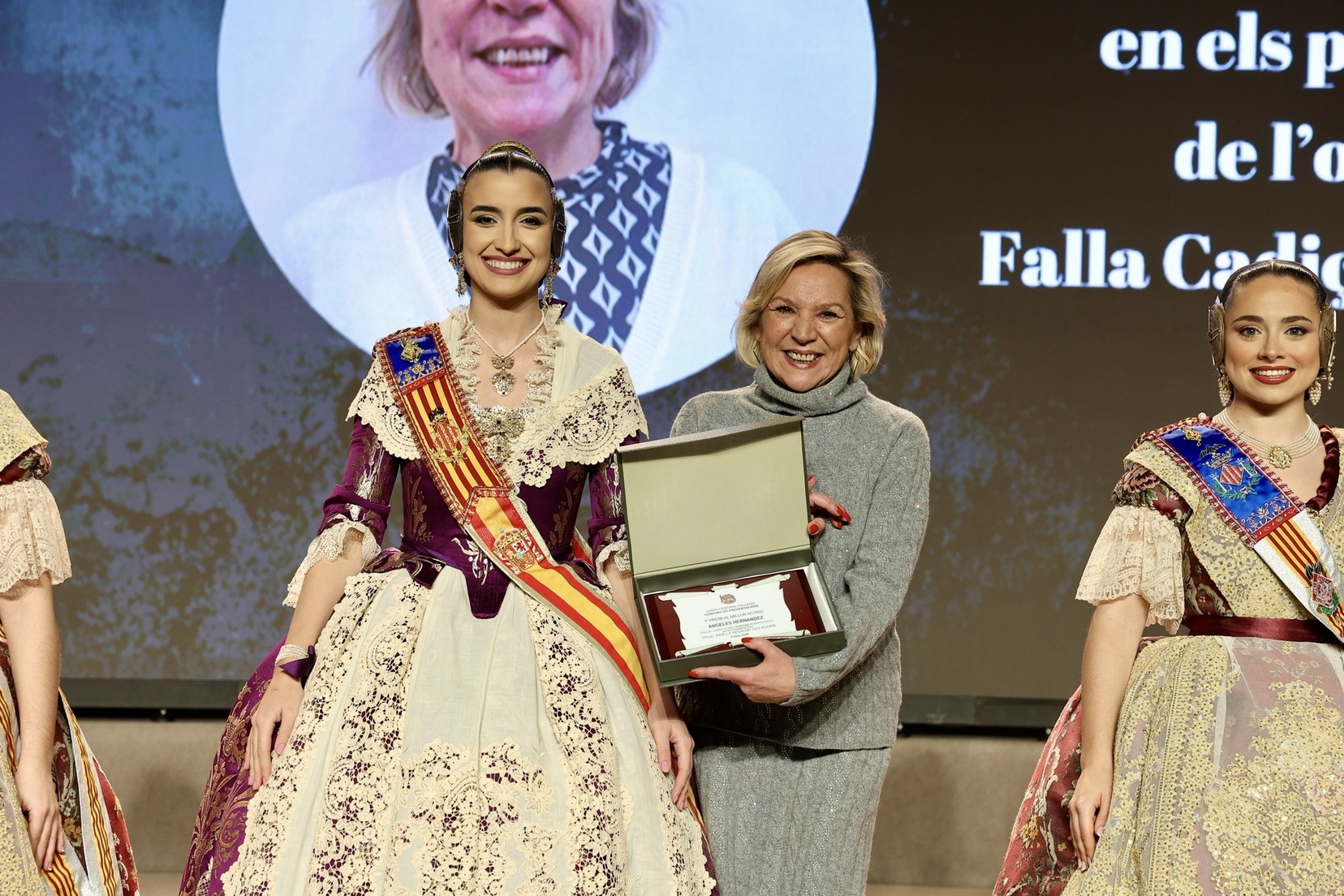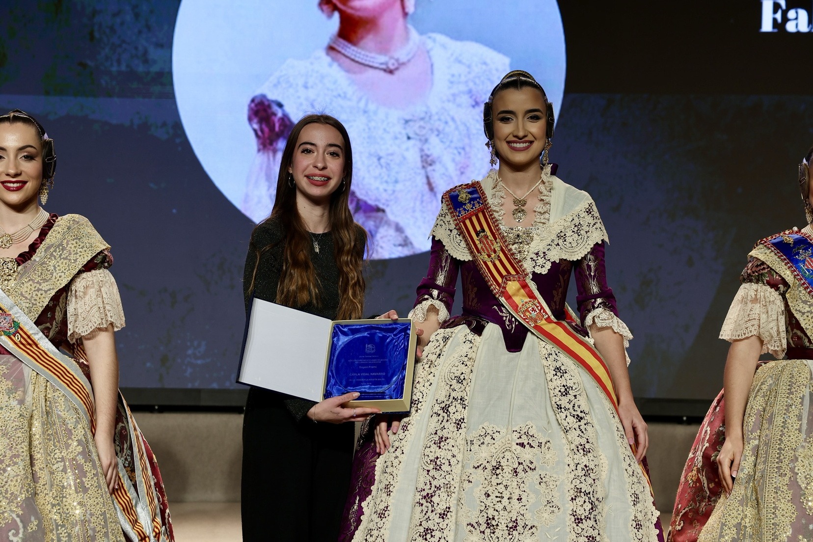 Per la seua banda, la Fallera Major de València, Carmen Prades Gil, acompanyada per la seua Cort d’Honor, ha entregat els premis corresponents a la categoria adulta dels Concursos de Declamació, Literari, Audiovisuals i Presentacions.