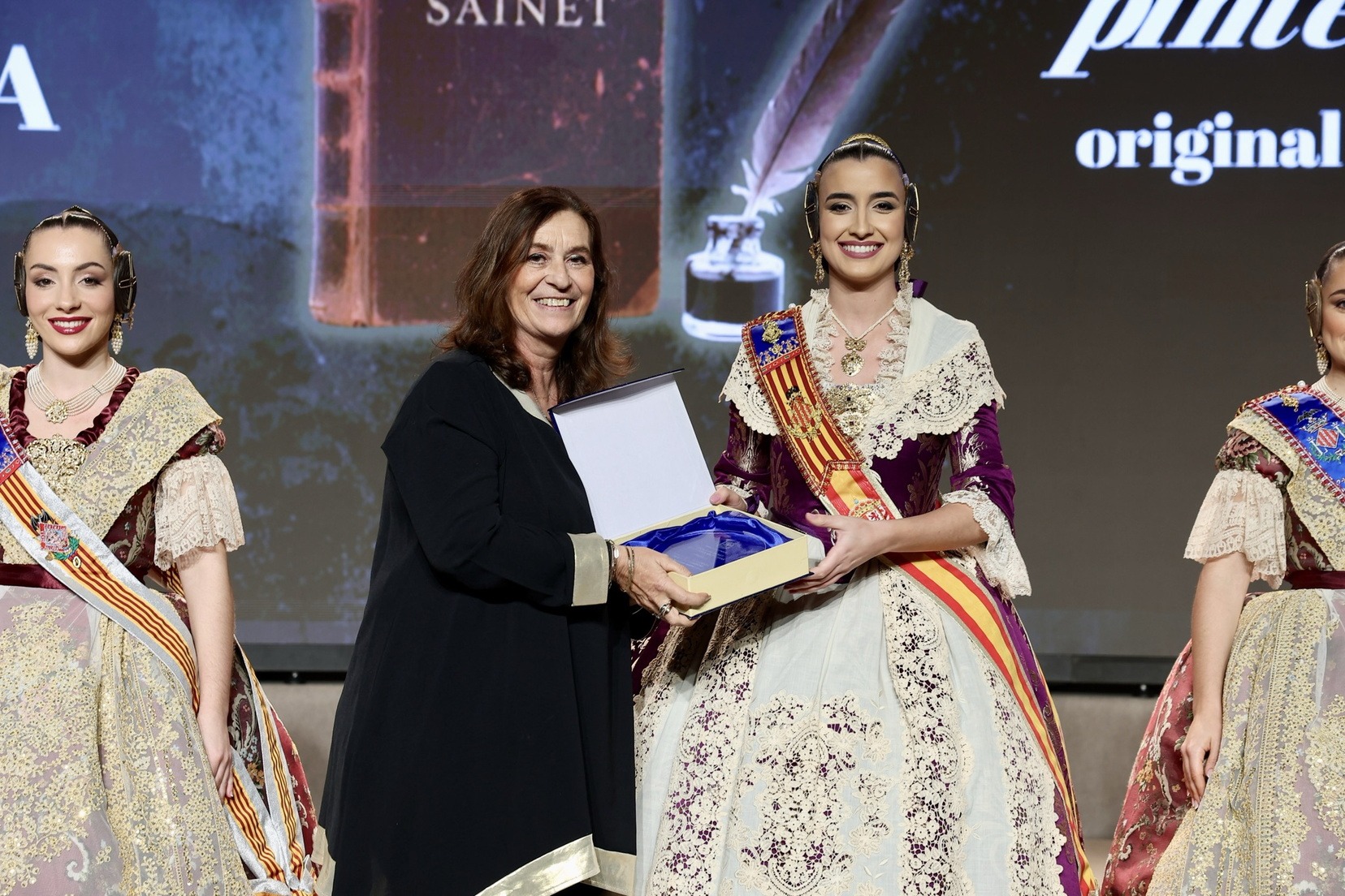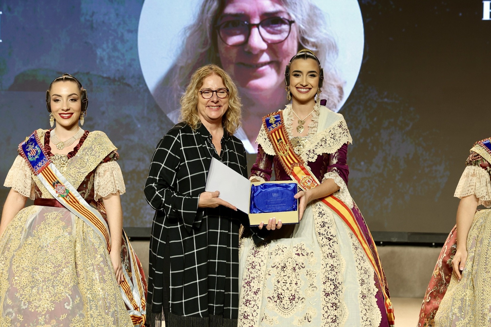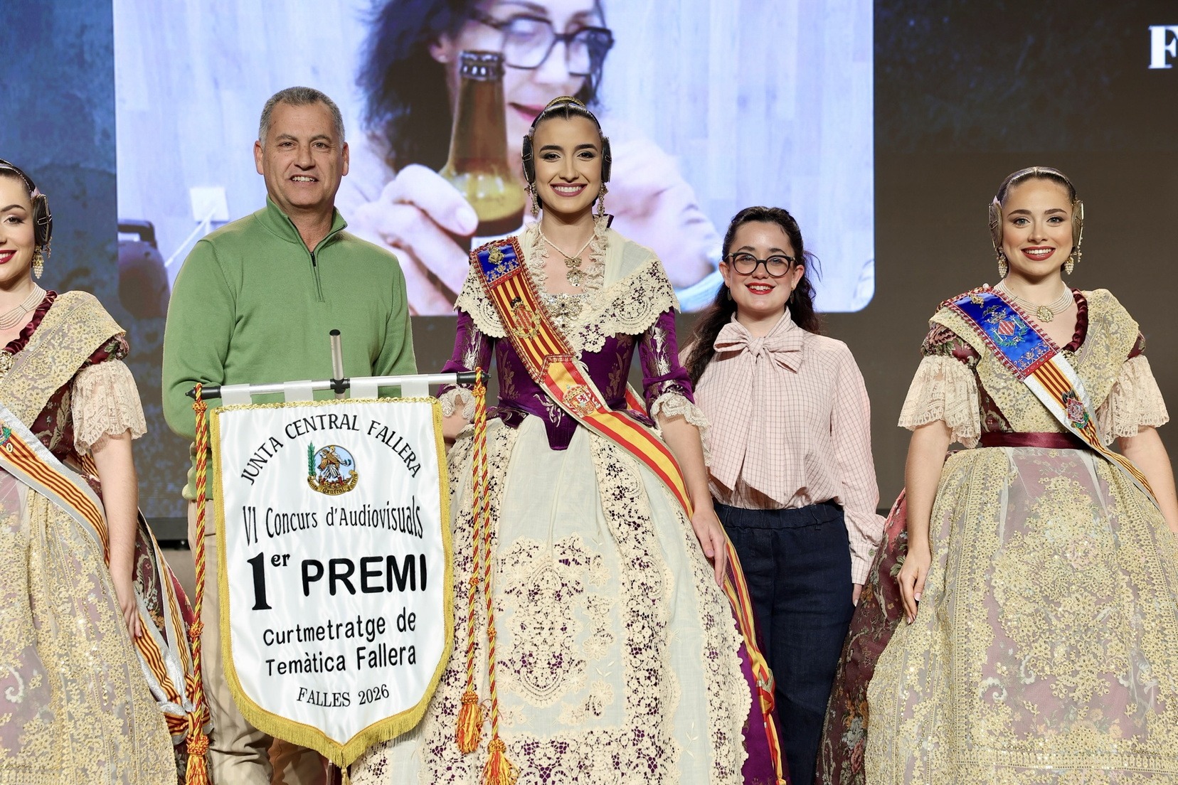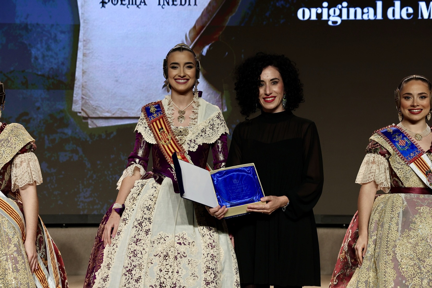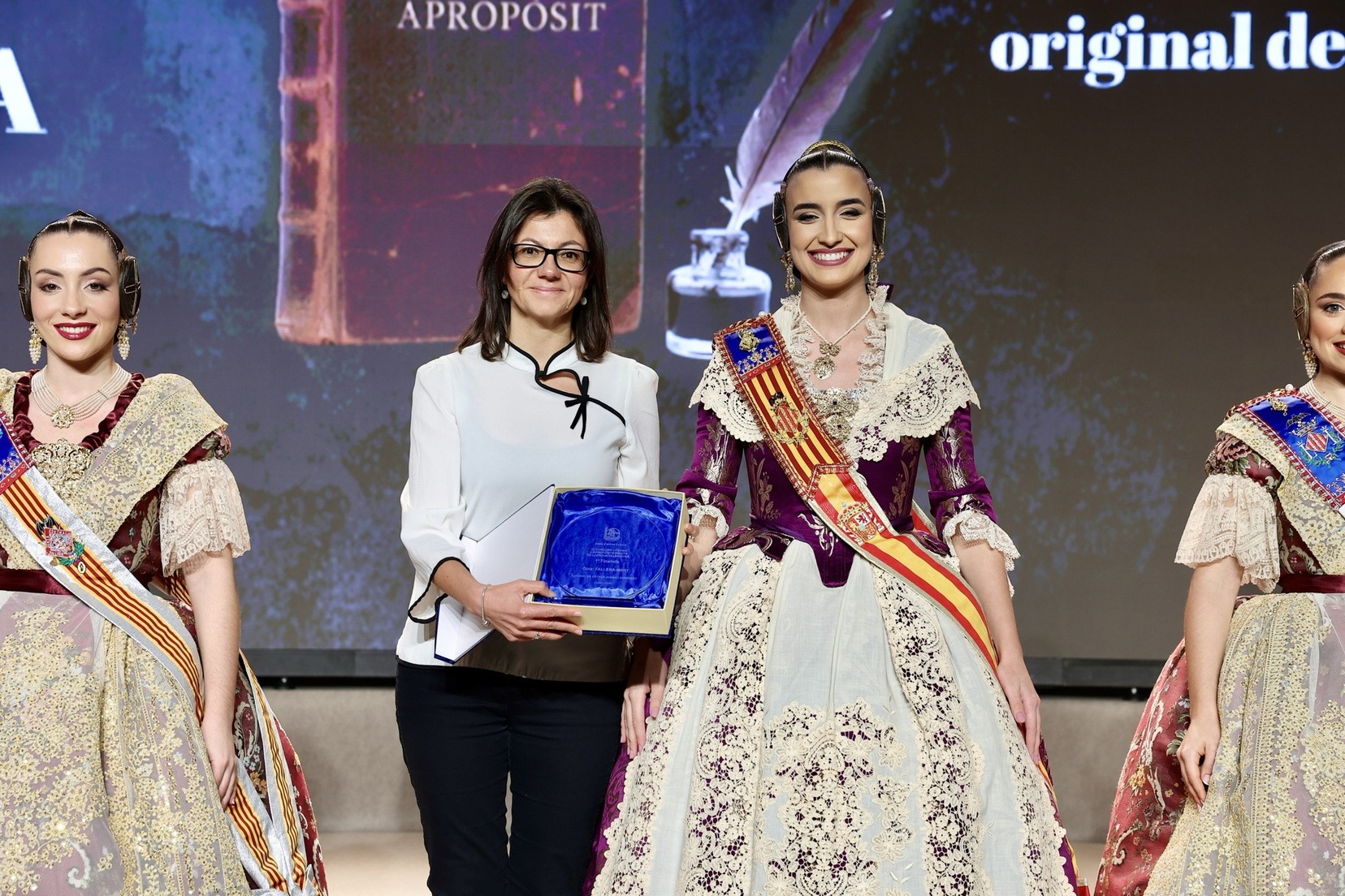 Per la seua banda, la Fallera Major de València, Carmen Prades Gil, acompanyada per la seua Cort d’Honor, ha entregat els premis corresponents a la categoria adulta dels Concursos de Declamació, Literari, Audiovisuals i Presentacions.