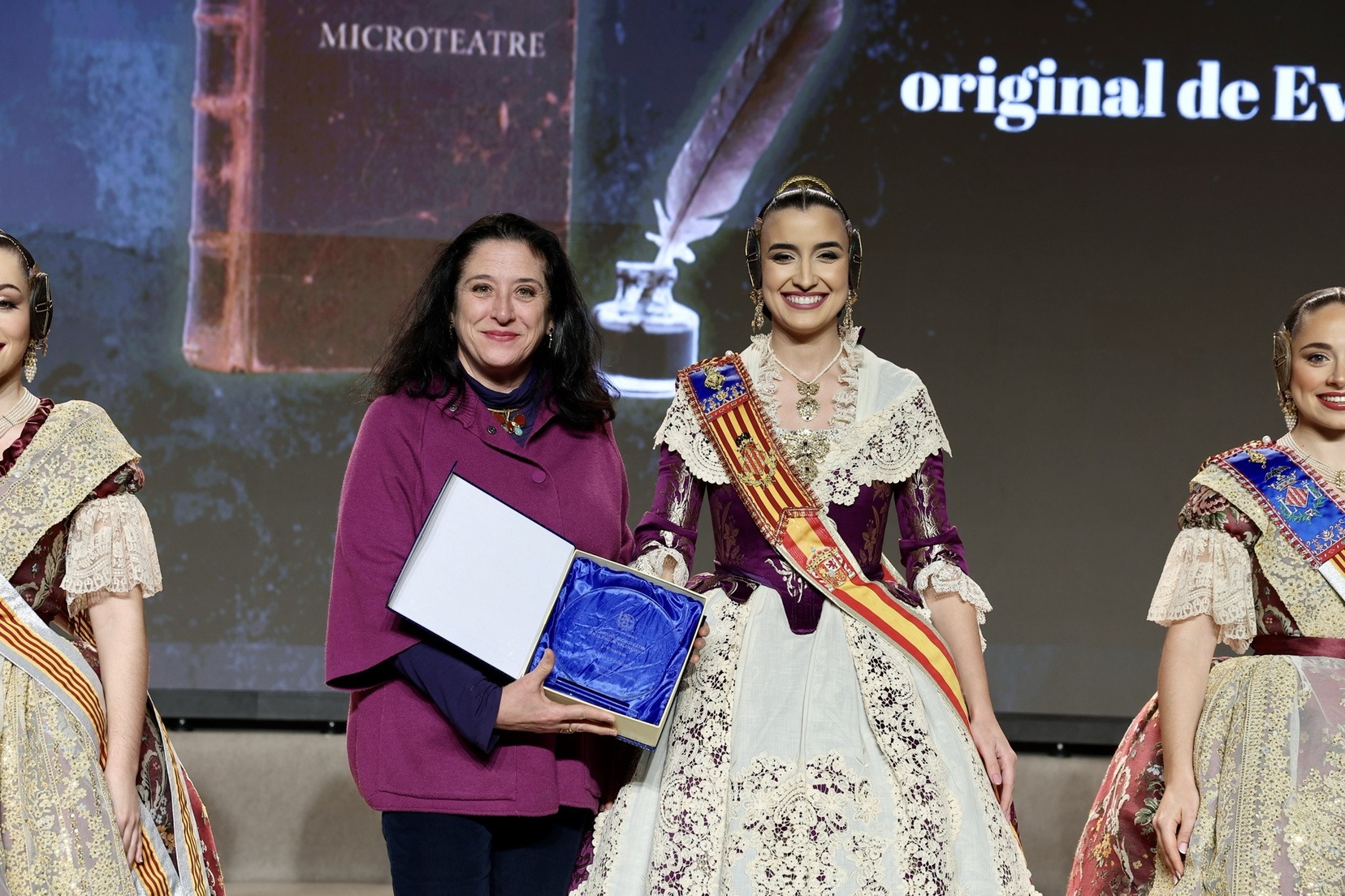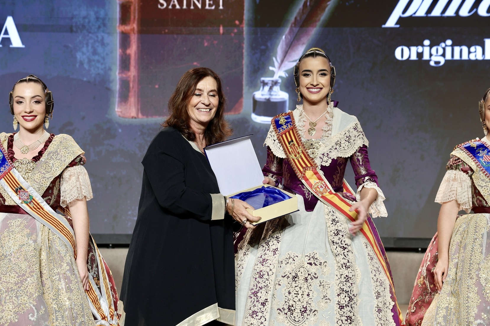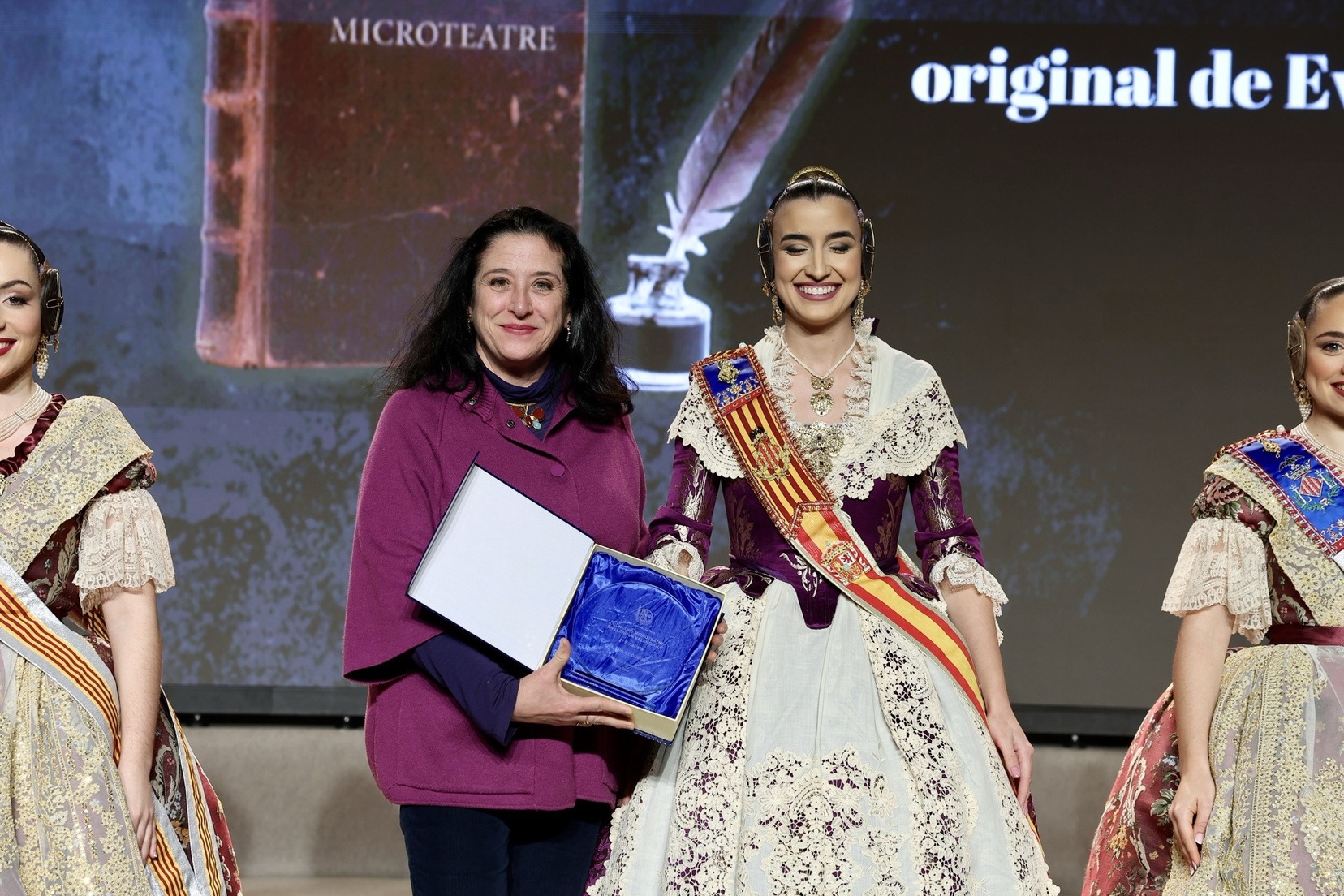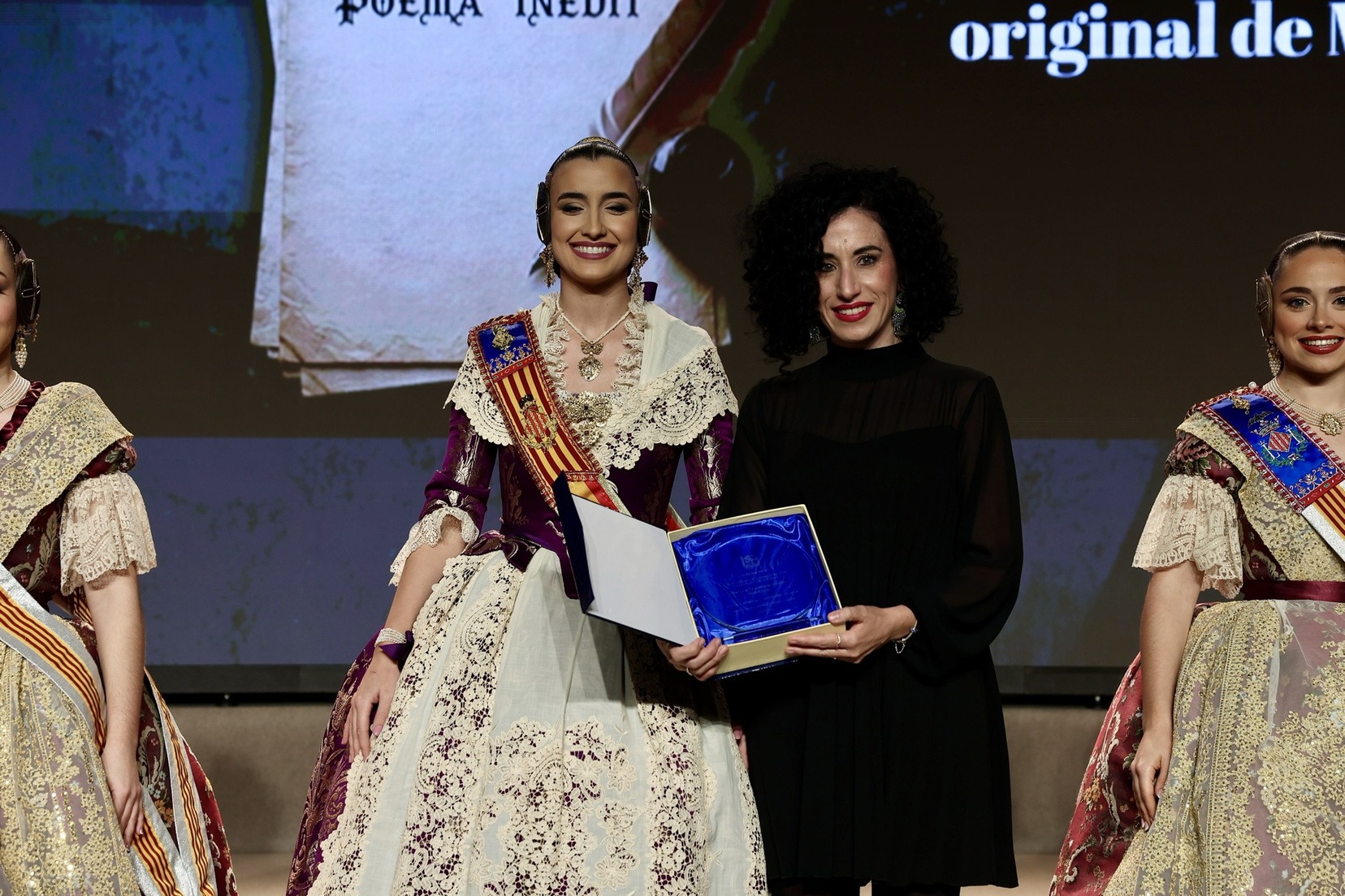 Per la seua banda, la Fallera Major de València, Carmen Prades Gil, acompanyada per la seua Cort d’Honor, ha entregat els premis corresponents a la categoria adulta dels Concursos de Declamació, Literari, Audiovisuals i Presentacions.