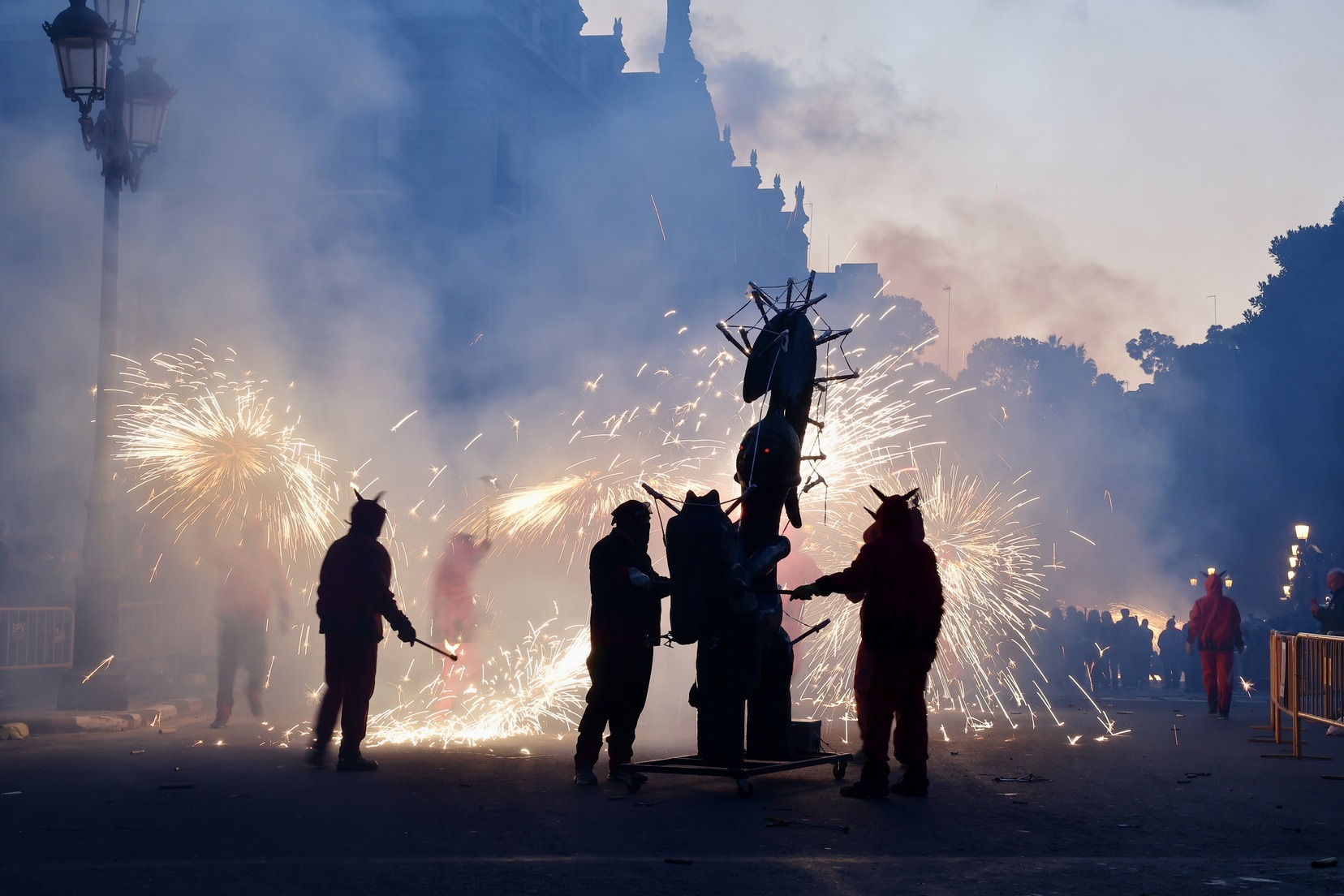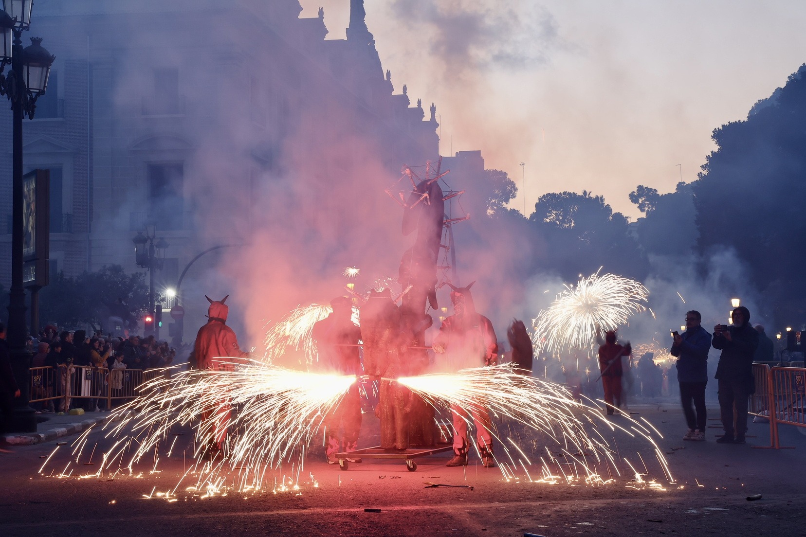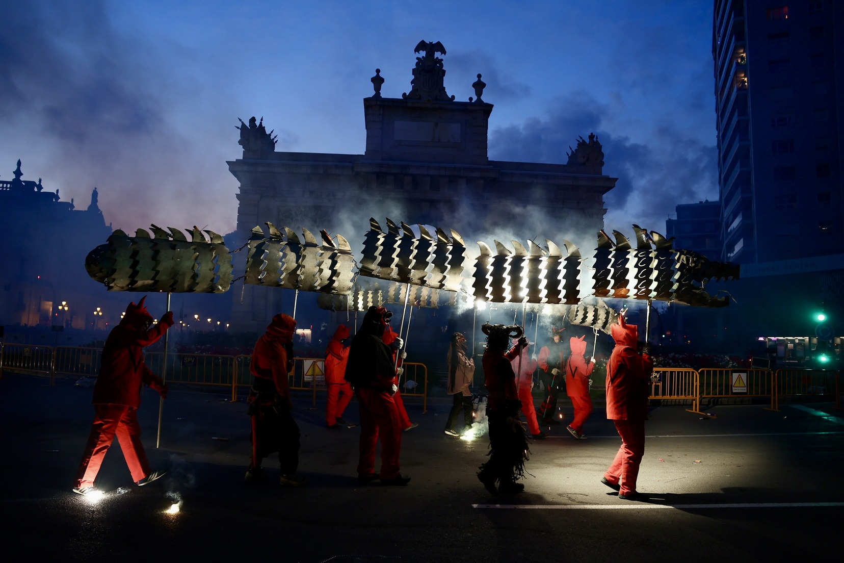 Mes d’un centenar de persones han participat en esta espectacular cavalcada amb la que la ciutat s’ha omplit de llum i color gràcies a la màgia del foc i la pirotècnia i que ha tingut com a protagonistes a les colles de dimonis de Massalfassar, Campanar i Mislata.