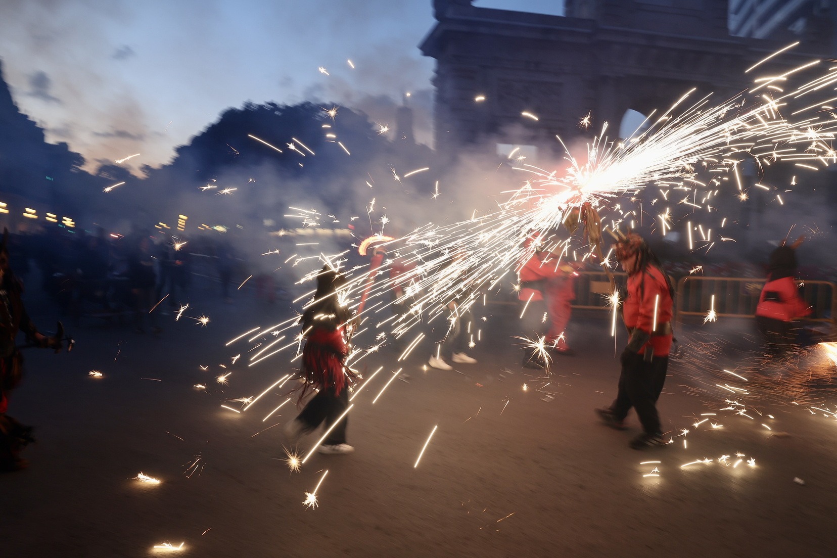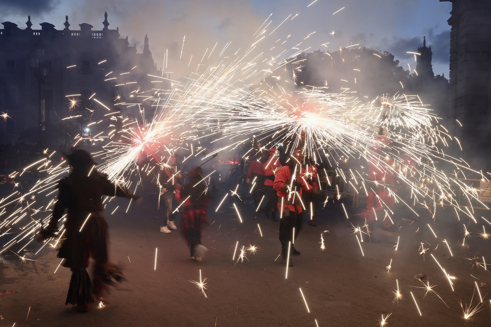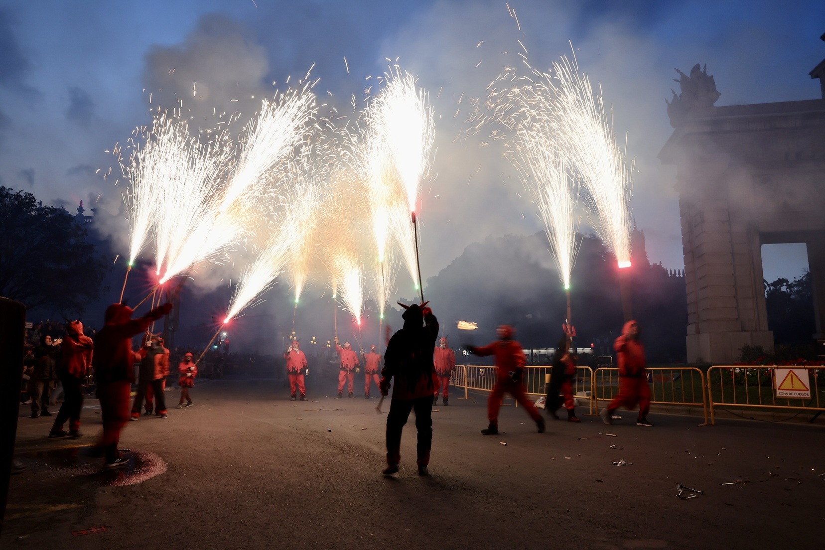Mes d’un centenar de persones han participat en esta espectacular cavalcada amb la que la ciutat s’ha omplit de llum i color gràcies a la màgia del foc i la pirotècnia i que ha tingut com a protagonistes a les colles de dimonis de Massalfassar, Campanar i Mislata.