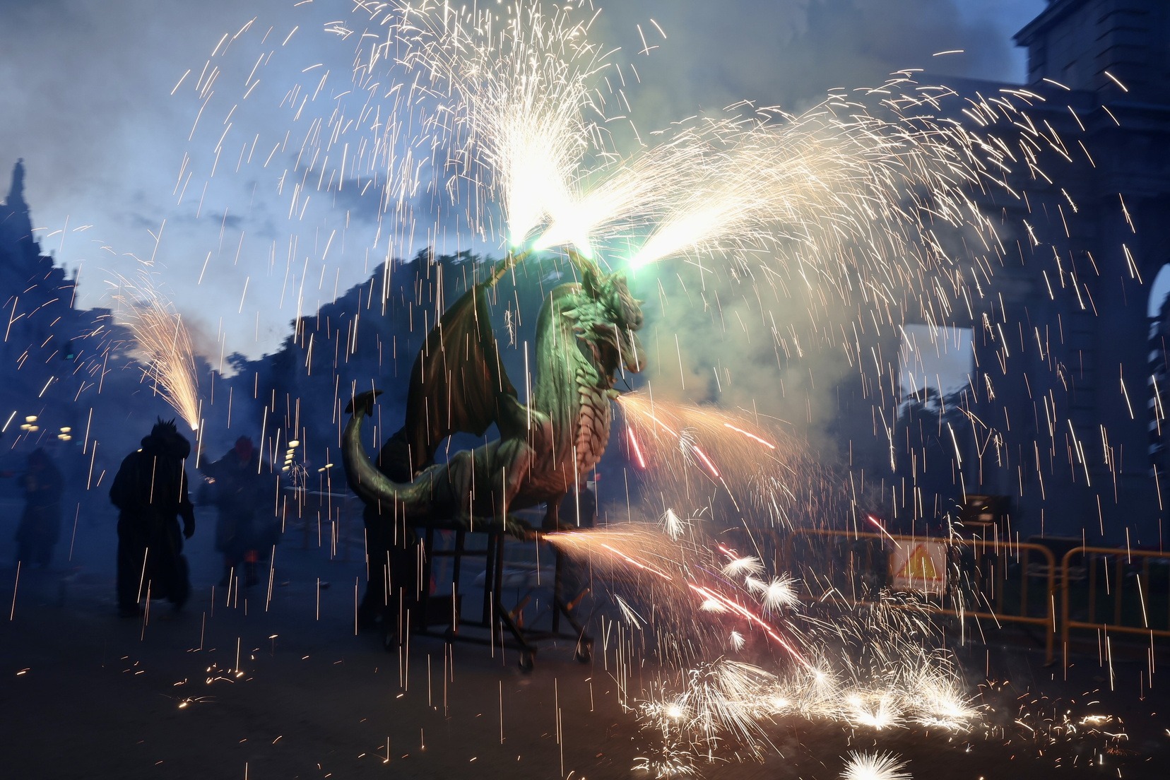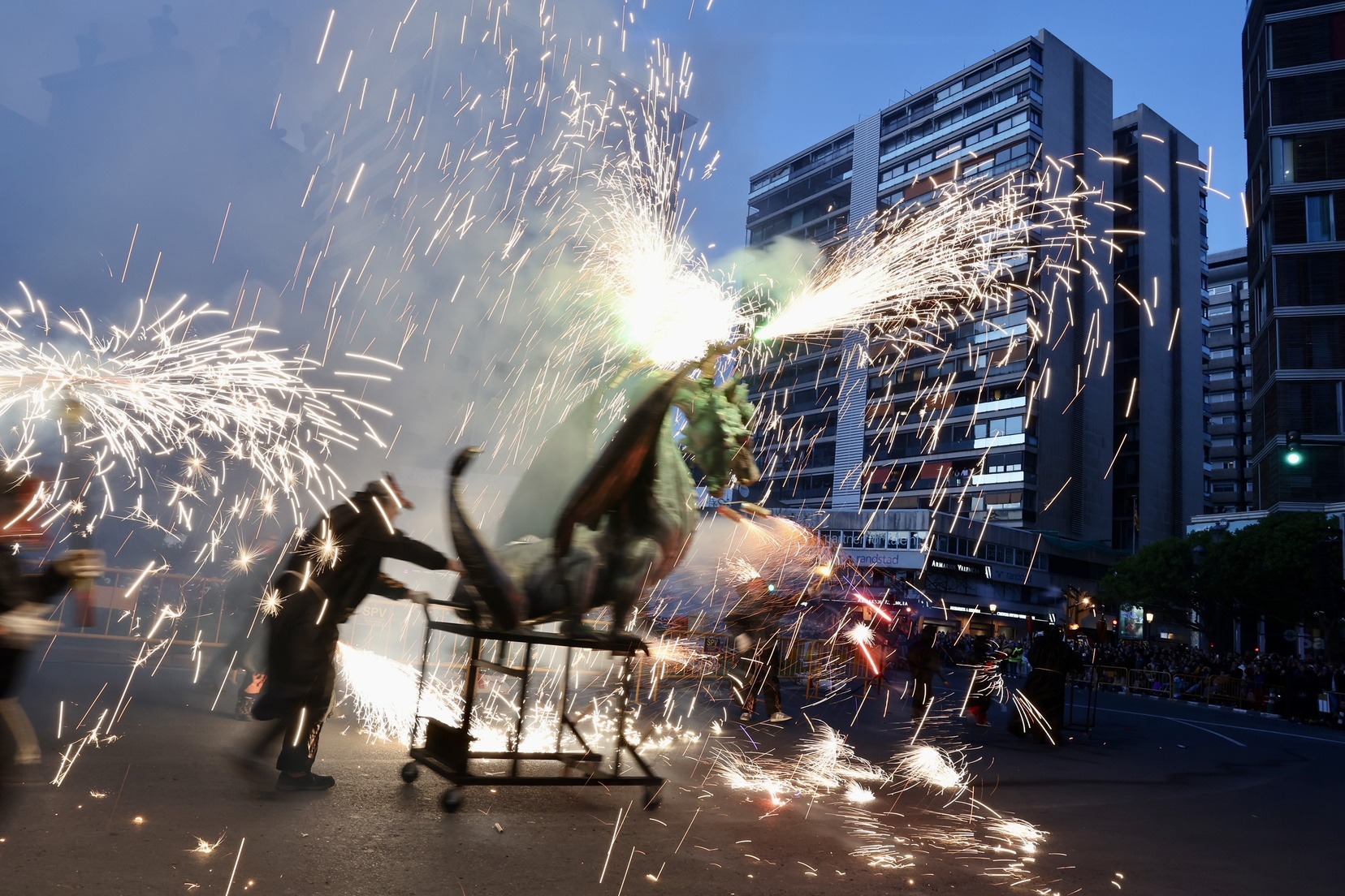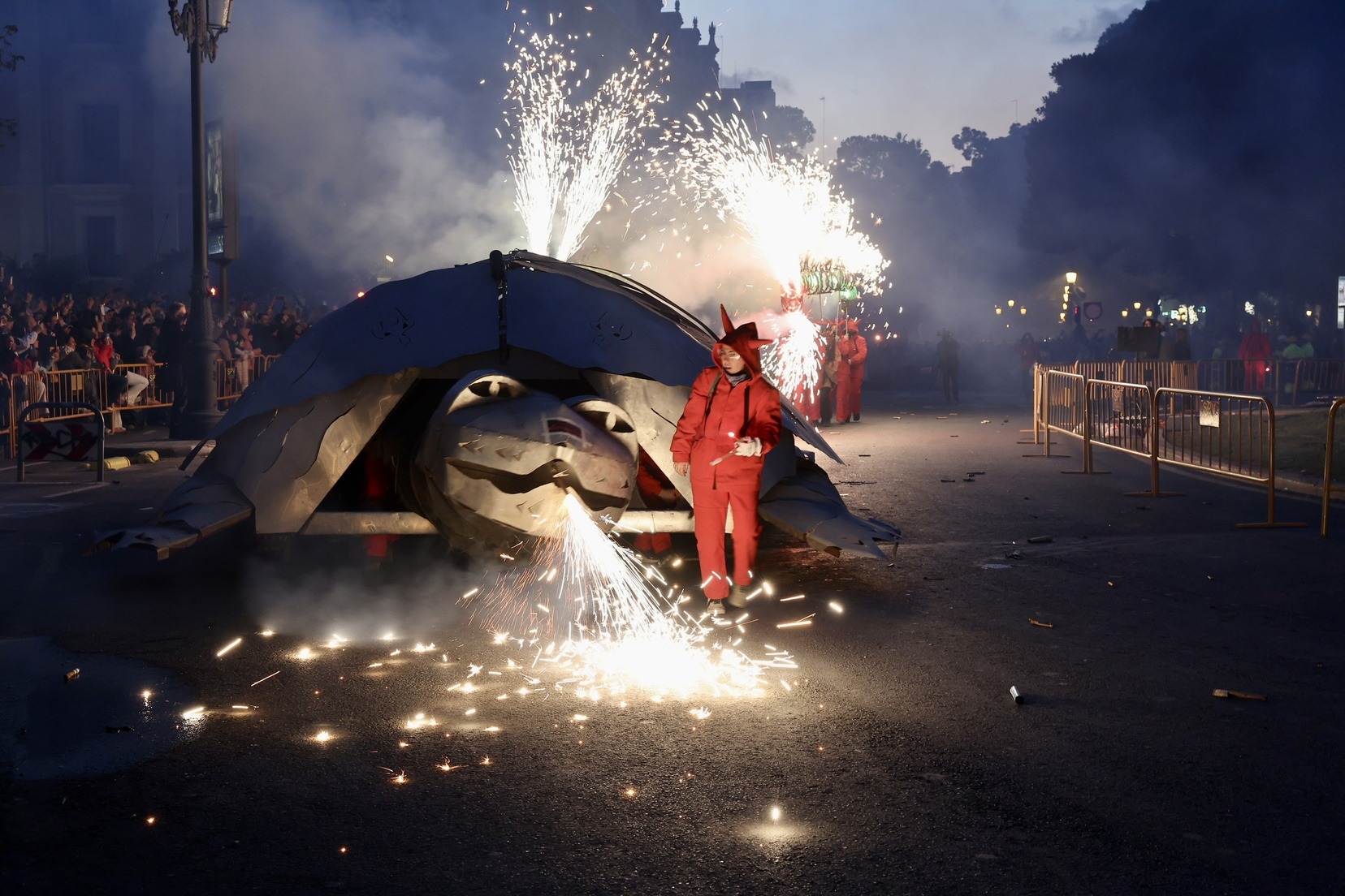 La Cavalcada del Foc, que ha començat a les 19.00 hores, ha recorregut les principals artèries del centre de la ciutat, iniciant el seu trajecte al carrer de la Pau i culminant a la Porta de la Mar.
