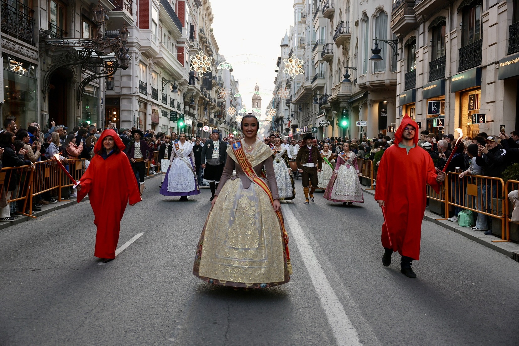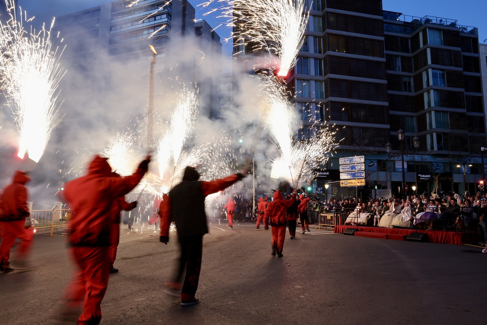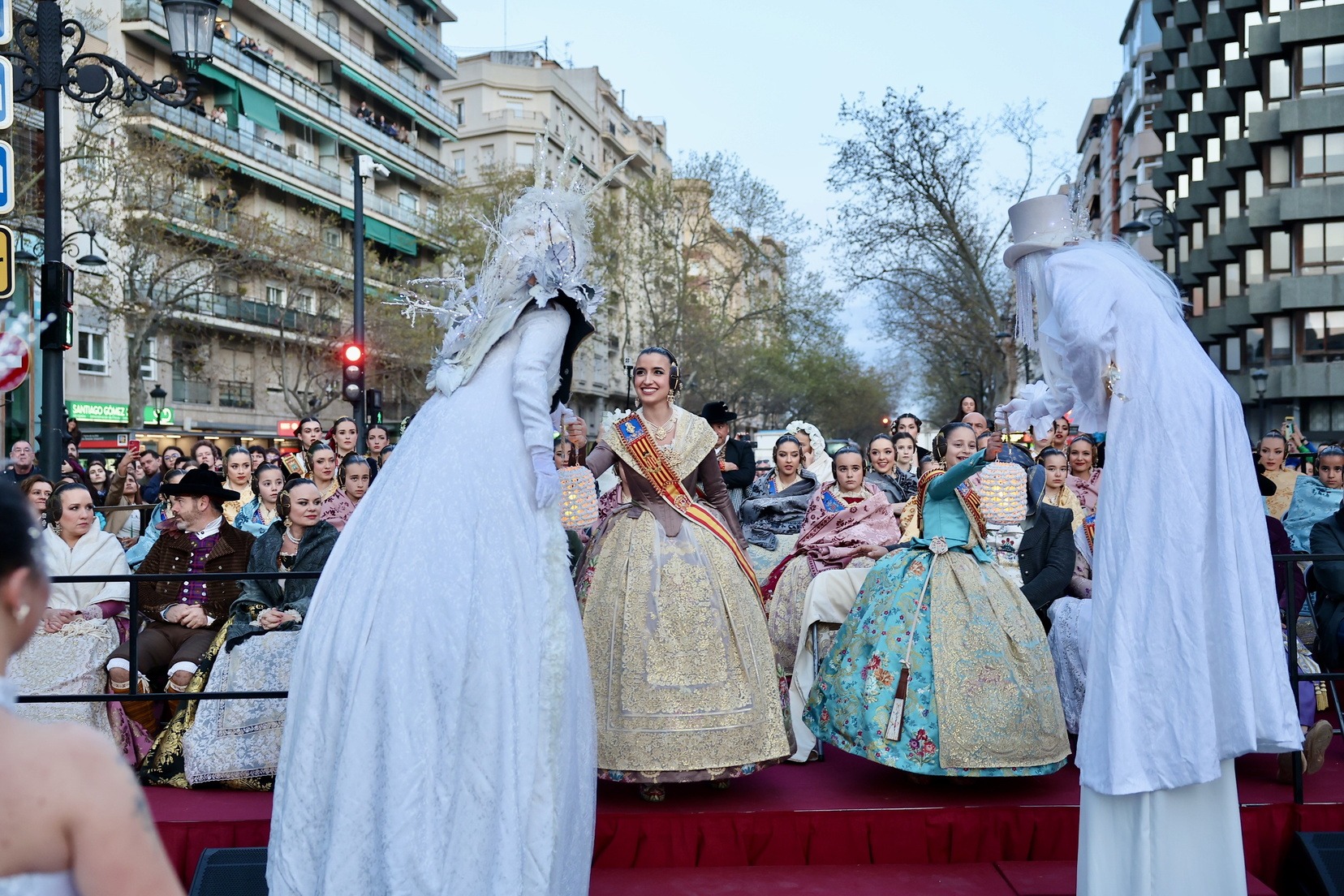 Les Falleres Majors de València, acompanyades per les seues Corts d’Honor, han disfrutat d’este meravellós espectacle i, al costat d’elles, les representants de les nostres festes germanes d’Alacant, Castelló, Burgos i Múrcia, així com els CEVEX, que estos dies ens estan acompanyant en la celebració de la nostra festa.