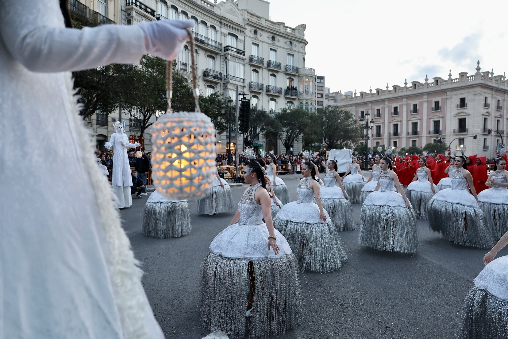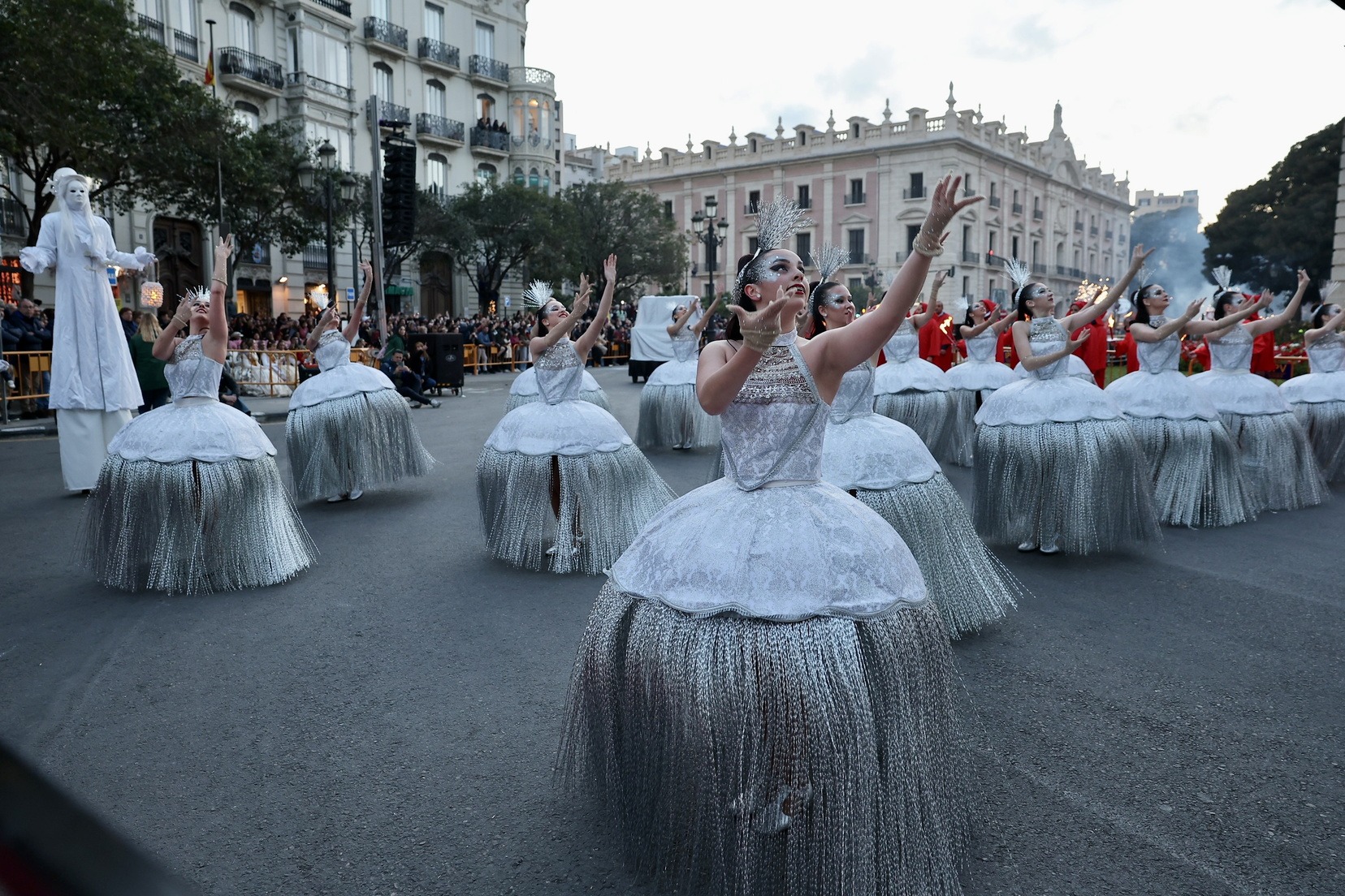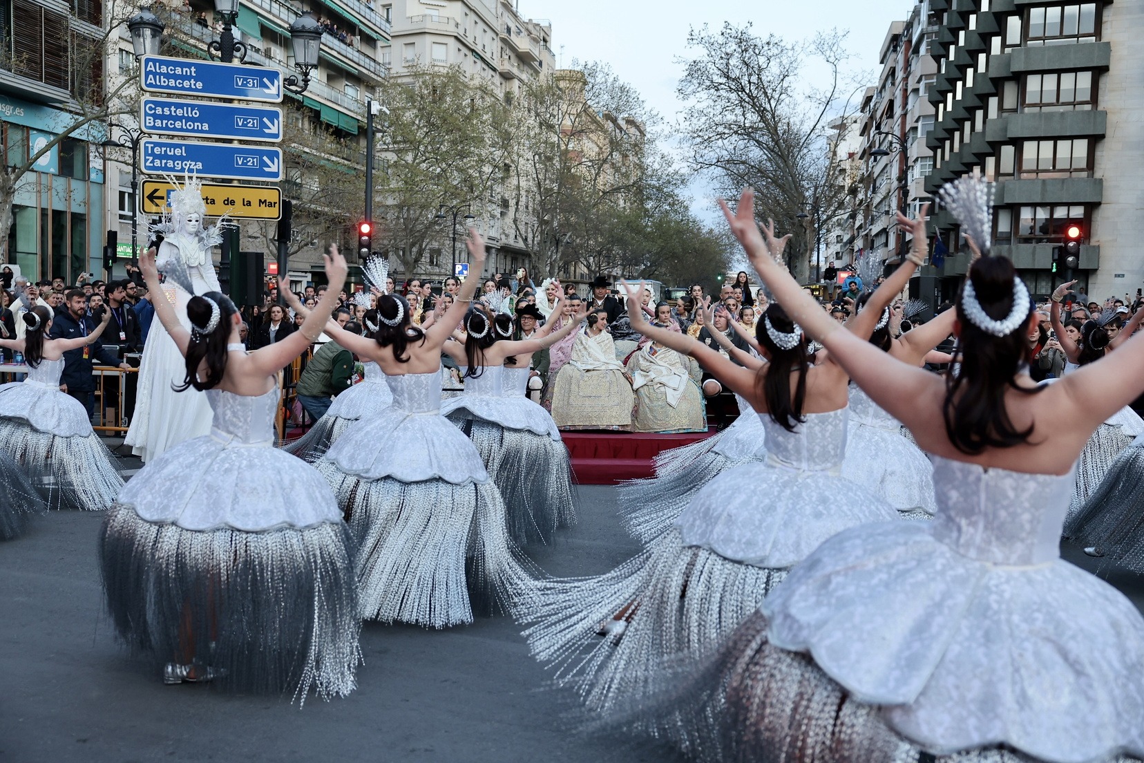 Les Falleres Majors de València, acompanyades per les seues Corts d’Honor, han disfrutat d’este meravellós espectacle i, al costat d’elles, les representants de les nostres festes germanes d’Alacant, Castelló, Burgos i Múrcia, així com els CEVEX, que estos dies ens estan acompanyant en la celebració de la nostra festa.