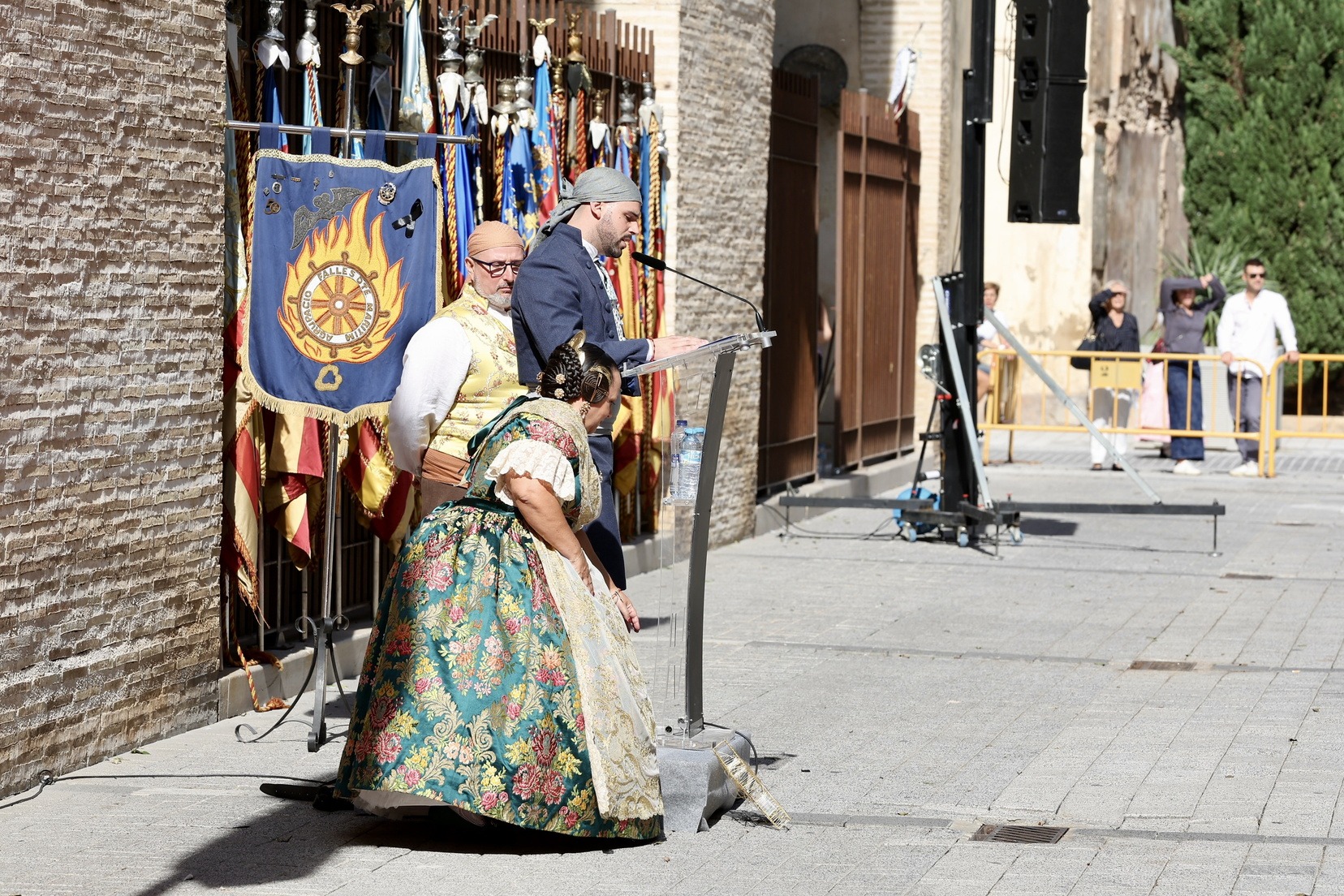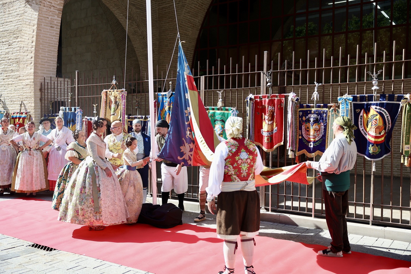 A les dotze del migdia ha donat inici la tradicional processó cívica, encapçalada per la Policia Local de València, vestida de gala i muntada a cavall. La comitiva ha recorregut els carrers del Marítim acompanyada per representants de les comissions falleres de l’Agrupació, portant amb orgull els colors de la Reial Senyera.