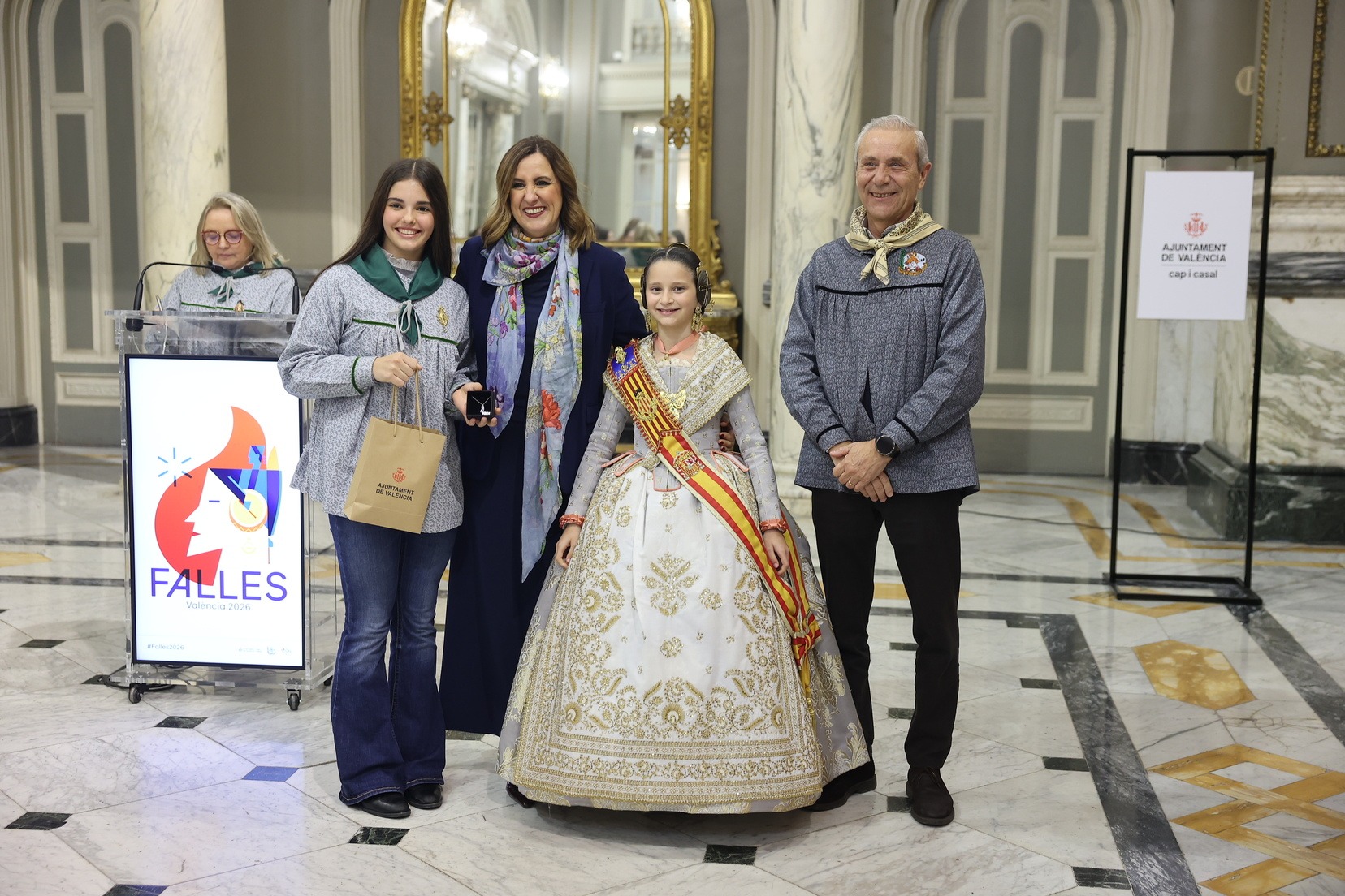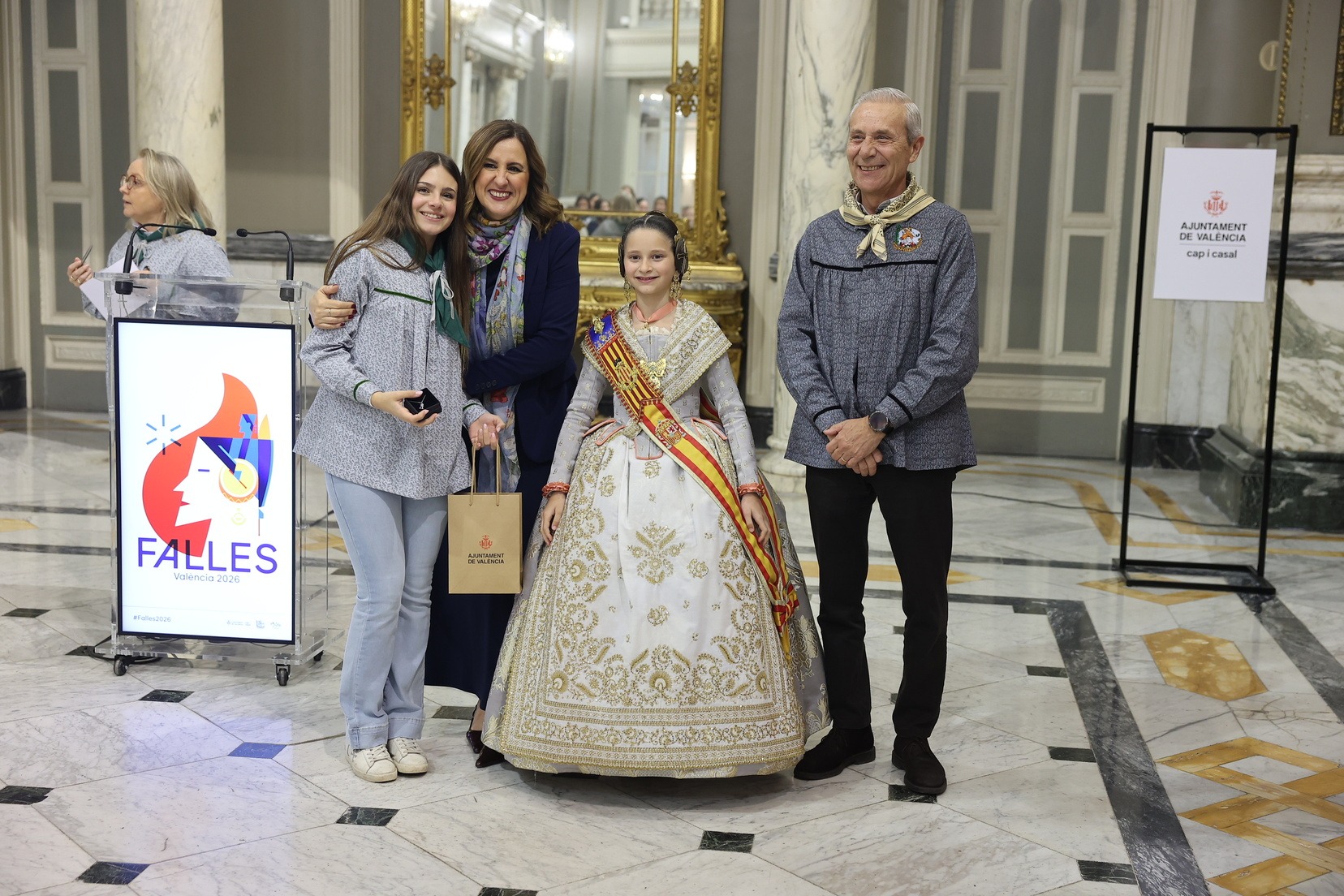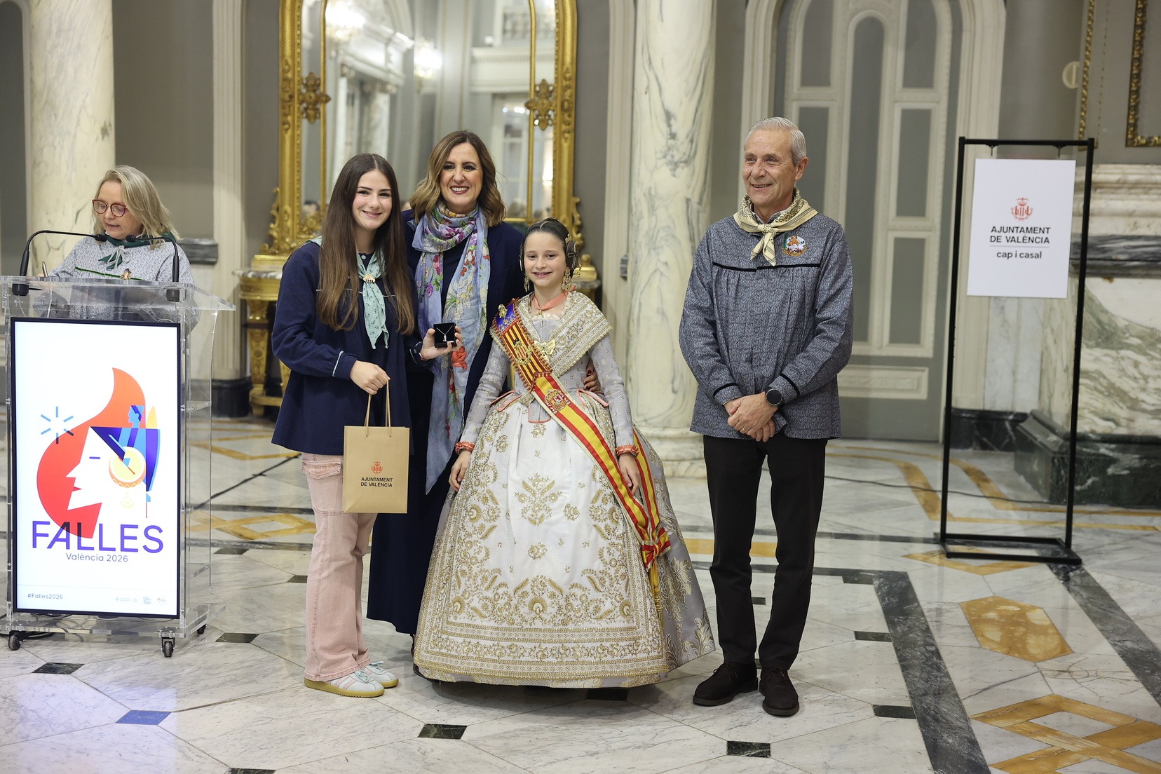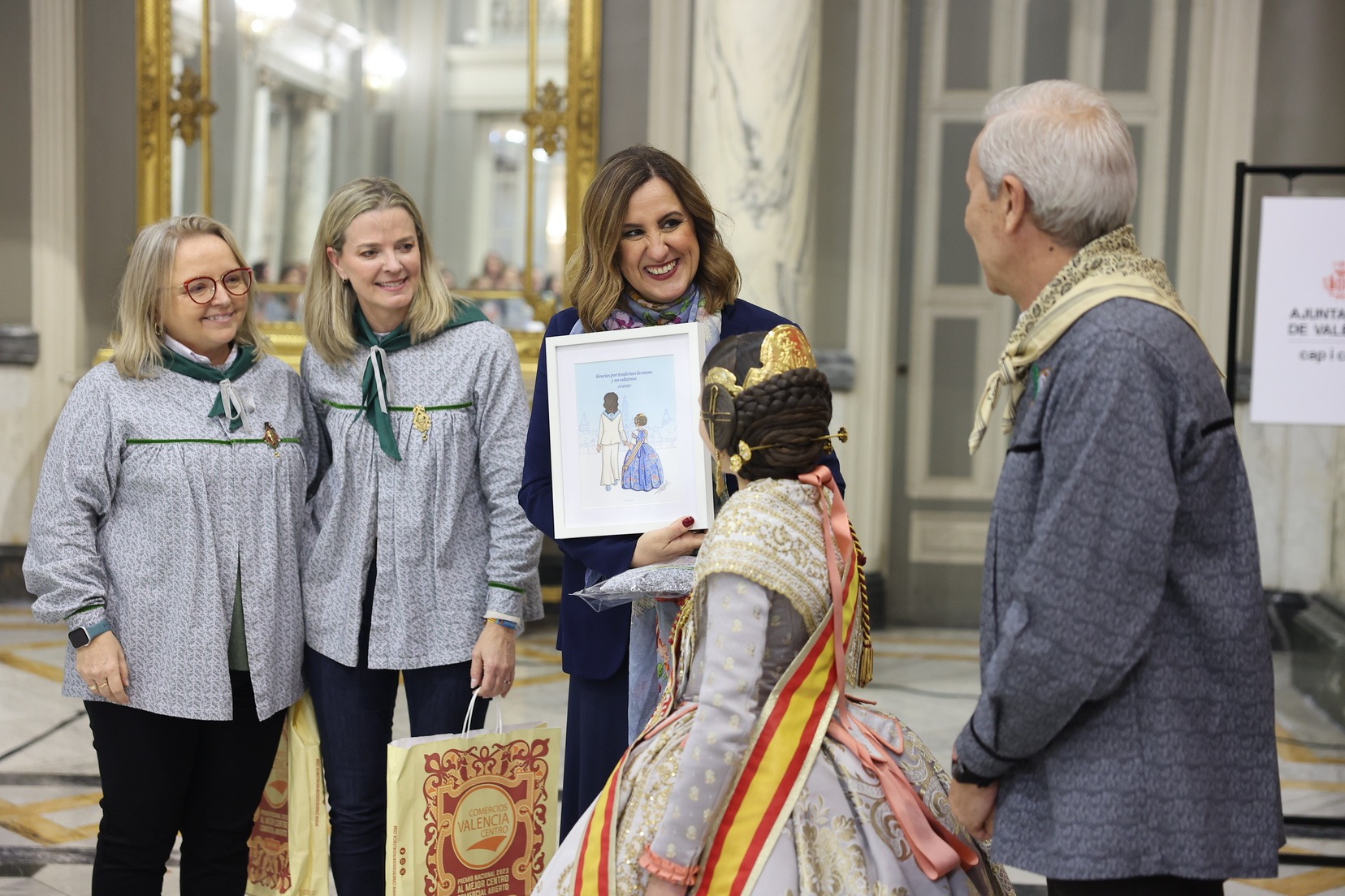 Durant la recepció, moltes de les Falleres Majors Infantils de València han tingut l’oportunitat de saludar l’alcaldessa i compartir este encontre en un dels espais més emblemàtics del consistori valencià. Com a mostra d’agraïment, han fet lliurament a l’alcaldessa d’un detall molt especial en reconeixement a l’estima i el respecte cap al càrrec que totes elles representen dins de la festa.
