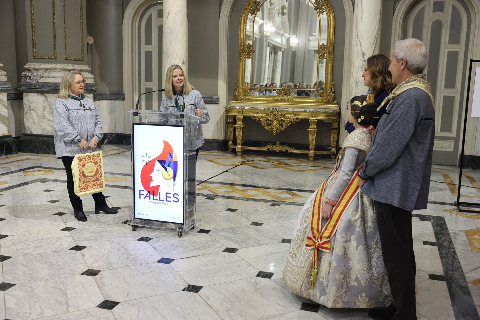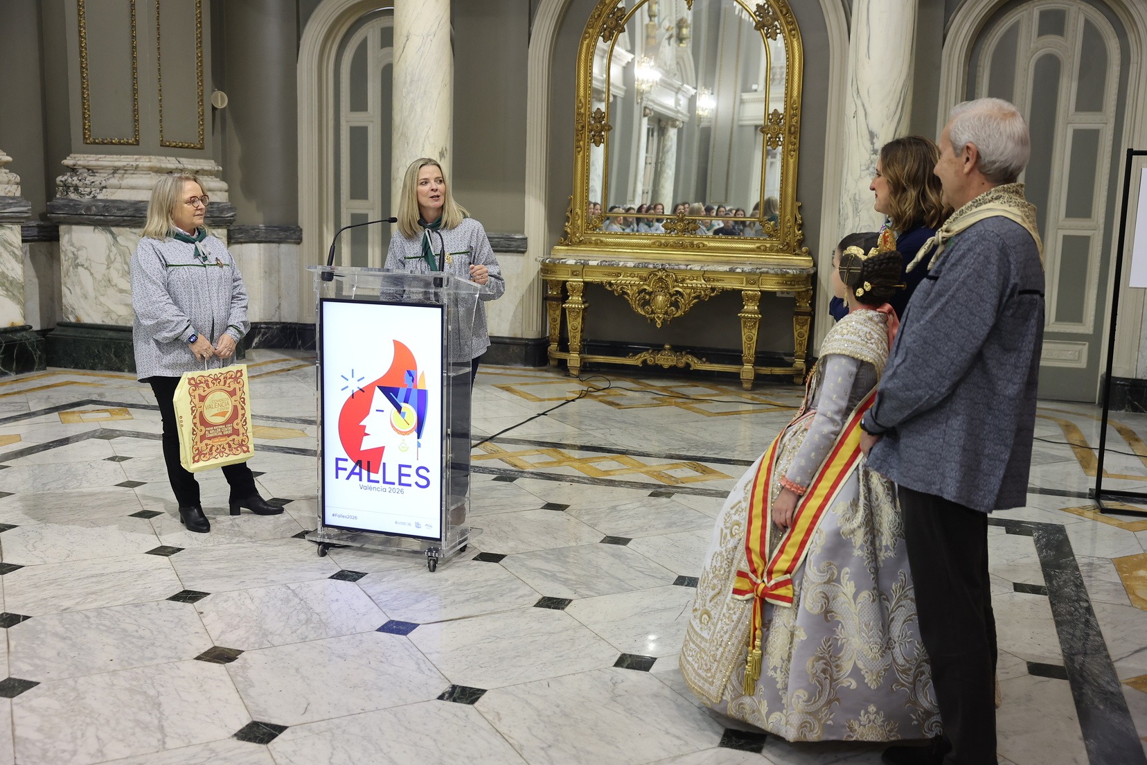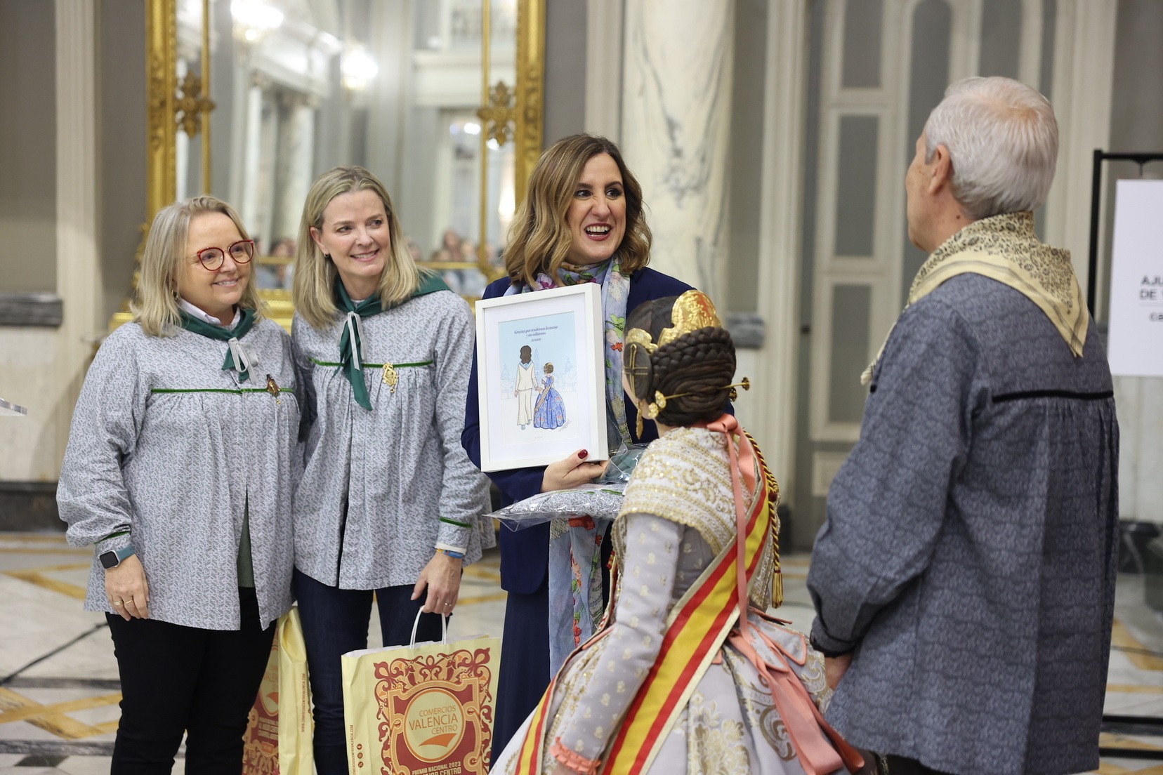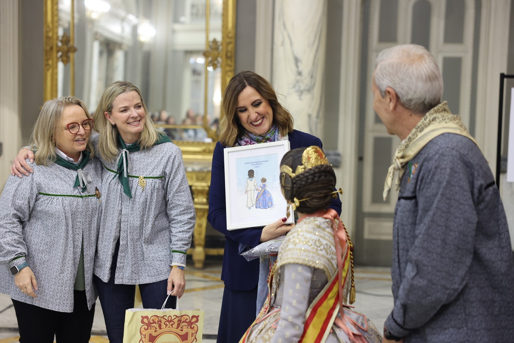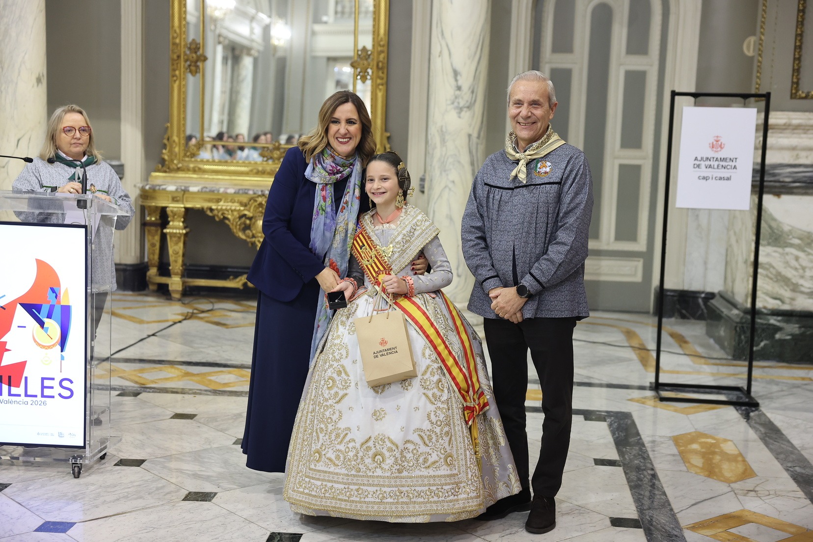 Durant la recepció, moltes de les Falleres Majors Infantils de València han tingut l’oportunitat de saludar l’alcaldessa i compartir este encontre en un dels espais més emblemàtics del consistori valencià. Com a mostra d’agraïment, han fet lliurament a l’alcaldessa d’un detall molt especial en reconeixement a l’estima i el respecte cap al càrrec que totes elles representen dins de la festa.