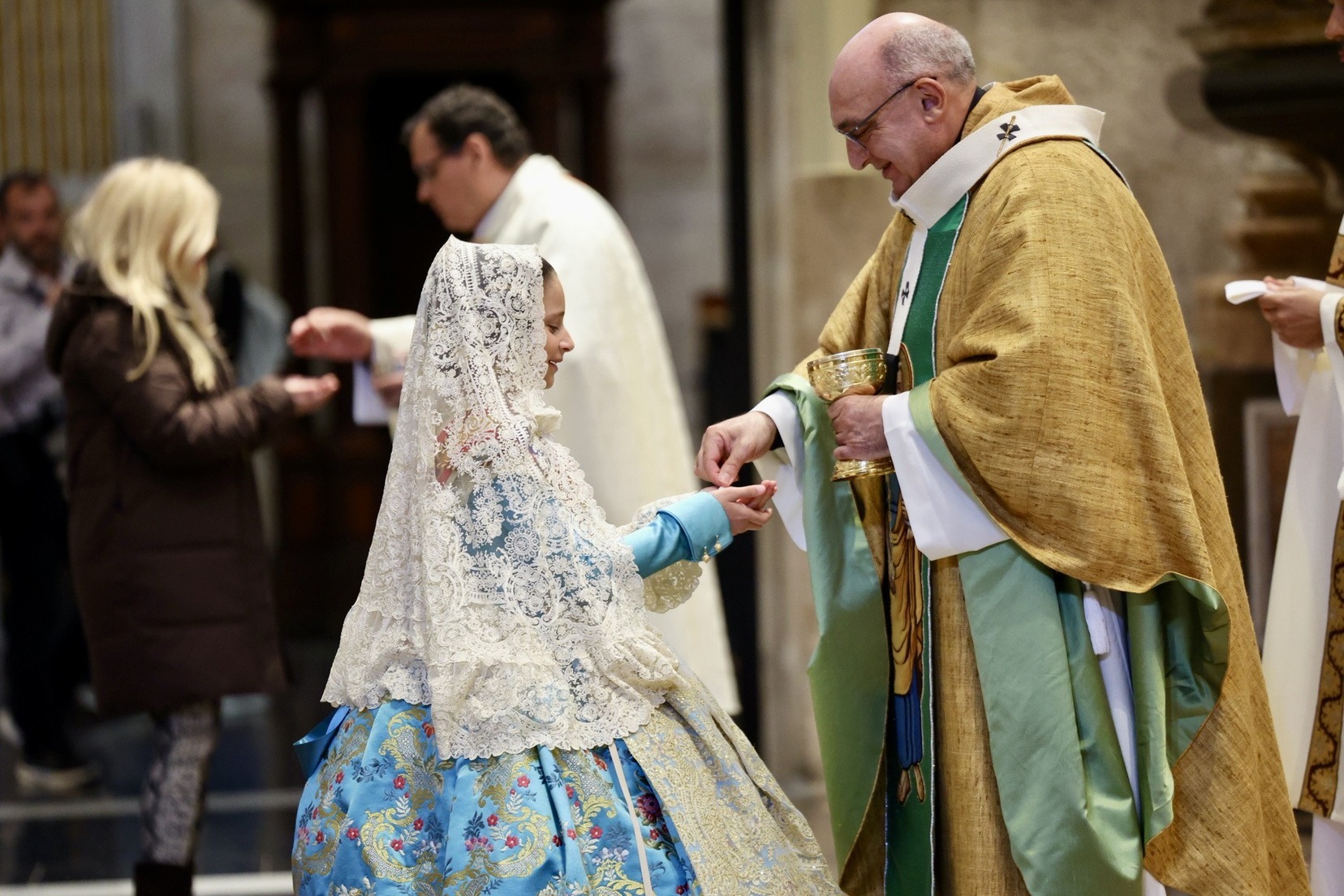 La cerimònia, organitzada conjuntament amb el Gremi d’Artistes Fusters, ha estat presidida per l’arquebisbe de València, D. Enrique Benavent, i ha comptat amb la implicació directa de les màximes representants de la festa, que han participat en diferents moments de la missa, com les lectures i les oracions dels fidels.