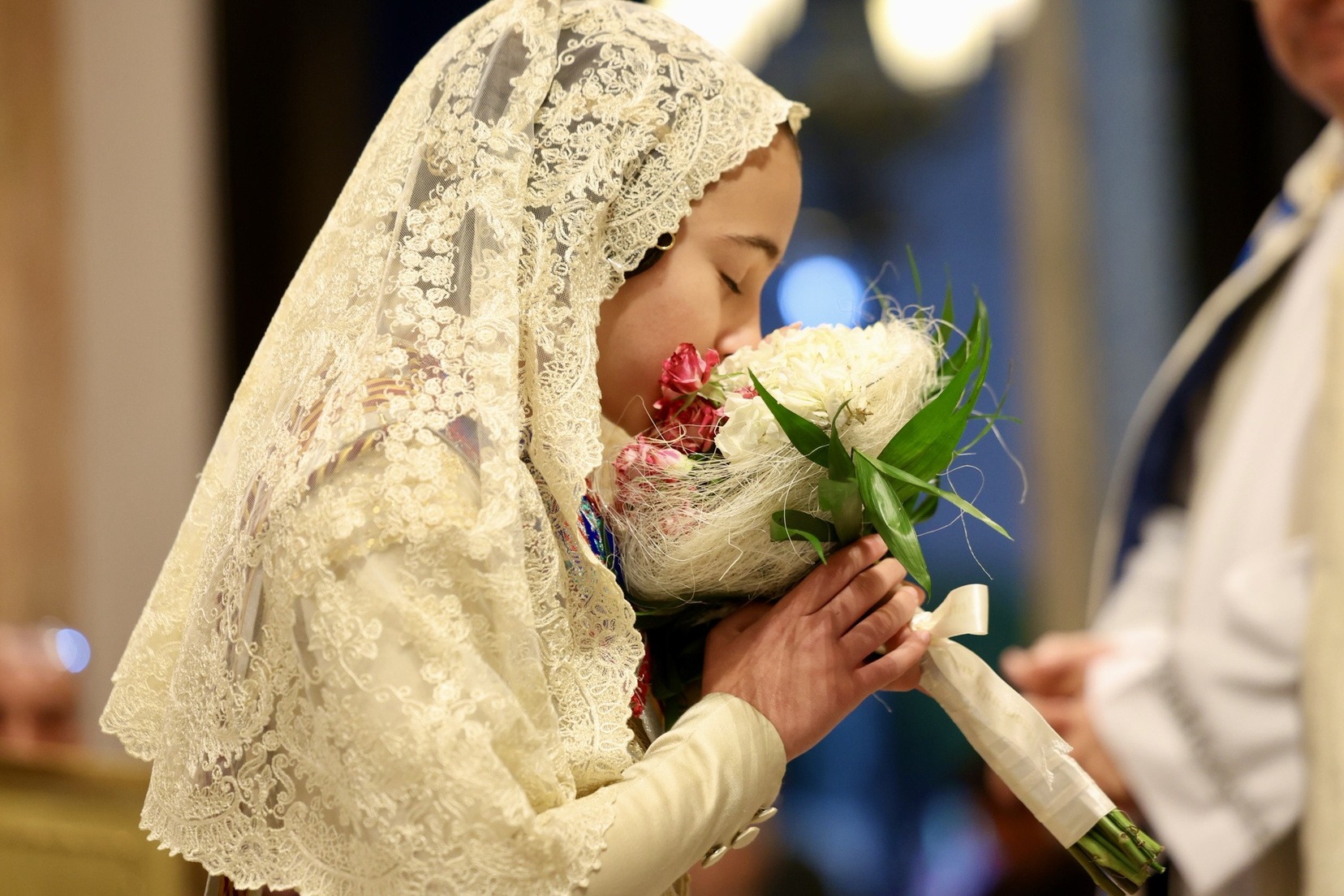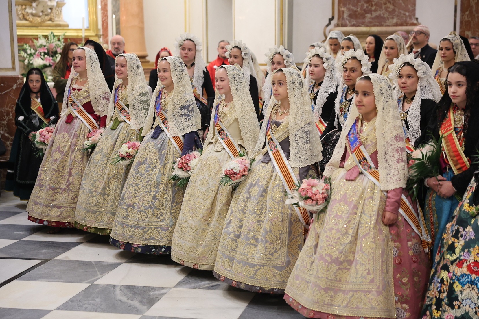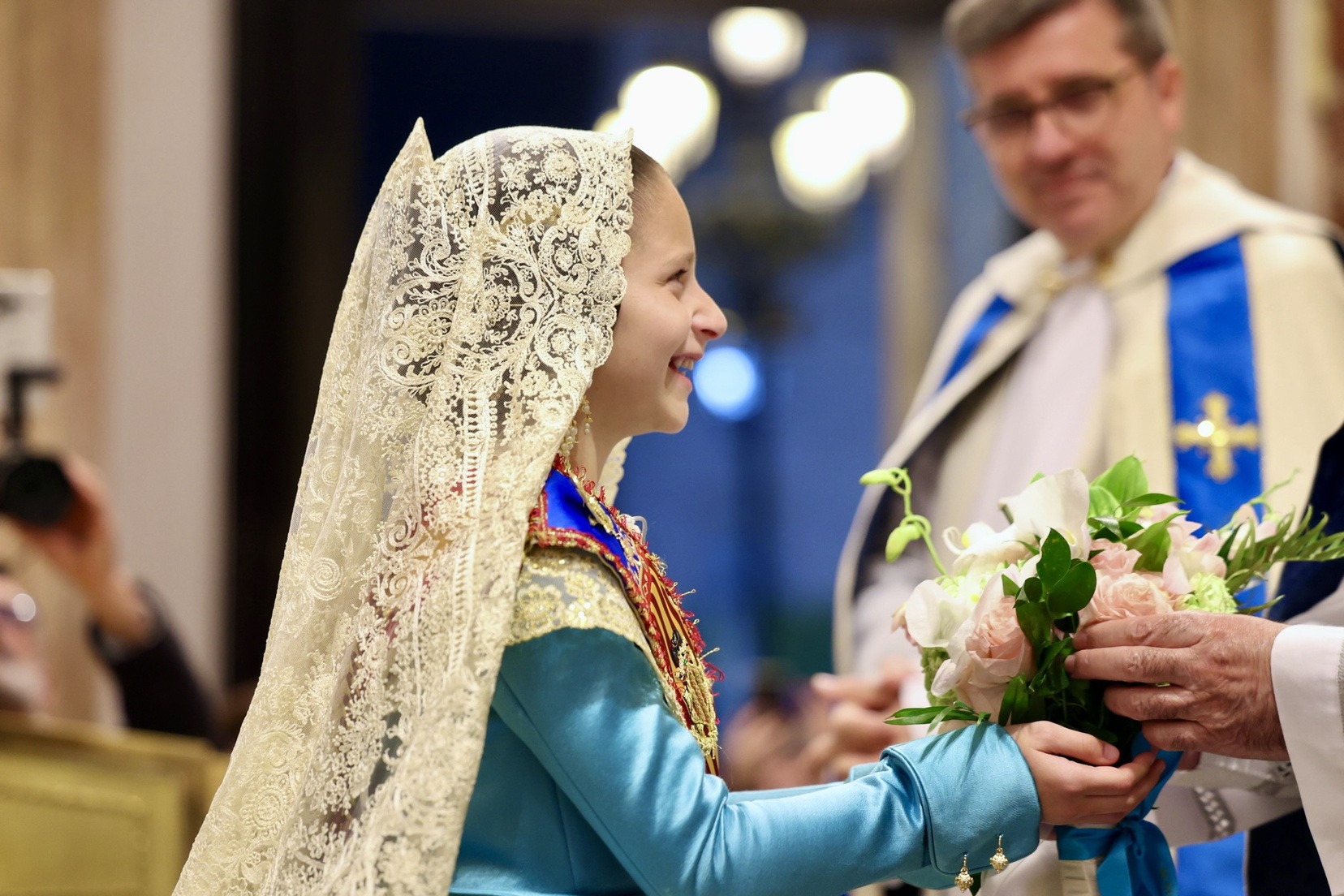 Dins de la Basílica, han oferit les seues flors també les representants infantils de Múrcia, Burgos, Alacant i Castelló, així com la mare de Marta.