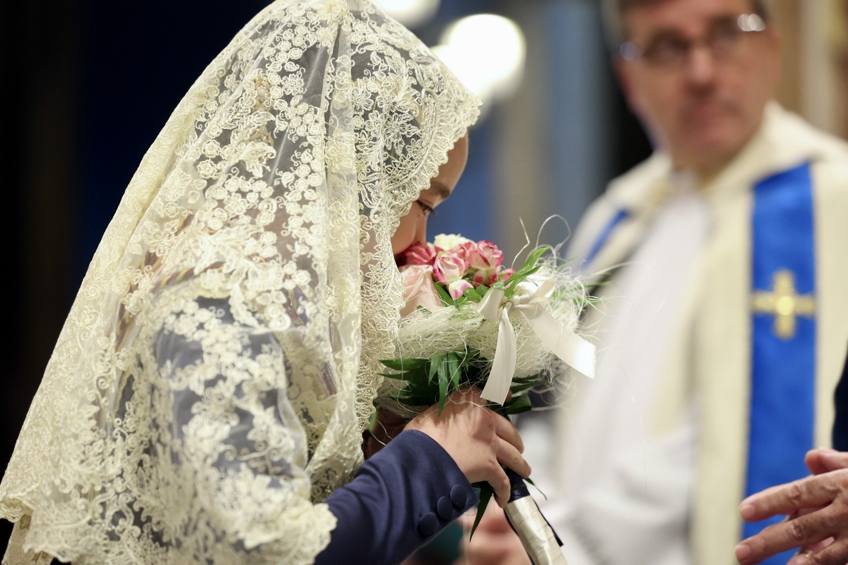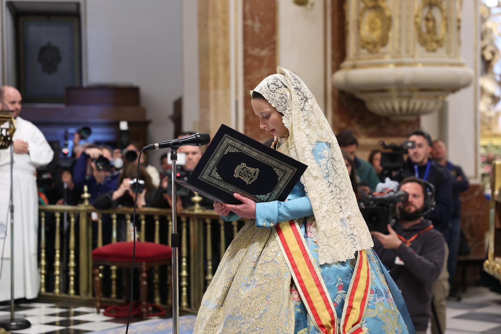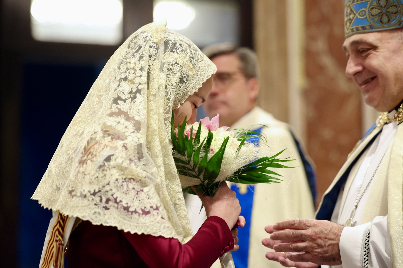 Dins de la Basílica, han oferit les seues flors també les representants infantils de Múrcia, Burgos, Alacant i Castelló, així com la mare de Marta.