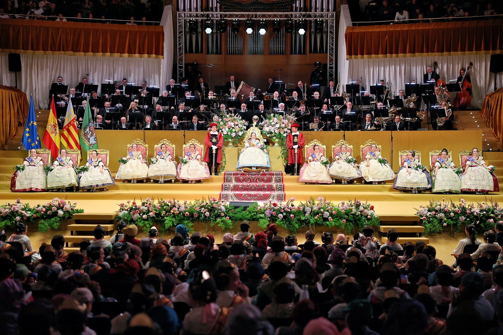 El Palau de la Música s’ha tornat a posar en peus per a exaltar a la Fallera Major Infantil de València, Marta Mercader Roig, màxima representant del món faller infantil.