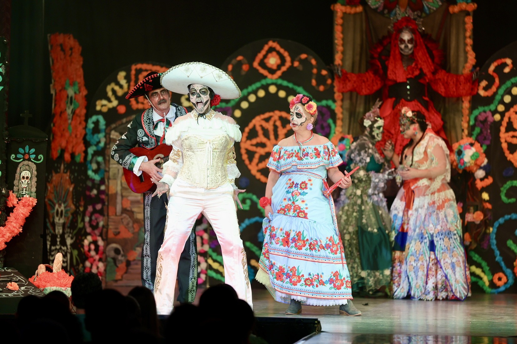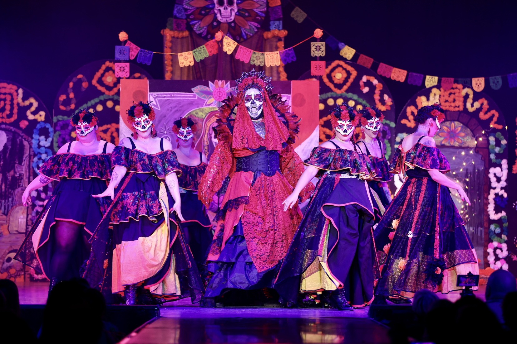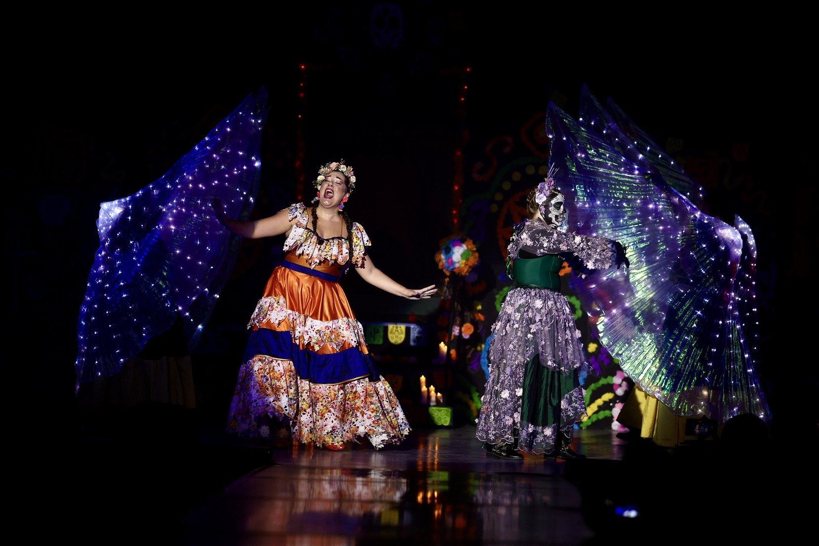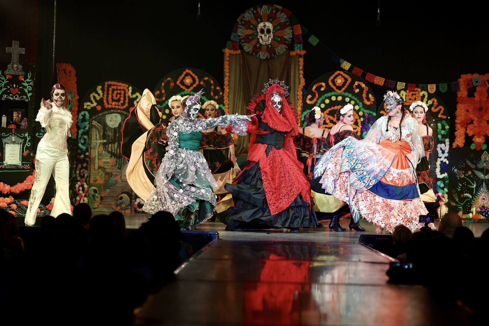A continuació, la falla Blocs Platja ha presentat “La Flor i la Calavera”, una història d’amor entre Isabel i una catrina, que demana a la Santa Mort poder creuar a l’altre costat. Un relat intens sobre un amor entre dos dones que ni la mort pot separar.