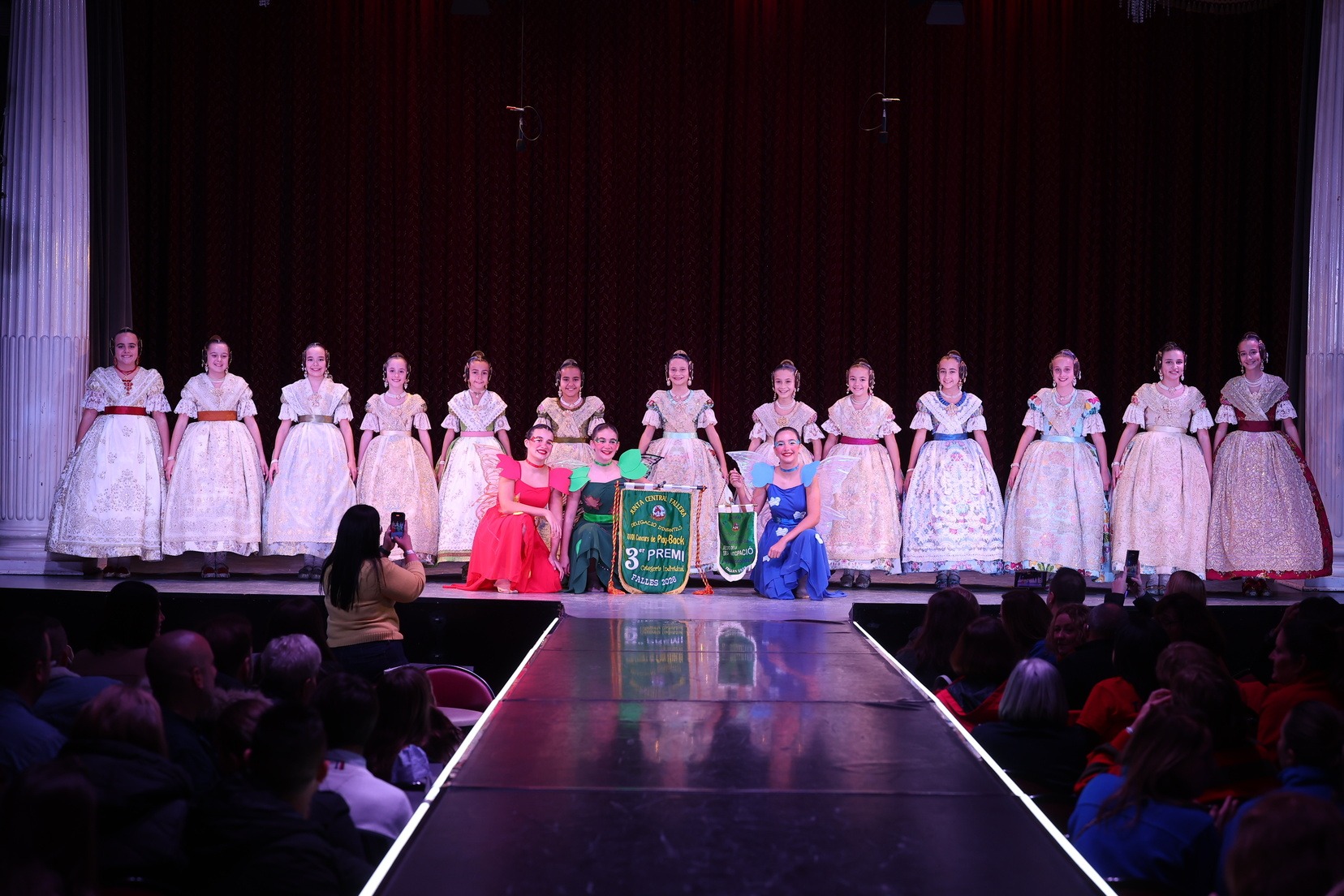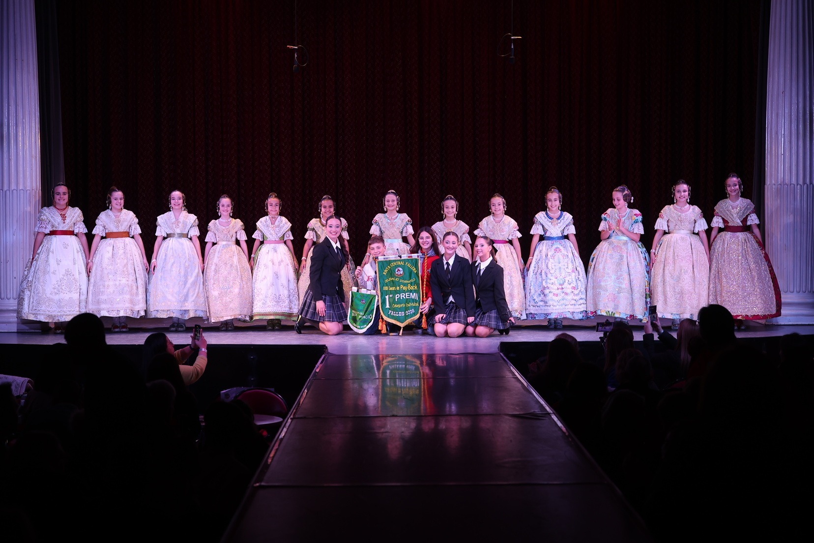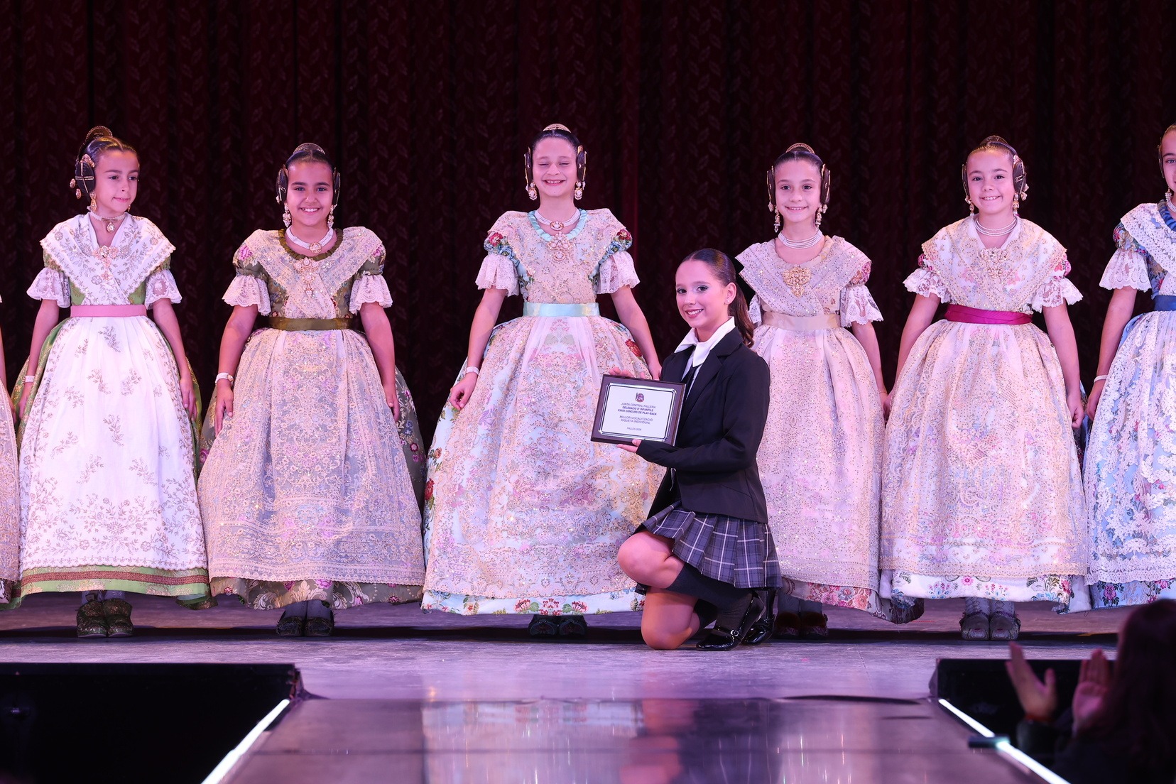 Després de l’actuació de les set comissions finalistes, hem pogut conéixer el veredicte del jurat i la Fallera Major Infantil de València, Marta Mercader, acompanyada de la seua Cort d’Honor, ha pogut rebre als participants i fer-los lliurament dels “palets”.