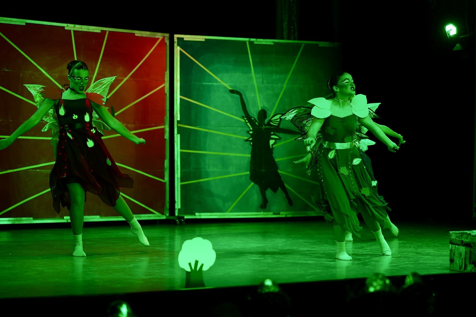 Després del descans, hem pogut disfrutar de les quatre últimes actuacions. En primer lloc la falla Quart Extramurs-Velázquez amb ‘Its Magic’. En una caseta amagada en el bosc, tres adorables fades es preparen per a una sorpresa molt especial… l’aniversari de la princesa Aurora! Però hi ha un xicotet problema: esta vegada no poden usar màgia. El resultat? Un vestit ple de forats, un pastís que s’esfondra i un munt de riures màgics.