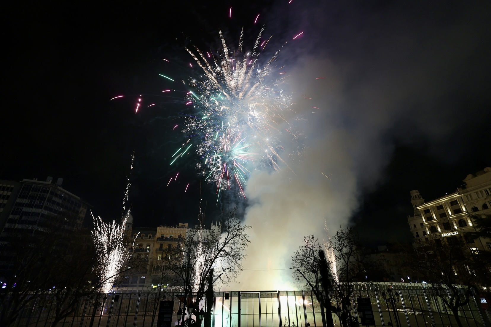 Pirotècnia Crespo ha disparat el segon dels espectacles pirotècnics nocturns en la Plaça de l’Ajuntament i l’últim d’este primer cap de setmana.