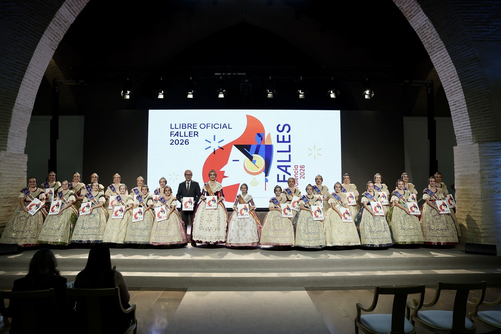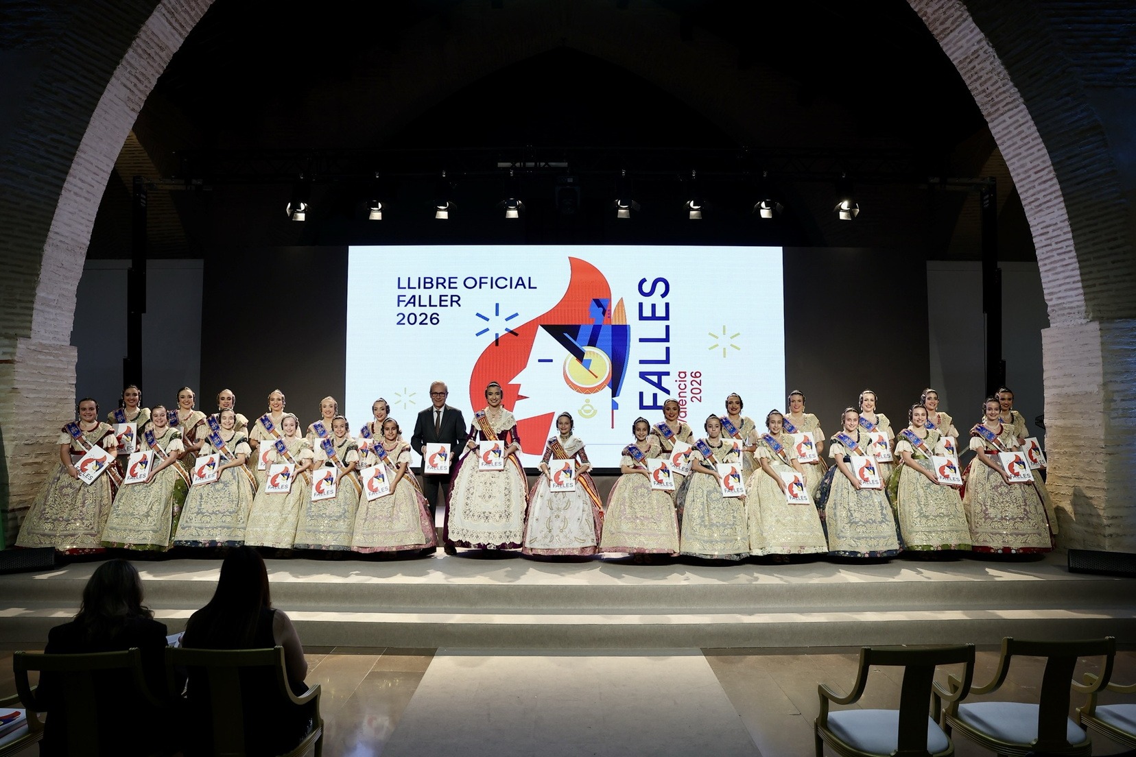 La Fallera Major de València, Carmen Prades, i la Fallera Major Infantil de València, Marta Mercader, junt amb les seues Corts d’Honor, han rebut un exemplar de mans del regidor de Falles i president de la Junta Central Fallera, Santi Ballester, un gest que ha simbolitzat la importància del llibre com a memòria de les Falles més especials de les seues vides.