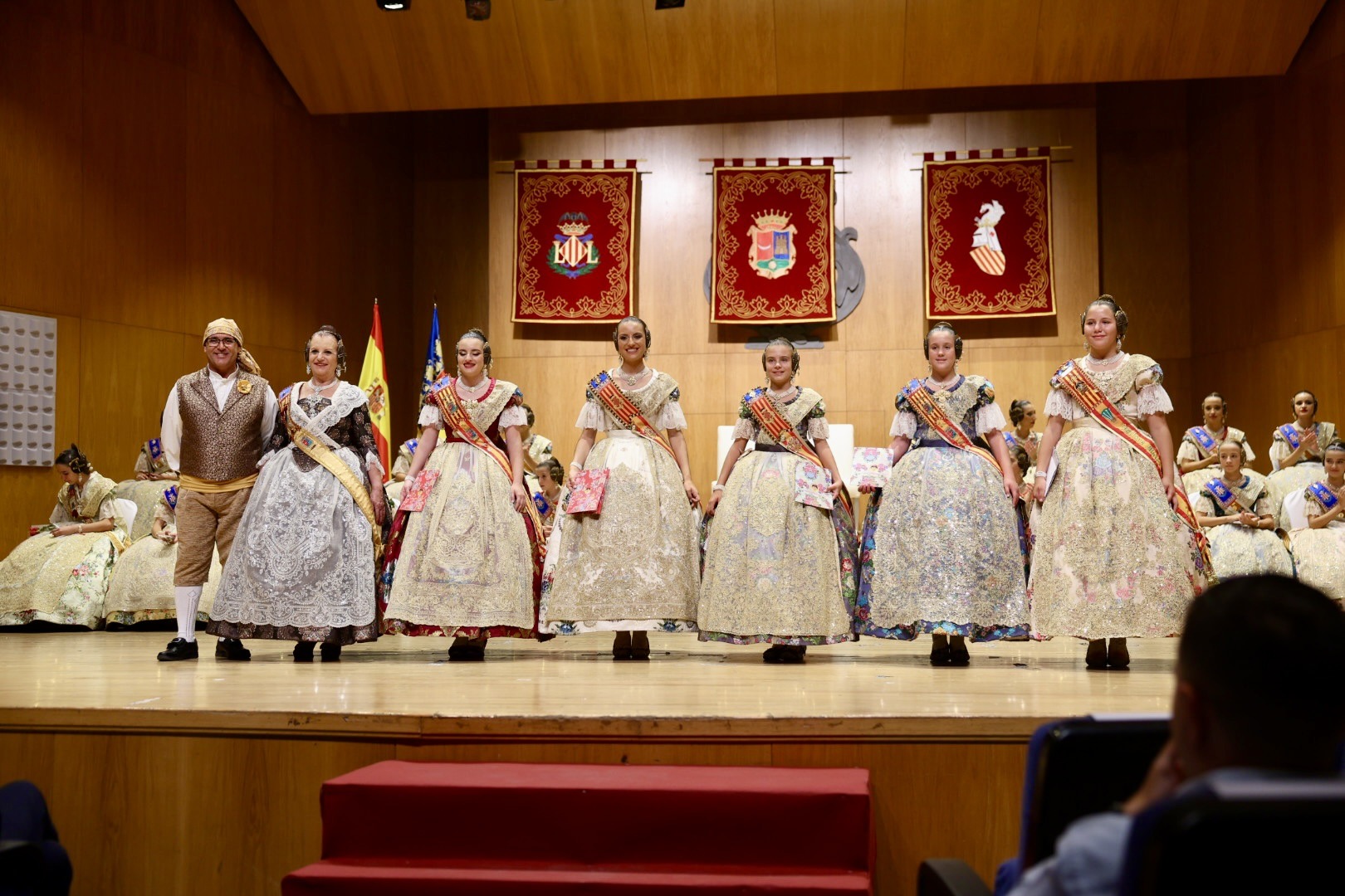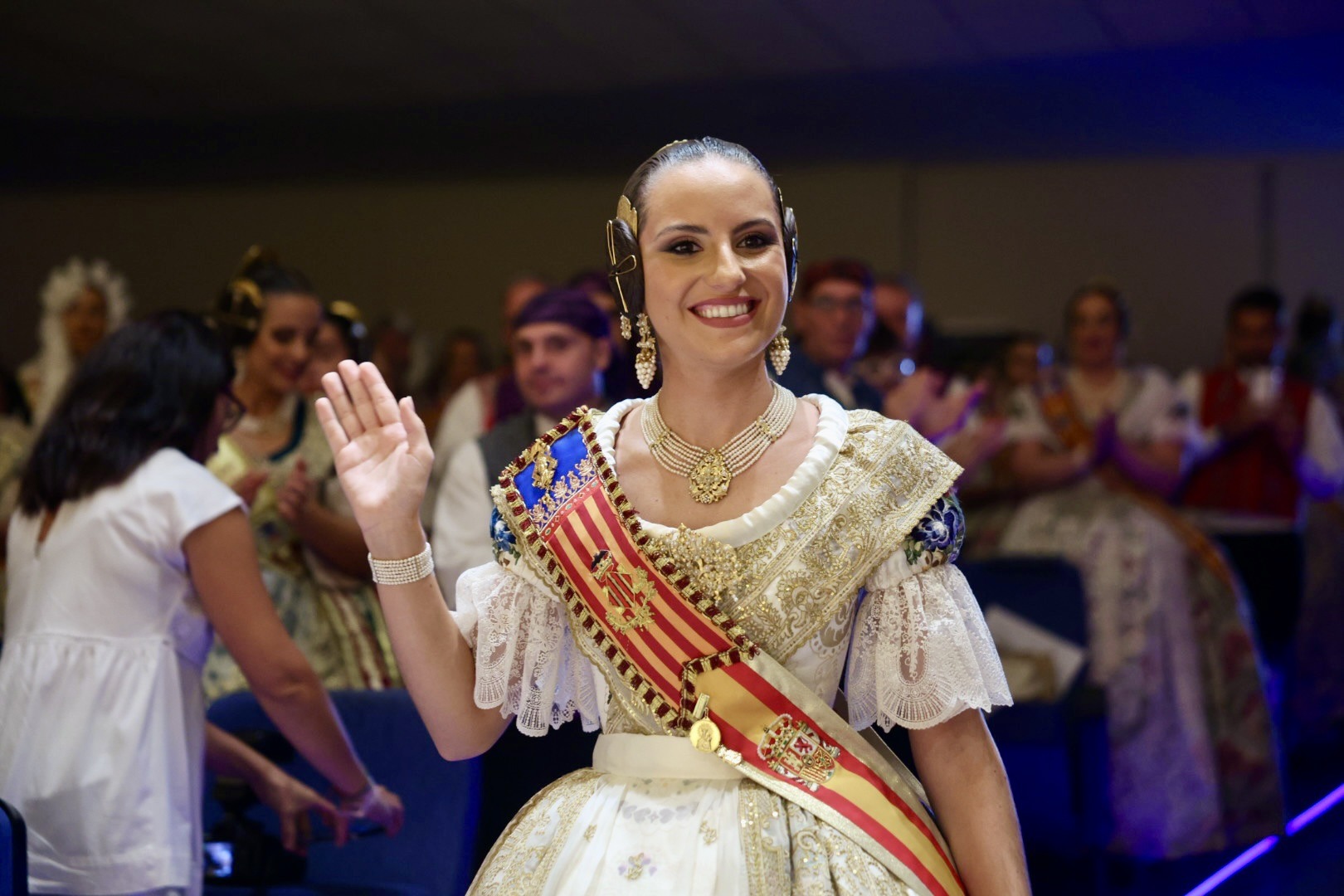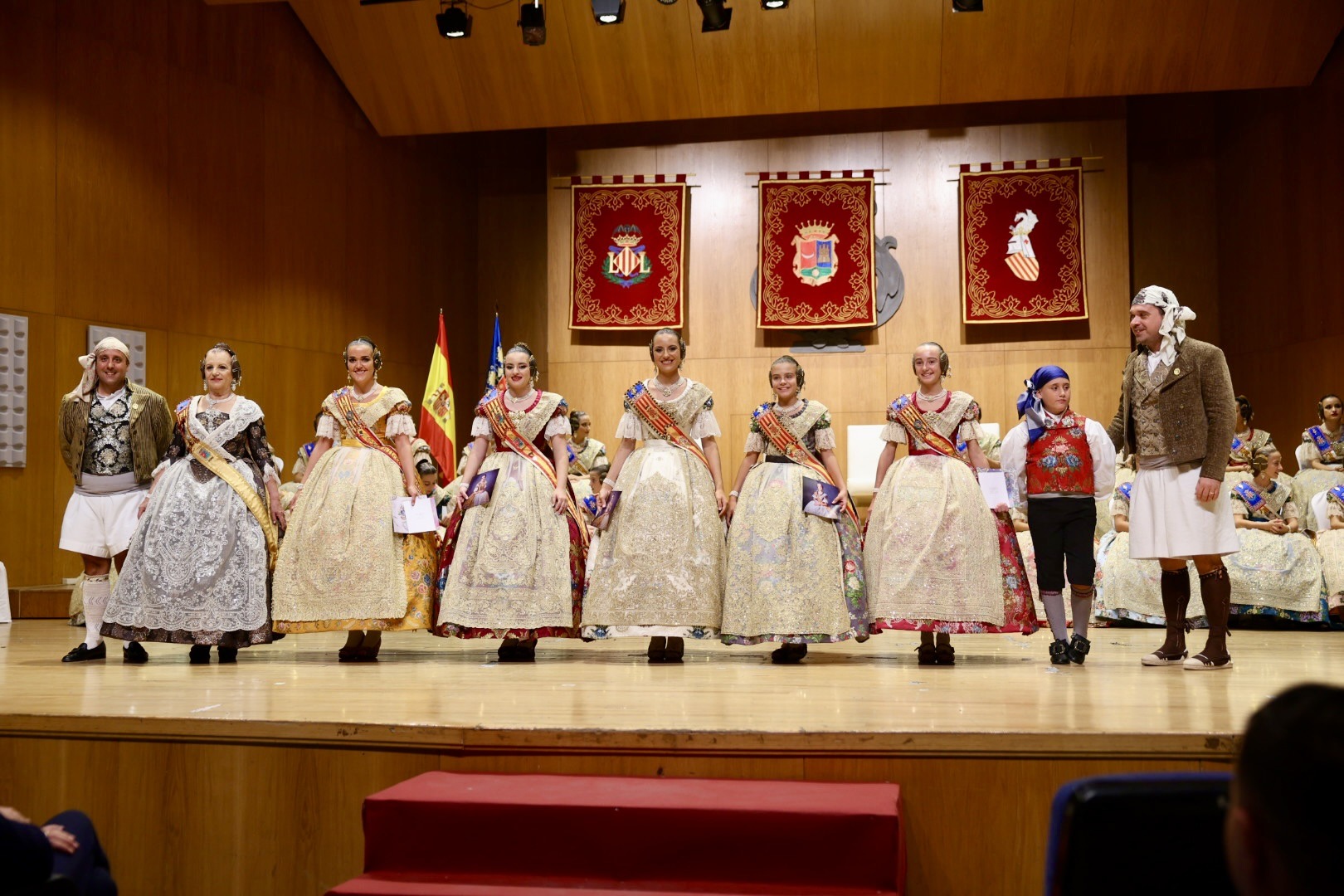 Un pasacalle con un fin de ruta en el Auditorio Unión Musical, donde se ha celebrado el acto de Homenaje conducido por Boro Peiró, en el que las falleras y falleros han ido subiendo al escenario para intercambiar fotografías.