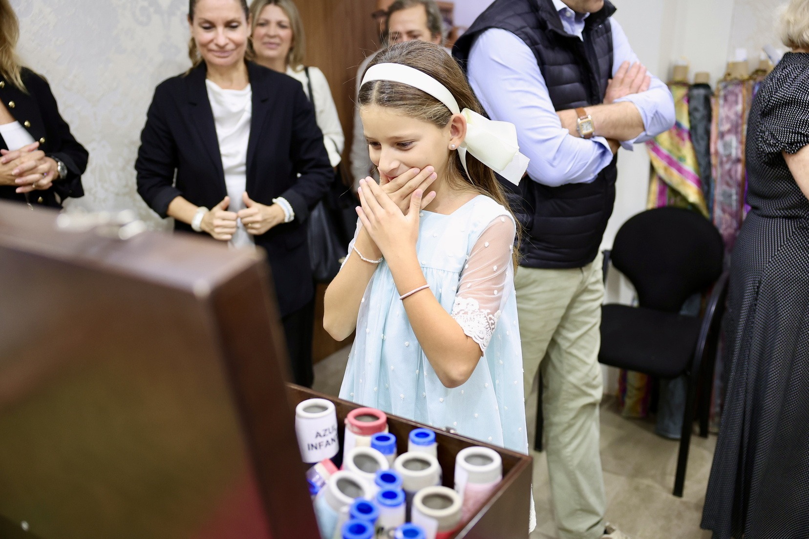 A primera hora de la mañana, la Fallera Mayor de Valencia, Carmen Prades, junto con sus padres y el secretario general, Nico Garcés, han estado junto a los profesionales del telar para elegir tanto su primer traje oficial como el segundo. A continuación, ha sido el turno de Marta Mercader, Fallera Mayor Infantil de Valencia, que junto a sus padres y a Nico ha elegido su espolín oficial.