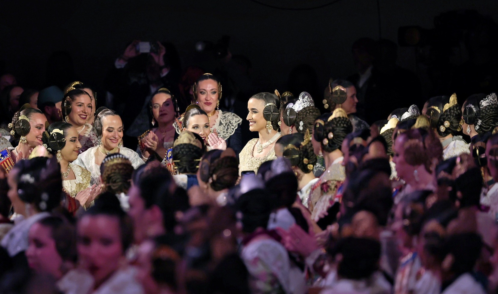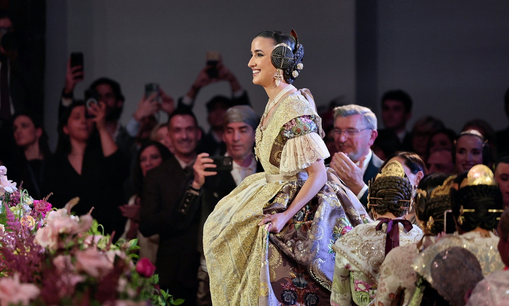 La Sala Iturbi del Palau de la Música se ha puesto en pie y se ha unido en un aplauso unánime de emoción cuando Carmen ha iniciado su desfile. Tranquila, sonriente y visiblemente emocionada, ha caminado por el pasillo bajo la mirada atenta de falleros y falleras presentes en la sala y acompañada, unos pasos más atrás, por la Alcaldesa de Valencia, María José Catalá. En las primeras filas, su familia, ha acompañado el momento con aplausos cargados de orgullo al verla dirigirse hacia el escenario.