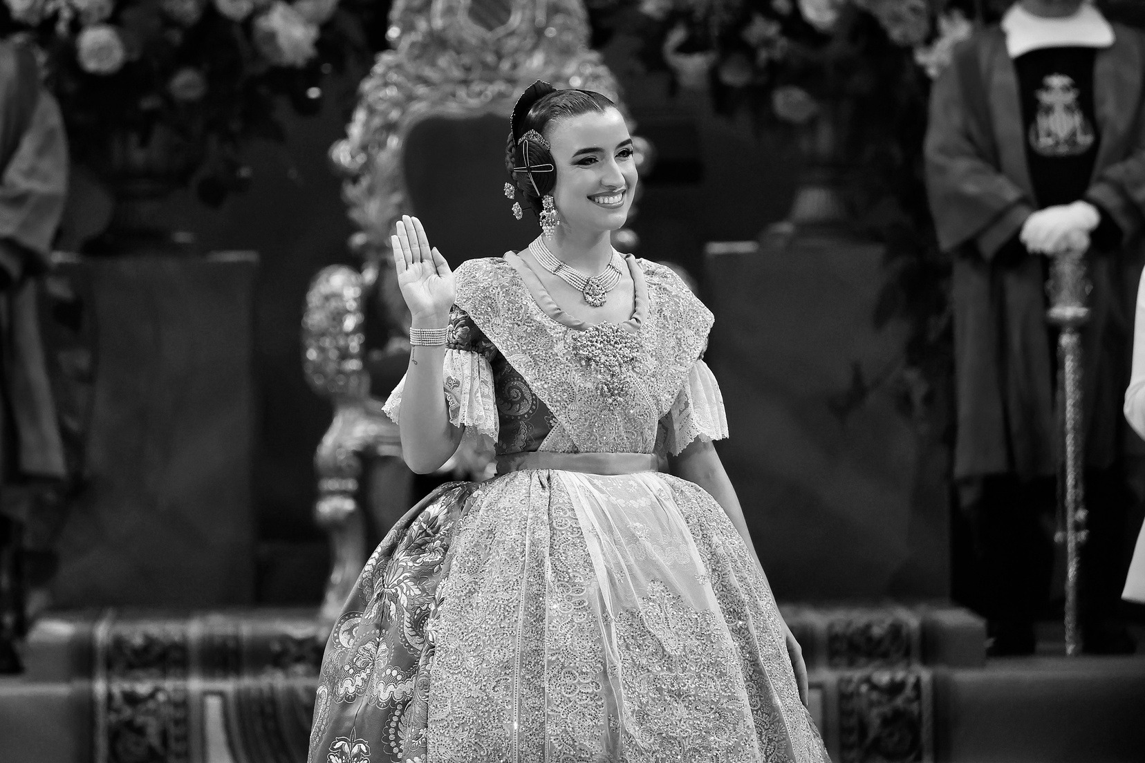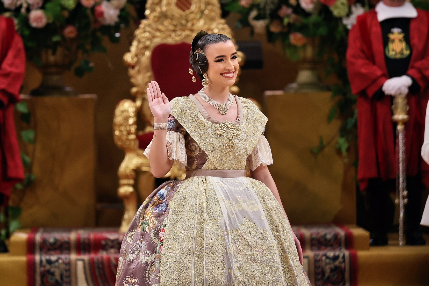 Con las solemnes palabras “Valencians i valencianes. De naixement o dret. Estants o habitants de la ciutat de València. És hora de que els fallers vos presentem a la nostra Regina per a rendir-la els honors que la seua distinció mereix. Pel conjunt de virtuts que atresora i que la fan dignísima portadora de nostra més alta representació, retem homenatge d’amor i pleitesia a la Fallera Major de València…».” se ha dado paso a uno de los momentos más esperados del calendario fallero: la presentación oficial de Carmen Prades Gil como Fallera Mayor de Valencia.