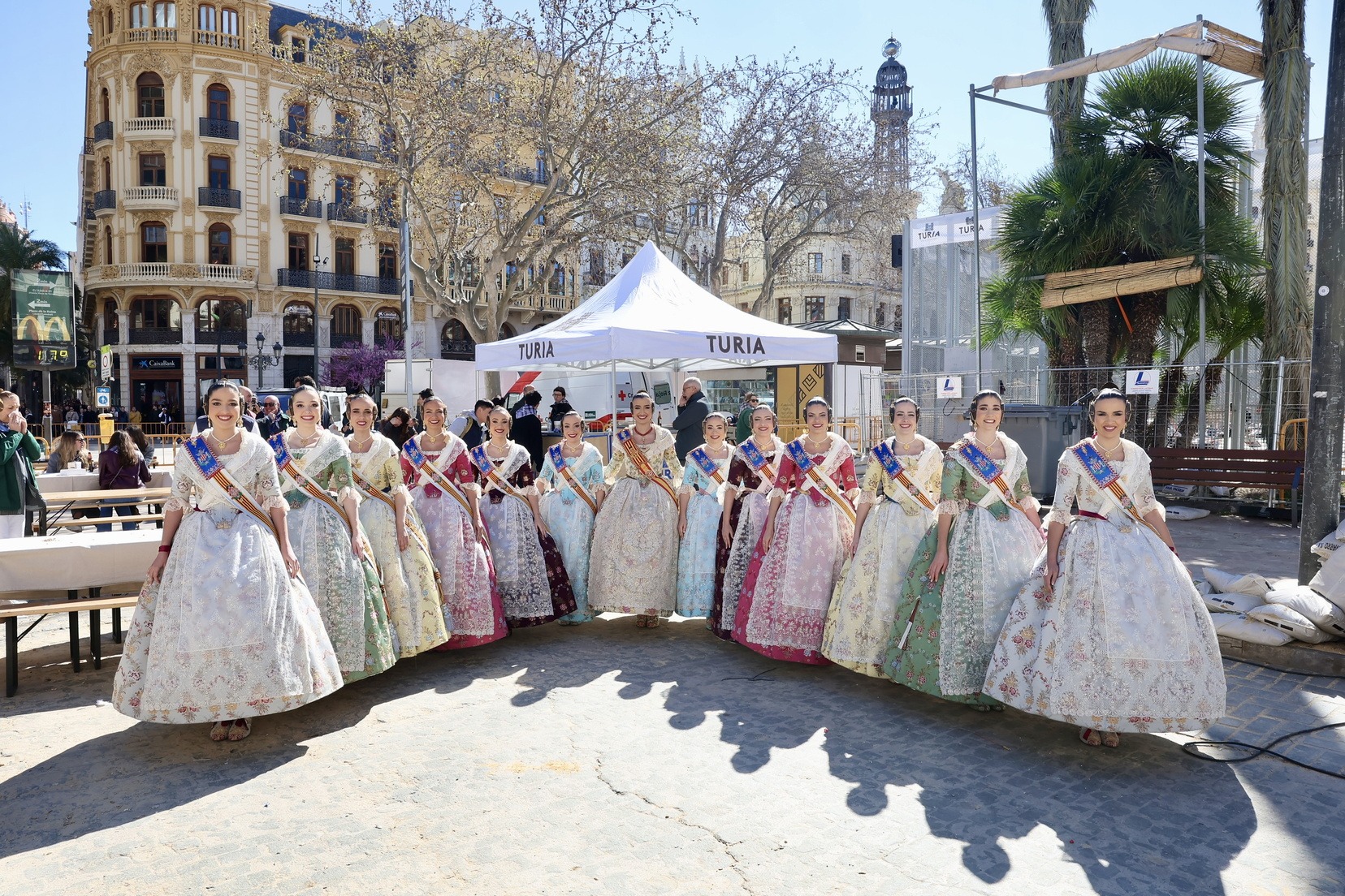 La plaza del Ayuntamiento ha acogido esta mañana el tradicional almuerzo de la Plantà, celebrado a los pies de la falla municipal “Hope”, que ya comienza a presidir el centro de la ciudad durante los días grandes de las Fallas.