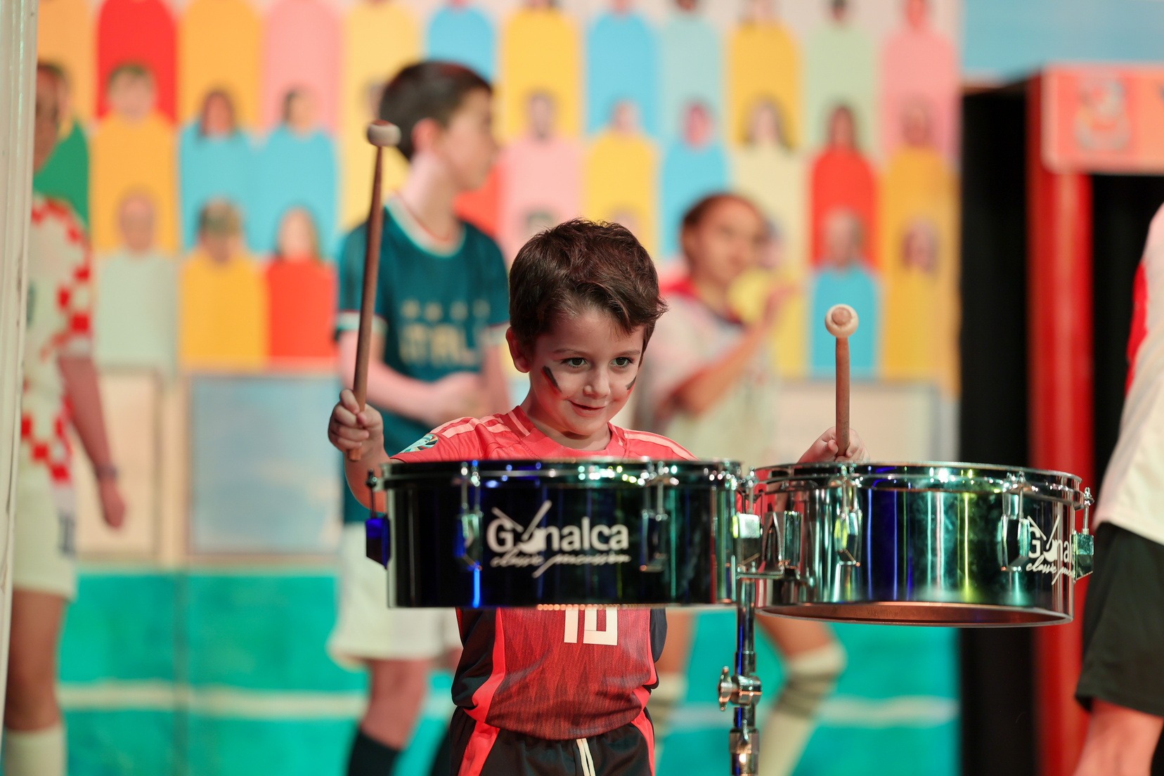A continuación, hemos podido disfrutar de la actuación de la falla Yecla-Cardenal Benlloch, con el tema “Mundo” que, a través de varias canciones de distintos Mundiales de fútbol, ha hecho vibrar a todo el público.