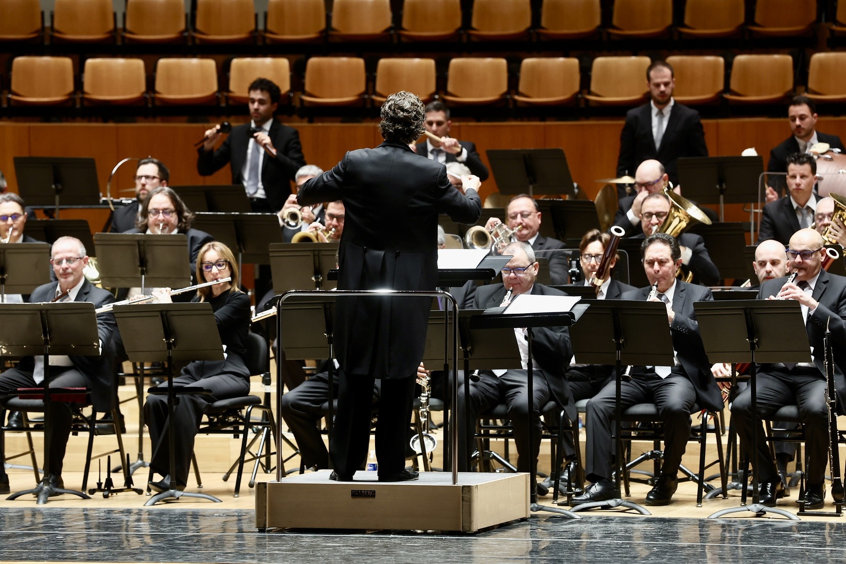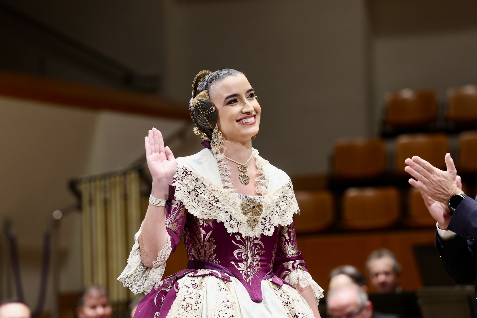 La Sala Iturbi del Palau de la Música ha acogido esta mañana la presentación de los pasodobles dedicados a las Falleras Mayores de Valencia, Carmen Prades y Marta Mercader, en un concierto interpretado por la Banda Sinfónica Municipal de Valencia dirigido por Cristóbal Soler, que bajo el nombre de «Pasodobles y valses» ha fusionado la tradición fallera con el repertorio sinfónico internacional. Además, ha contado con la colaboración del alumnado del Conservatorio Superior de Danza de Valencia «Nacho Duato», quienes han dado vida visual a piezas icónicas como el «Vals de las flores» de Tchaikovsky o el preludio de «El Bateo» de Federico Chueca.