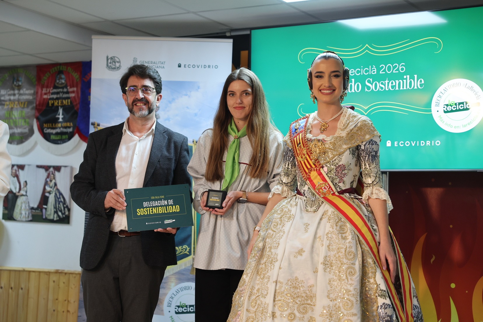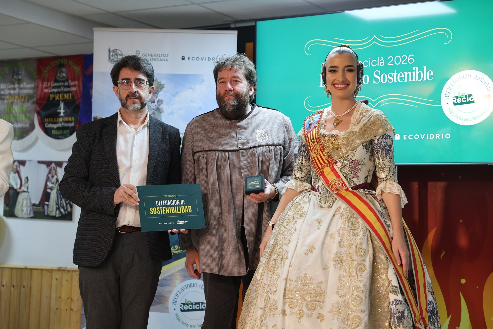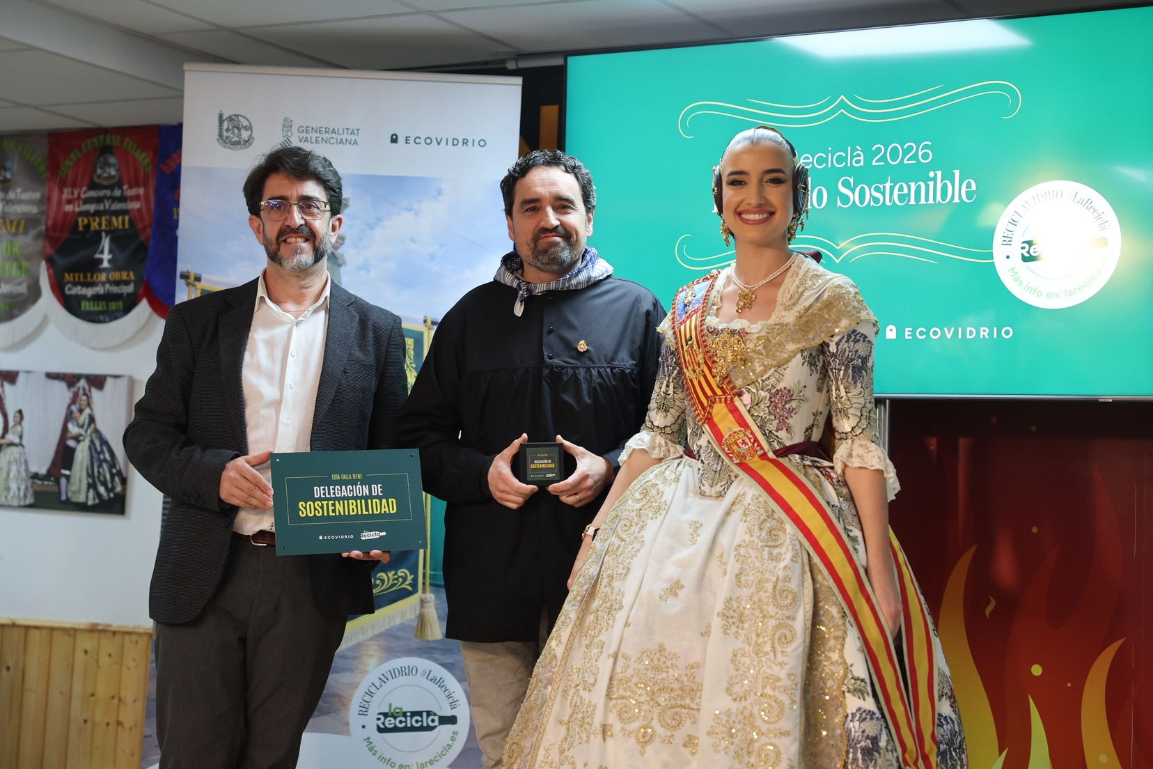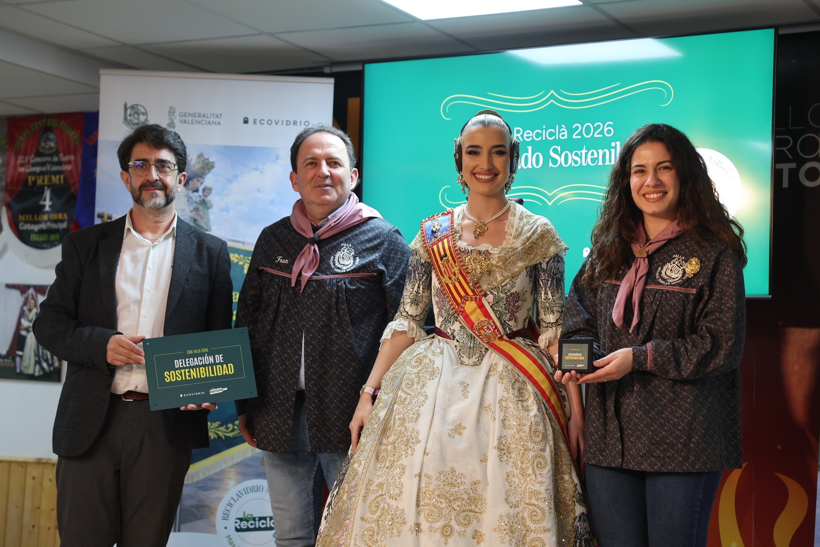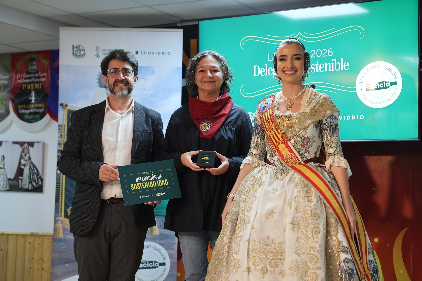Durante el acto, además, se ha querido rendir un pequeño homenaje a todas las comisiones que han incorporado la figura de Delegado o Delegada Sostenible y se han entregado las insignias y placas acreditativas a las fallas que apuestan por impulsar el reciclaje y la sostenibilidad dentro del mundo fallero.