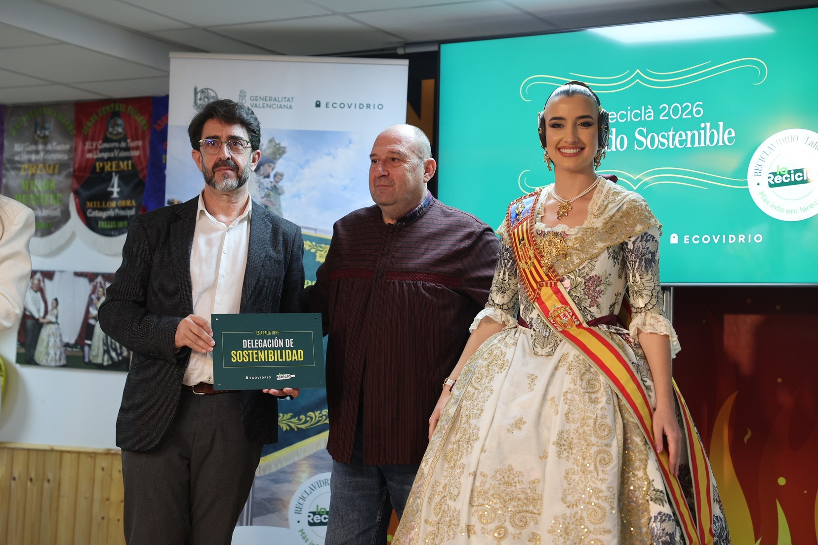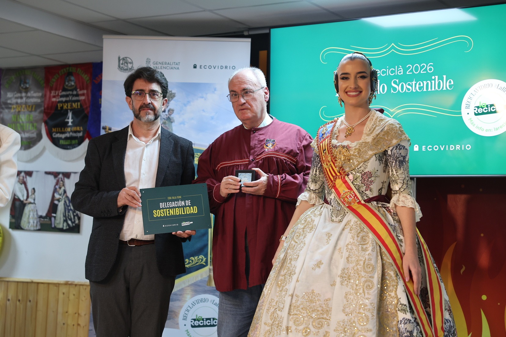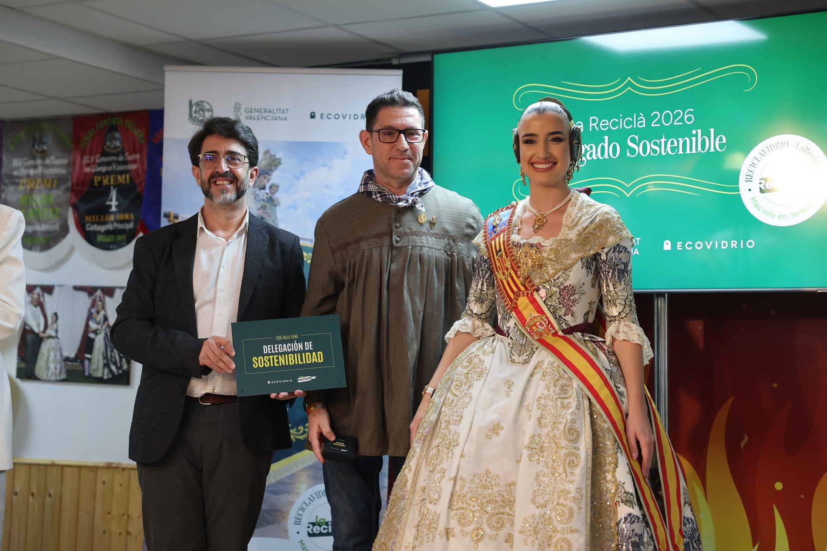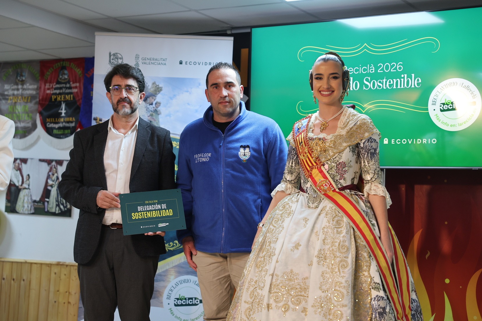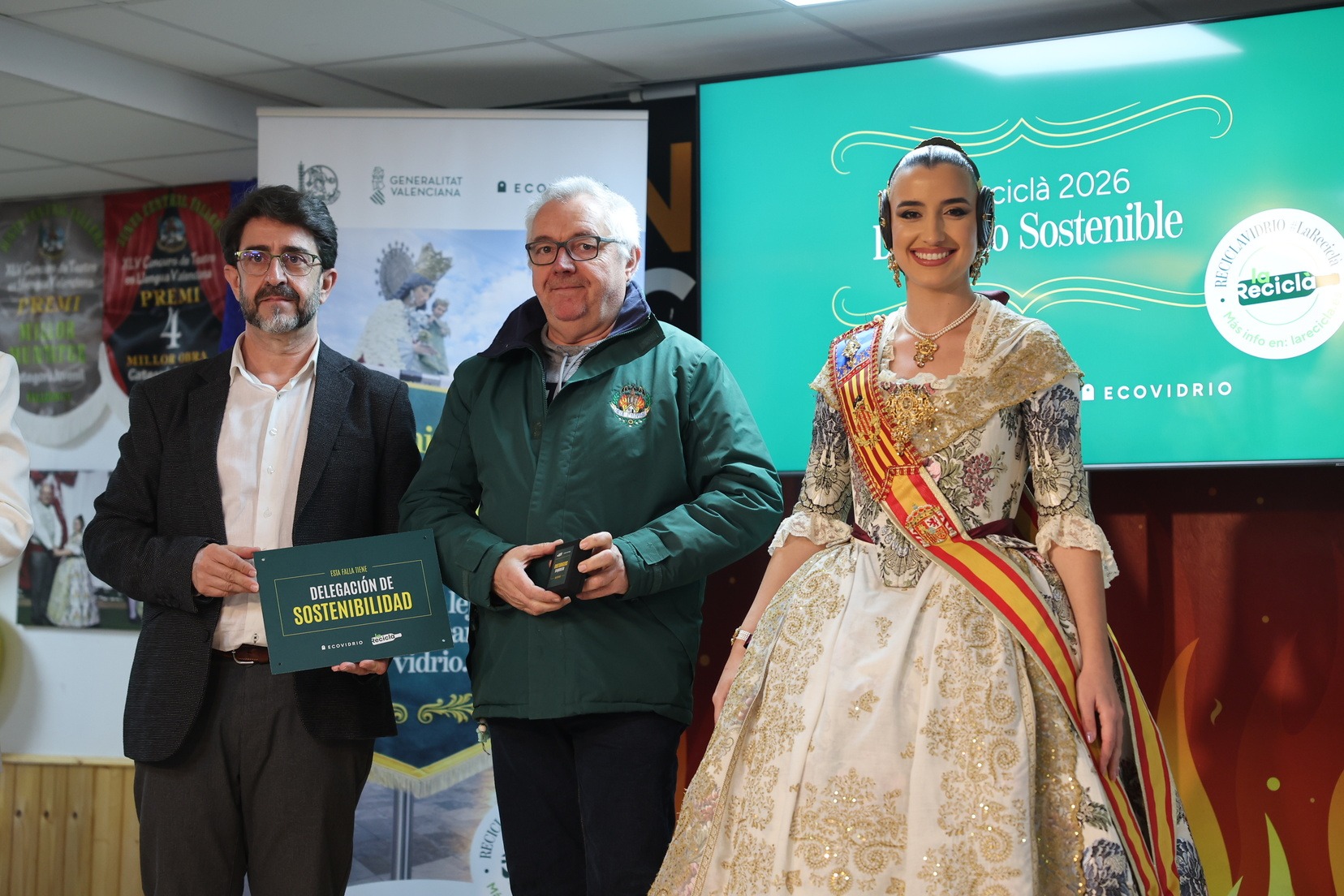 Durante el acto, además, se ha querido rendir un pequeño homenaje a todas las comisiones que han incorporado la figura de Delegado o Delegada Sostenible y se han entregado las insignias y placas acreditativas a las fallas que apuestan por impulsar el reciclaje y la sostenibilidad dentro del mundo fallero.
