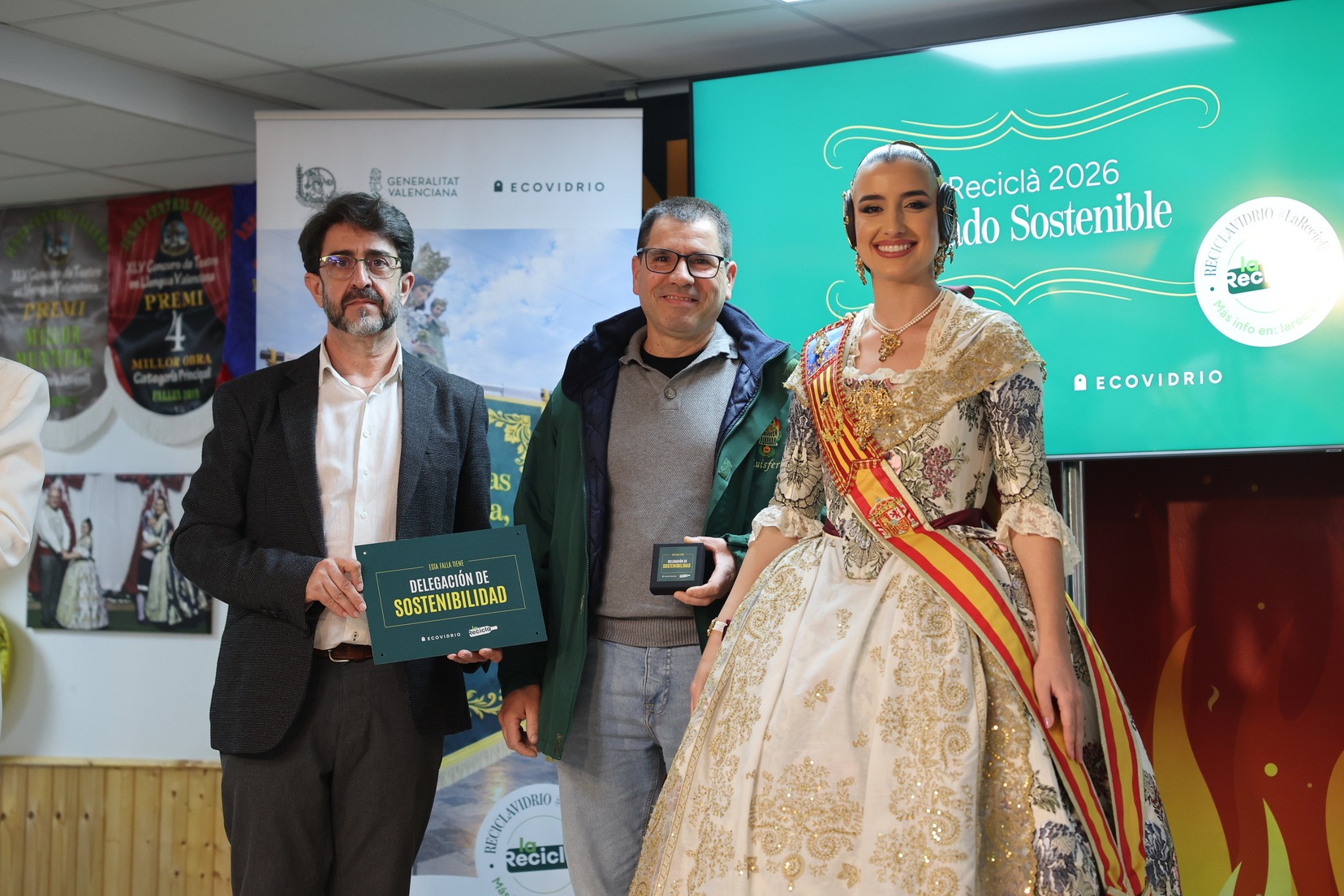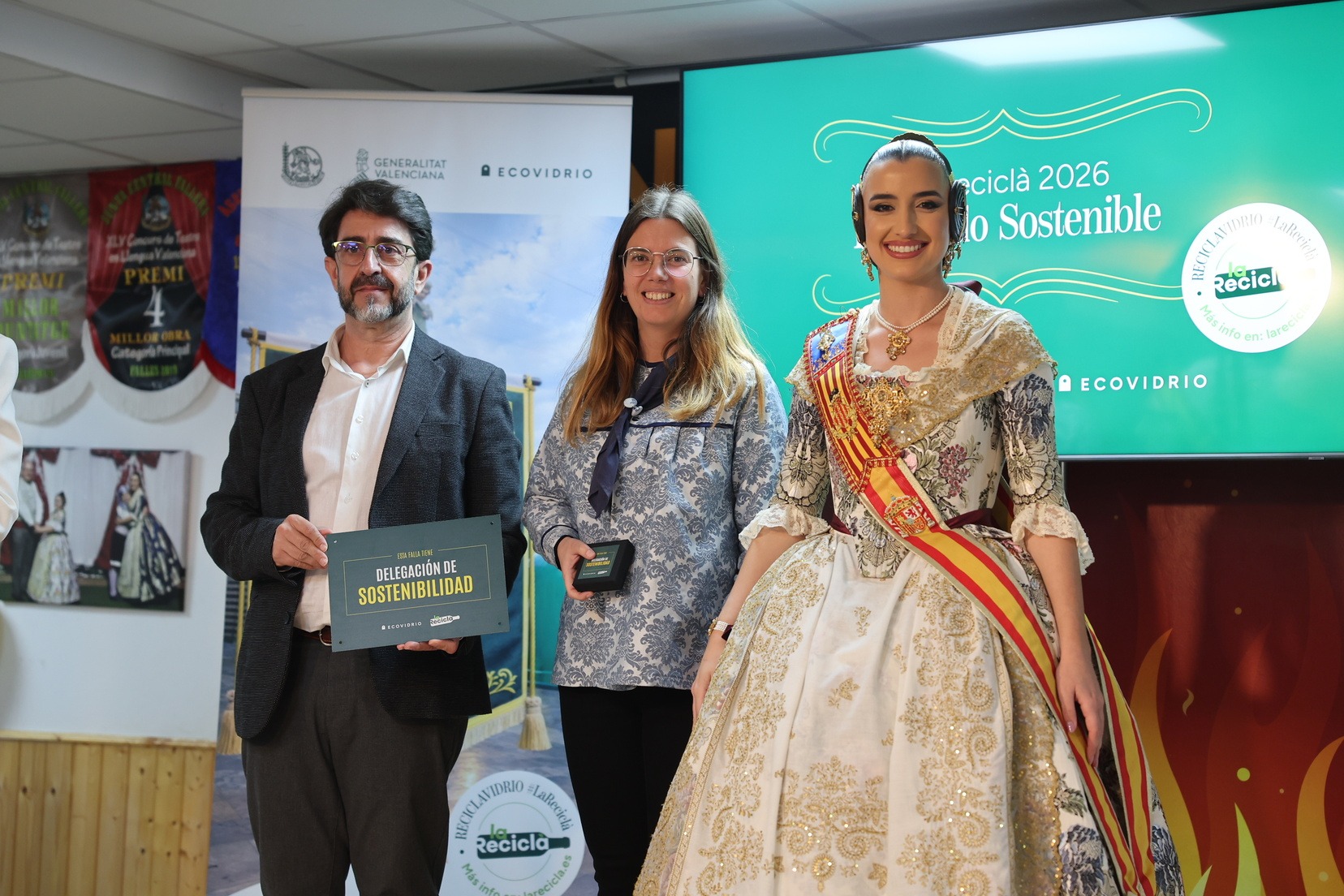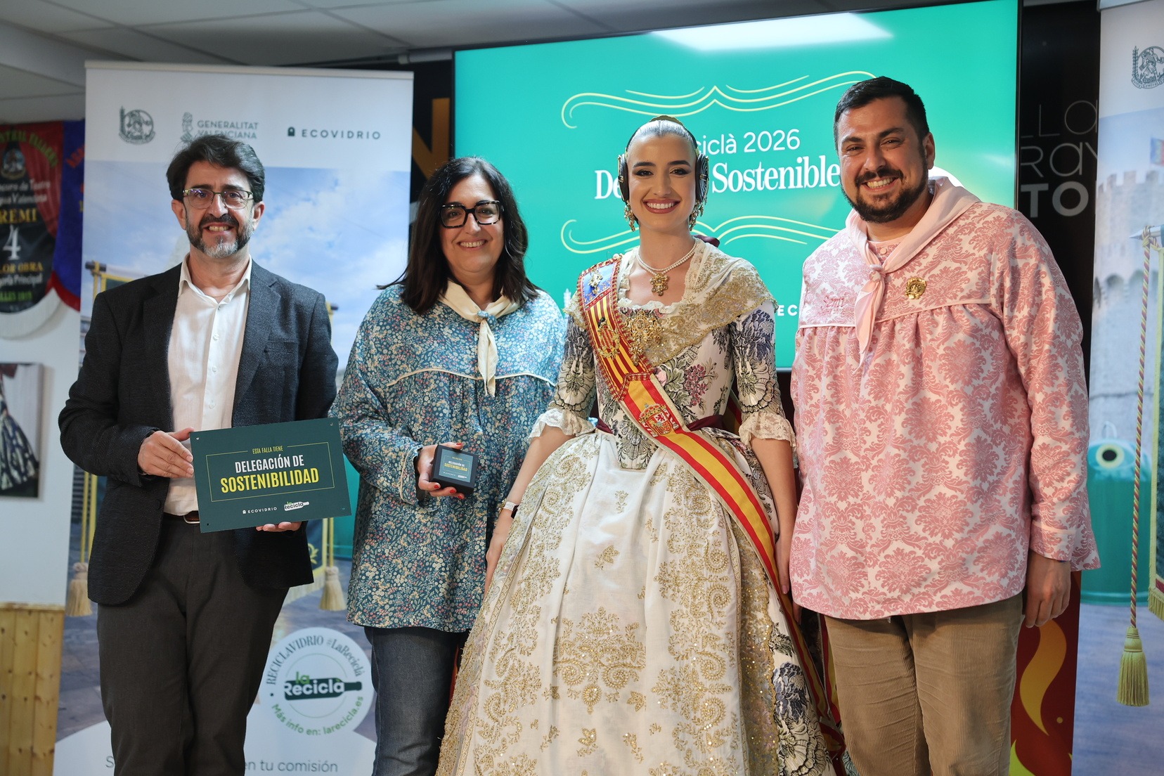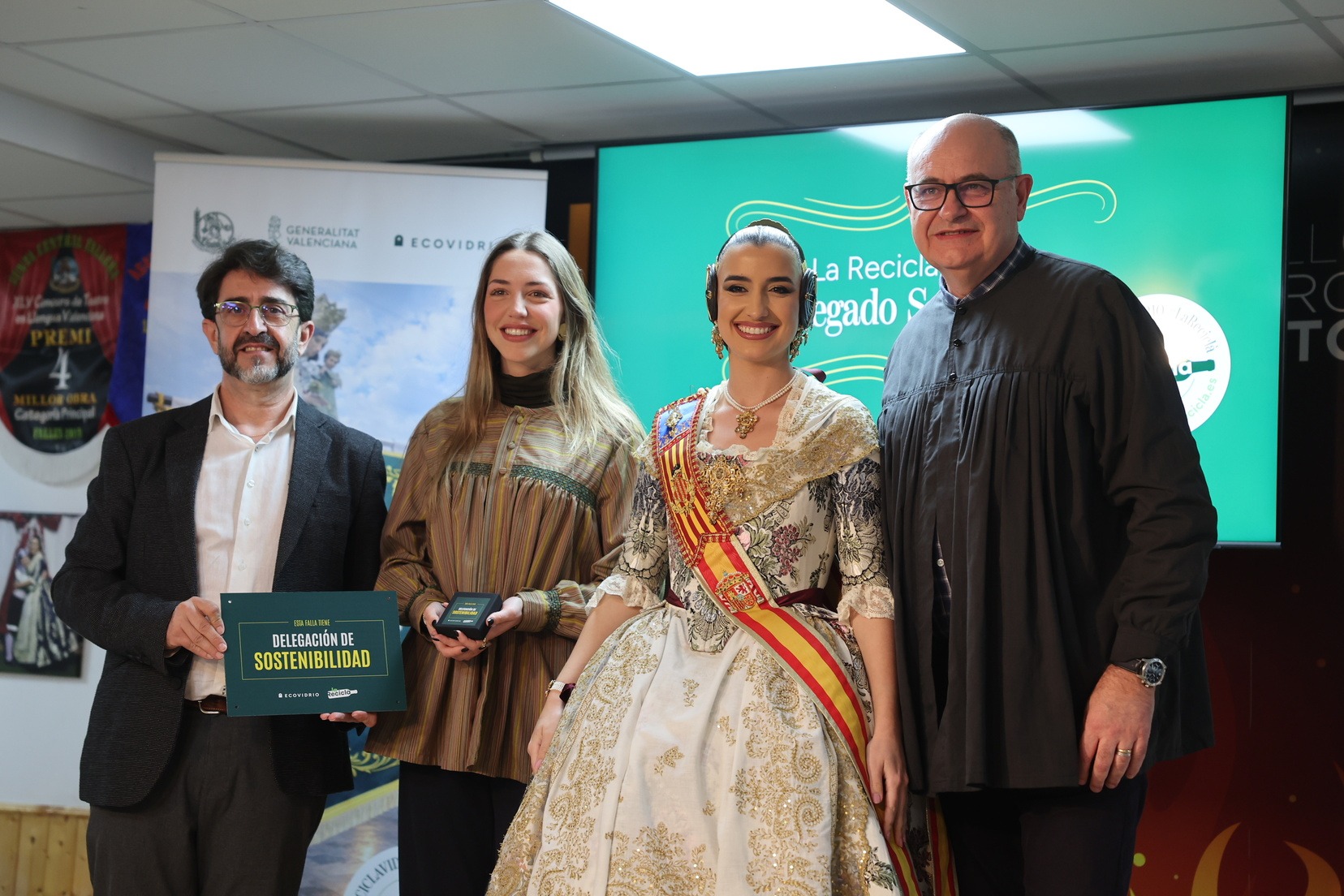 Durante el acto, además, se ha querido rendir un pequeño homenaje a todas las comisiones que han incorporado la figura de Delegado o Delegada Sostenible y se han entregado las insignias y placas acreditativas a las fallas que apuestan por impulsar el reciclaje y la sostenibilidad dentro del mundo fallero.