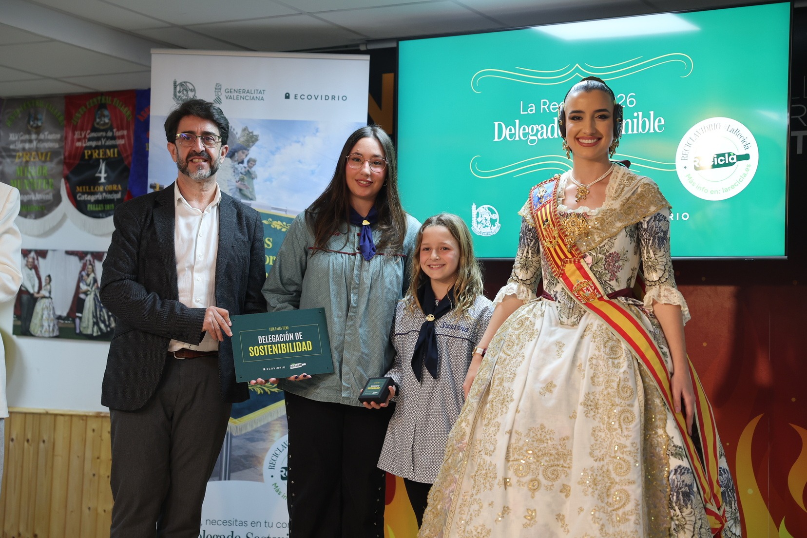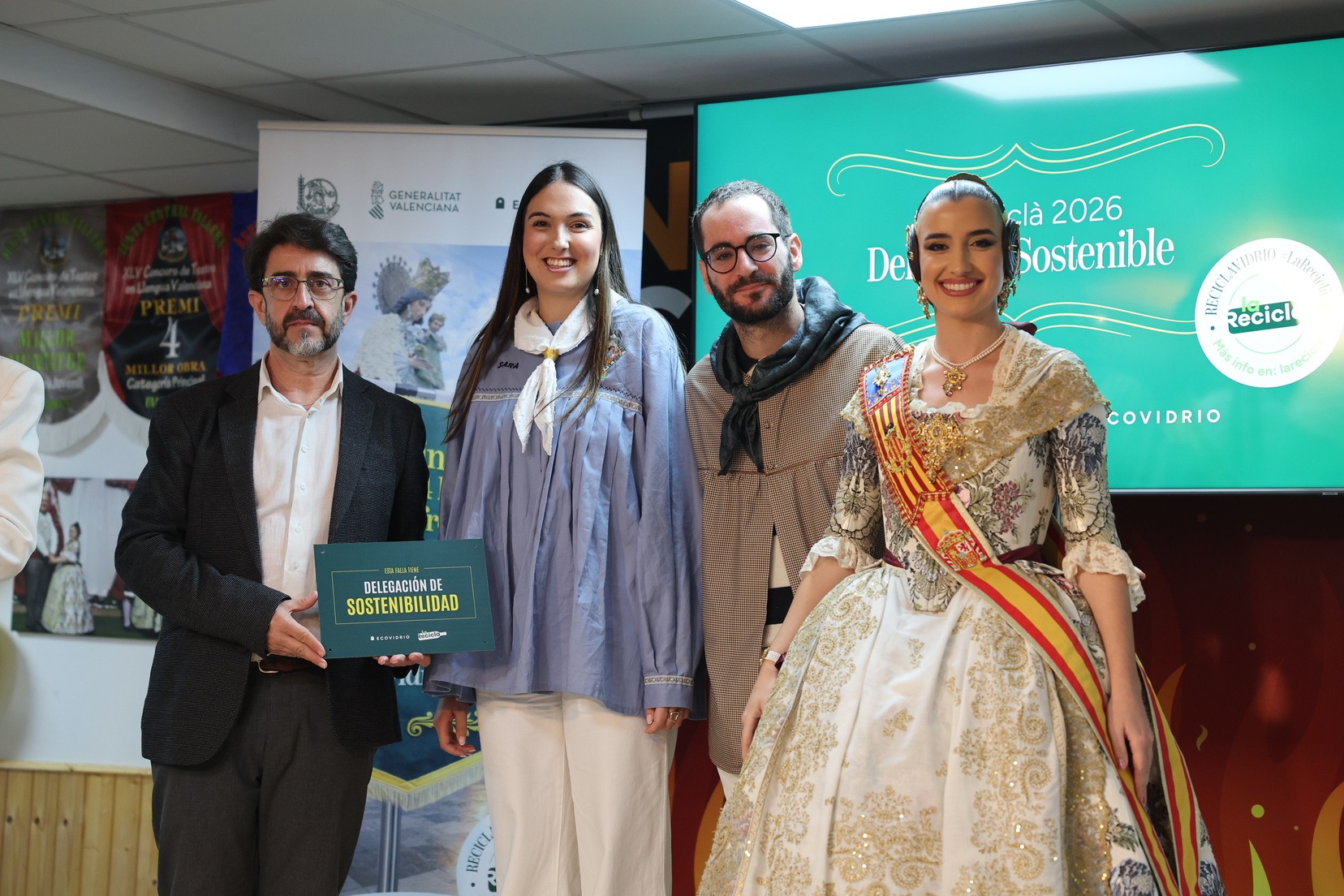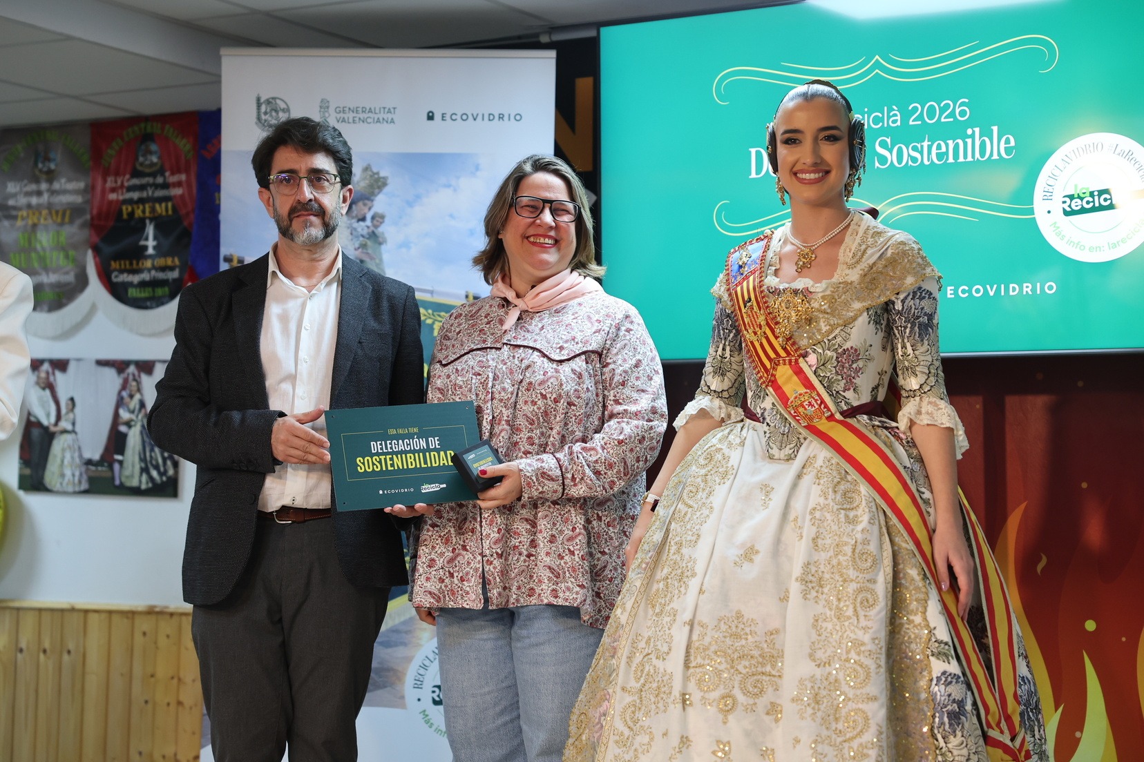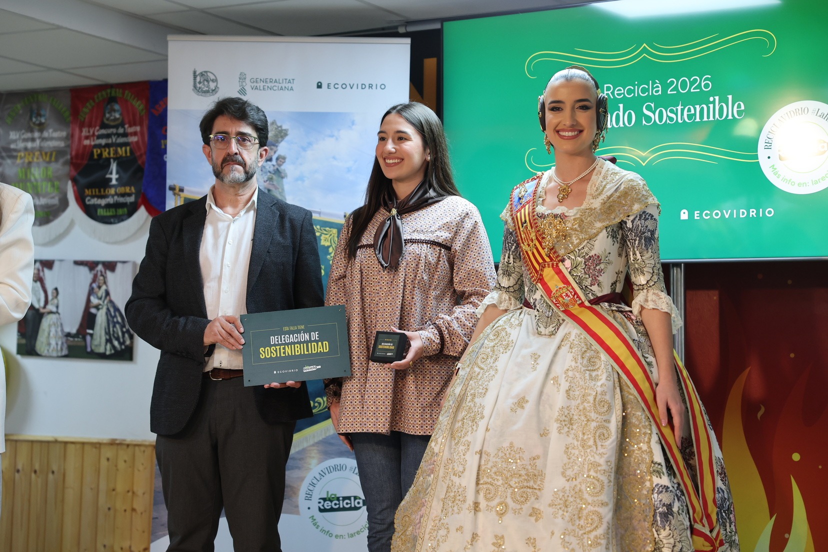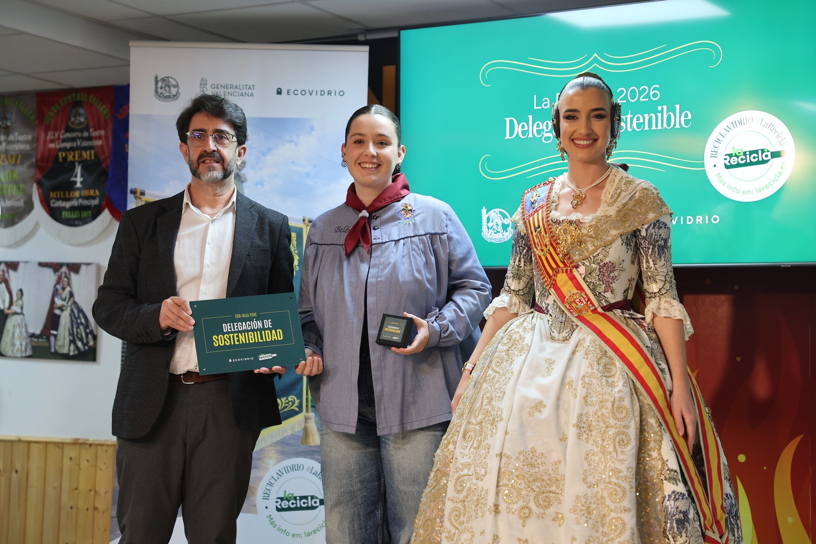 Durante el acto, además, se ha querido rendir un pequeño homenaje a todas las comisiones que han incorporado la figura de Delegado o Delegada Sostenible y se han entregado las insignias y placas acreditativas a las fallas que apuestan por impulsar el reciclaje y la sostenibilidad dentro del mundo fallero.