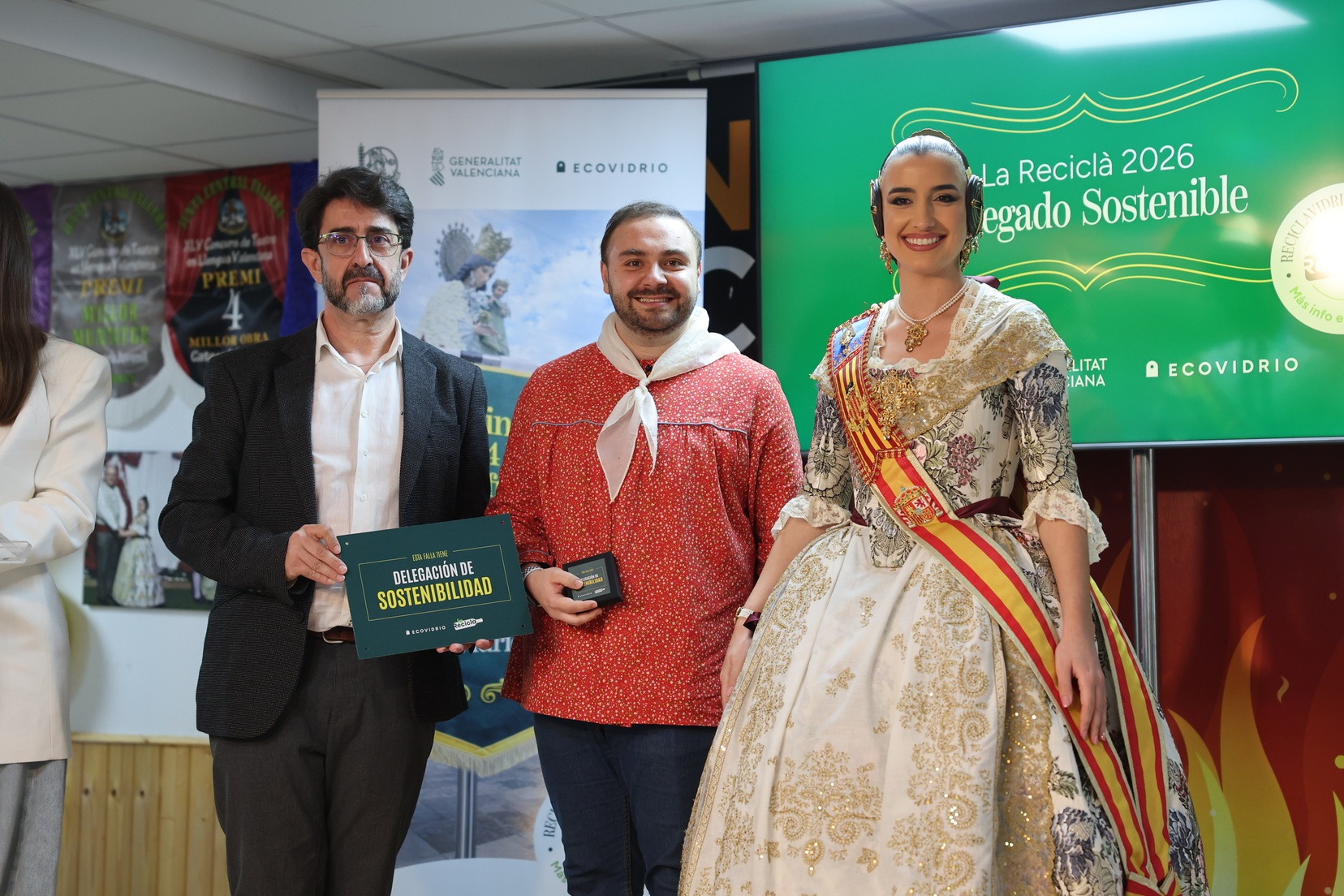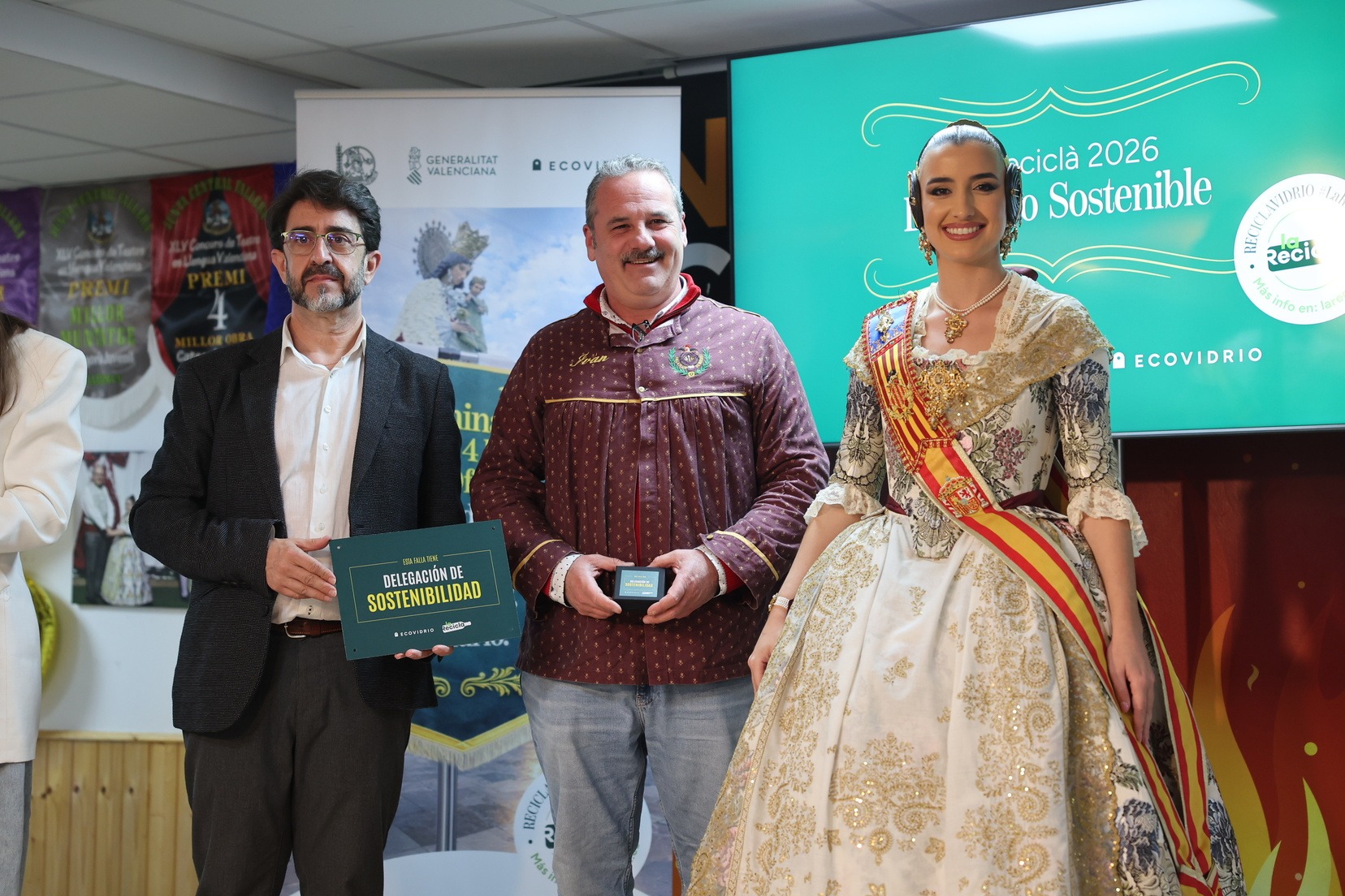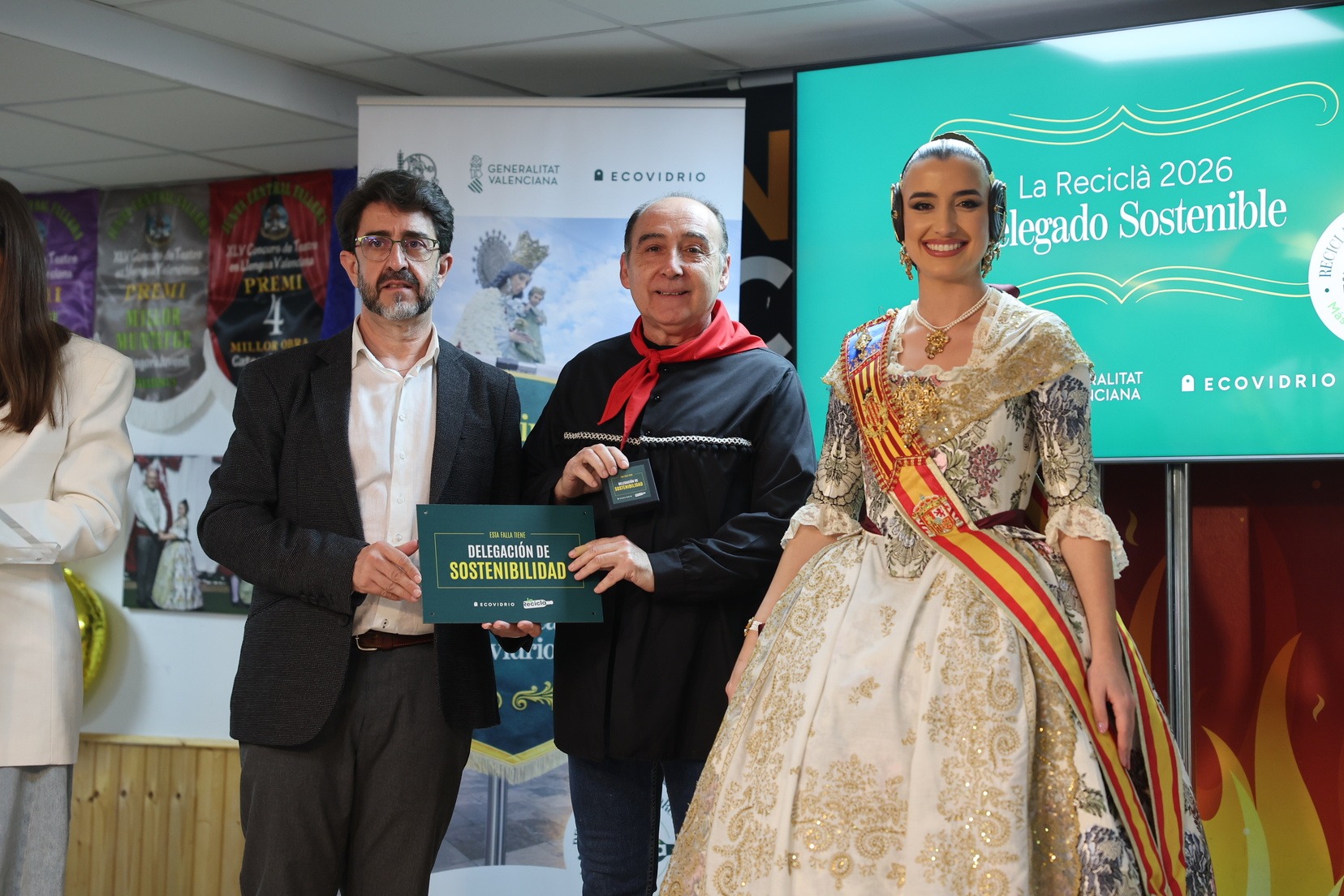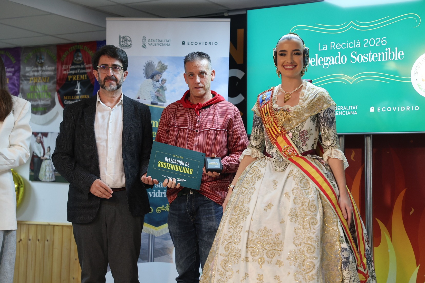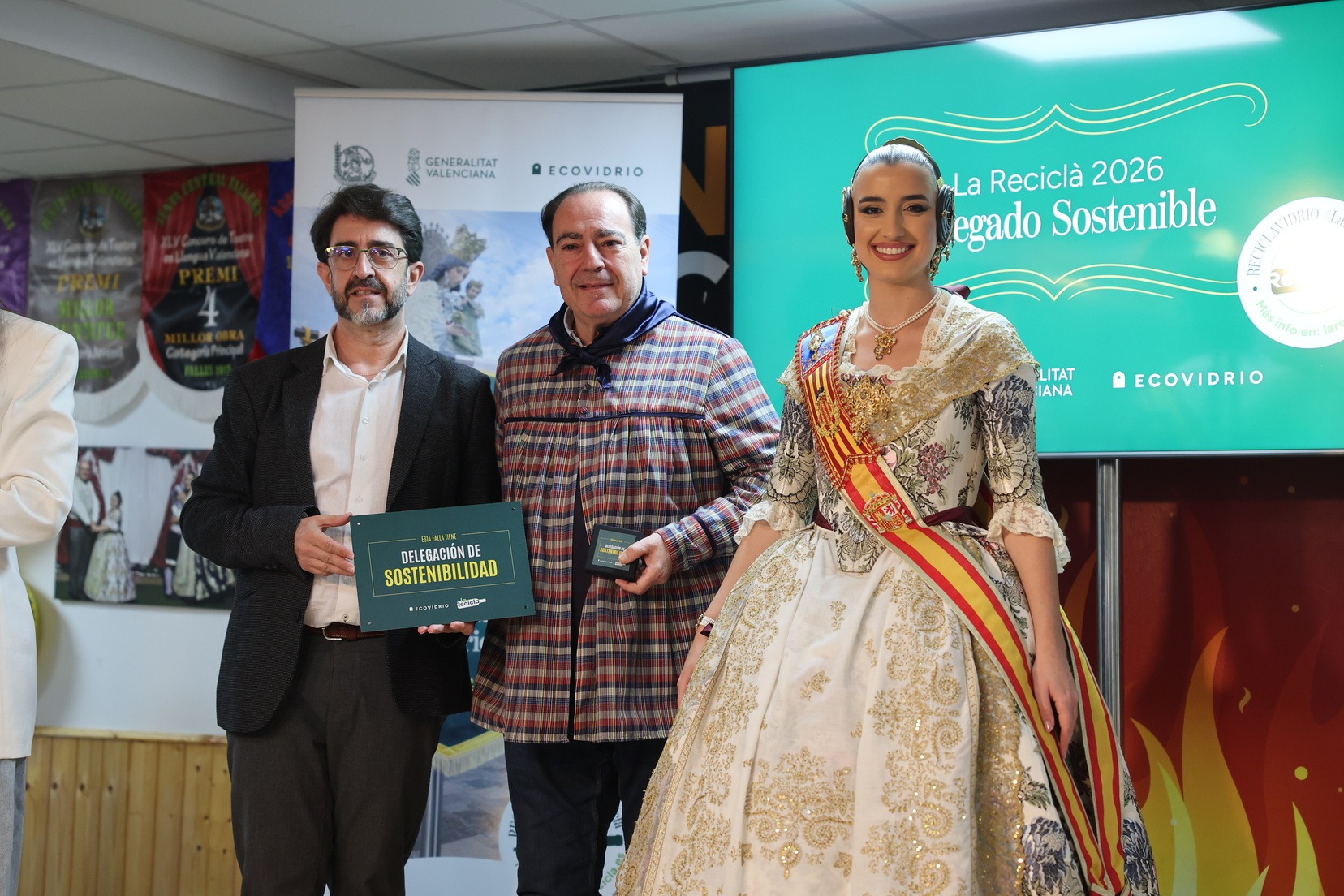 Durante el acto, además, se ha querido rendir un pequeño homenaje a todas las comisiones que han incorporado la figura de Delegado o Delegada Sostenible y se han entregado las insignias y placas acreditativas a las fallas que apuestan por impulsar el reciclaje y la sostenibilidad dentro del mundo fallero.