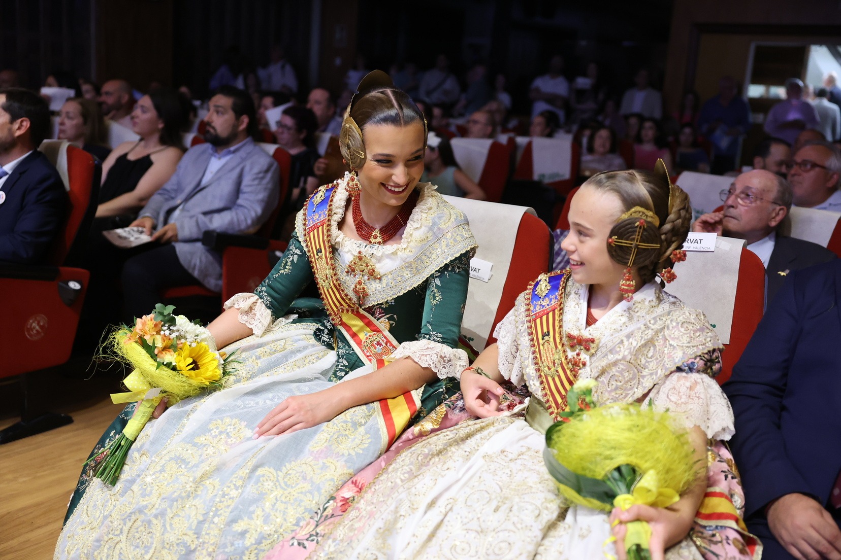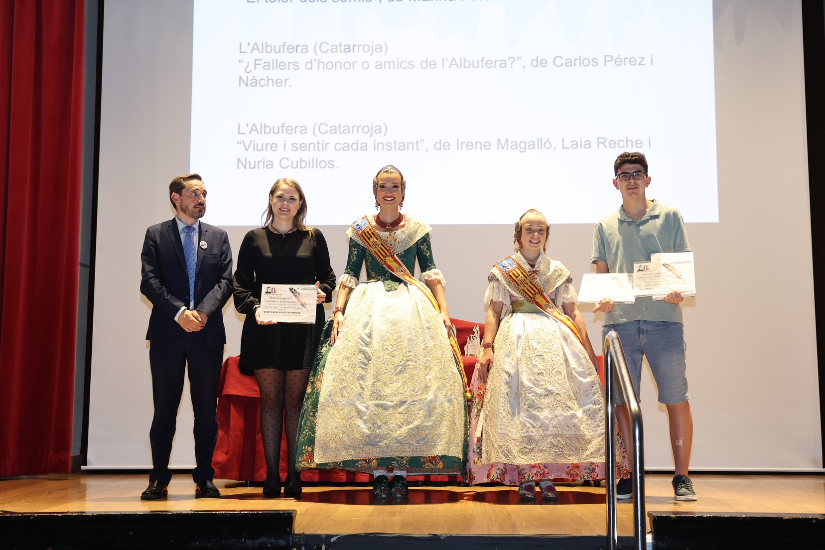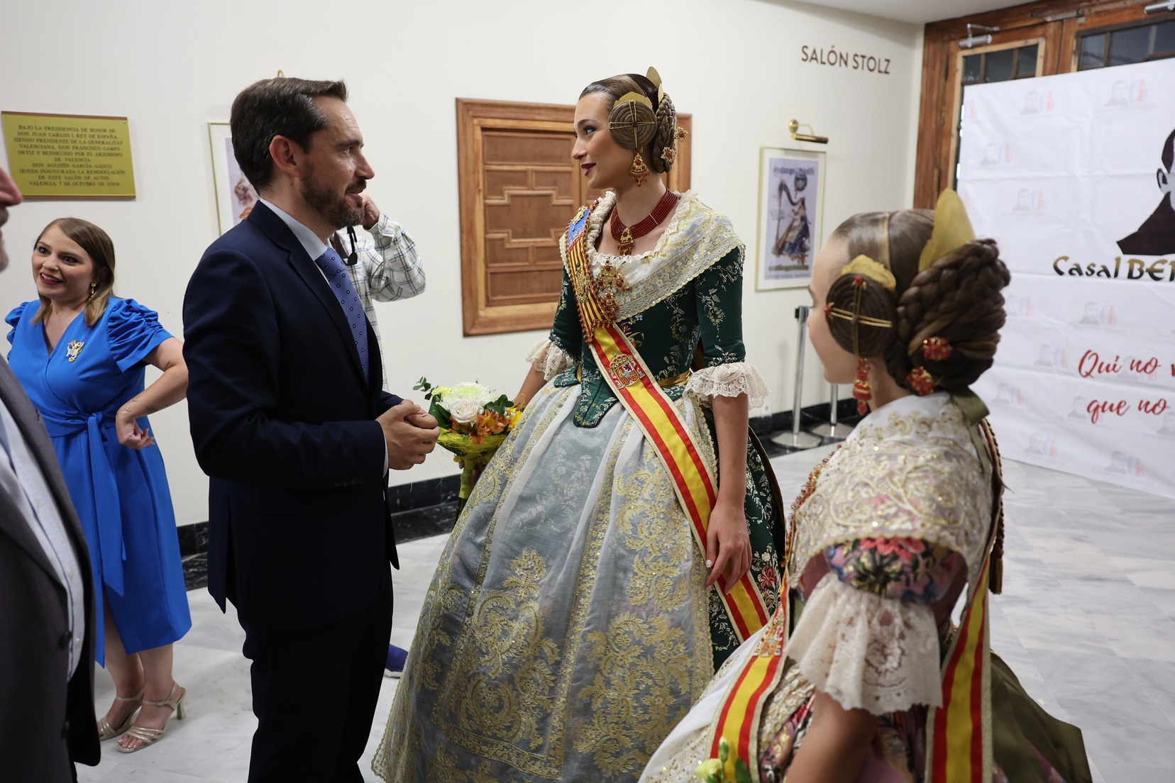 La Fallera Mayor Infantil de Valencia, Lucía García, y la Fallera Mayor de Valencia, Berta Peiró, han sido las encargadas de entregar los premios acompañadas por Óscar Rueda, presidente del Casal Bernat y Baldoví.