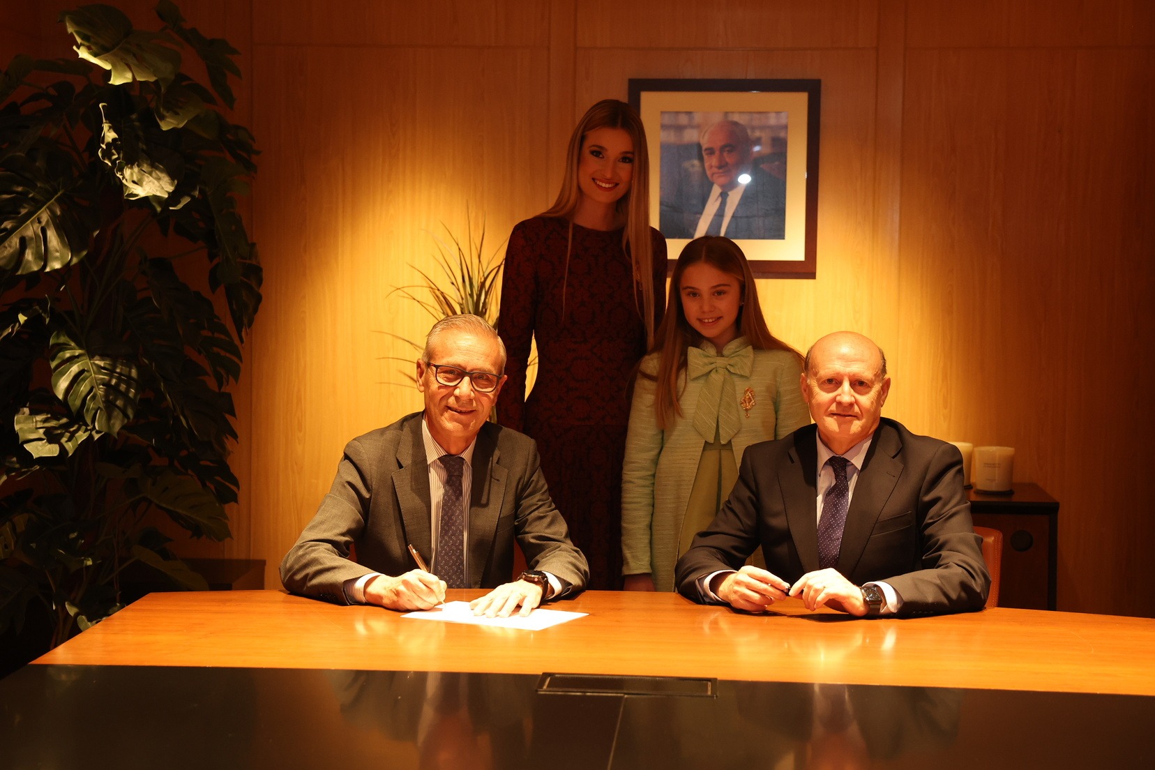Al finalizar la firma de este compromiso, Berta y Lucía han sido obsequiadas con la Nancy Fallera que Famosa ha lanzado este invierno como homenaje a Valencia tras la Dana.