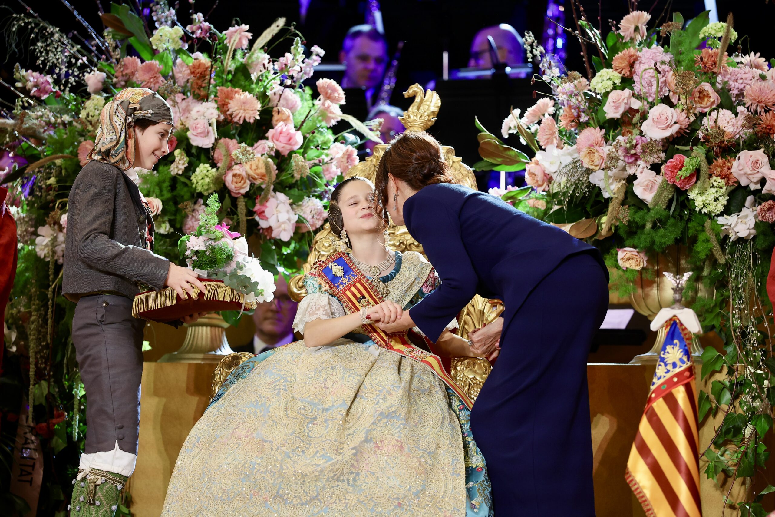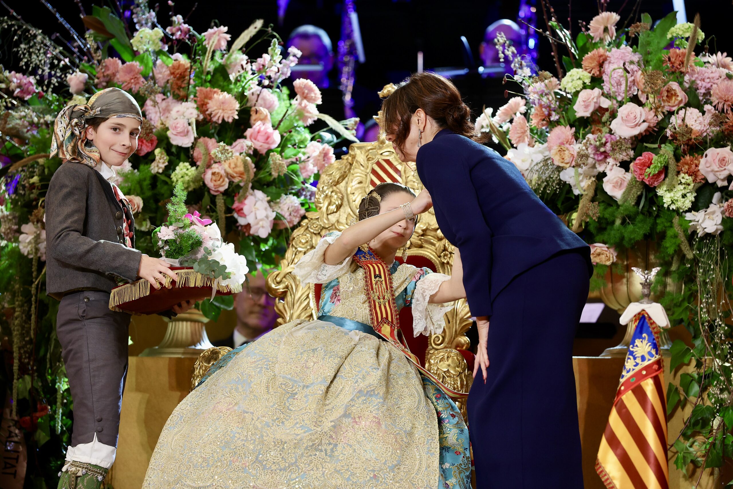 Fallera Mayor Infantil de Valencia, Marta Mercader Roig; Excelentísima alcaldesa de Valencia, señora doña María José Catalá; Honorable vicepresidenta del Consell, Susana Camarero; presidente de Junta Central Fallera, Don Santiago Ballester; Fallera Mayor de Valencia, Carmen Prades Gil; Cortes de Honor; Reina Infantil de las Fiestas de Castellón, Ana Colón; Bellea del Foc Infantil, Valentina Tárraga; autoridades, padres, madres, niñas y niños que sois el orgullo y el futuro de la fiesta, falleros todos…