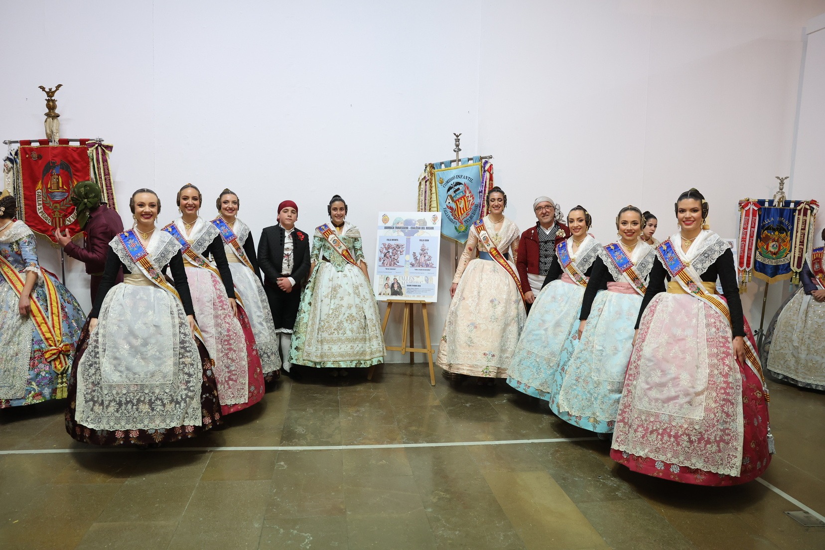 A la presentación han asistido las Falleras Mayores de Valencia, Carmen Prades Gil y Marta Mercader Roig, acompañadas por sus Cortes de Honor, que han recorrido la exposición y se han interesado por los distintos bocetos, manteniendo contacto directo con representantes y comisiones.