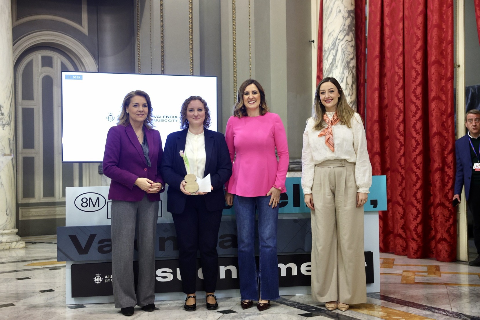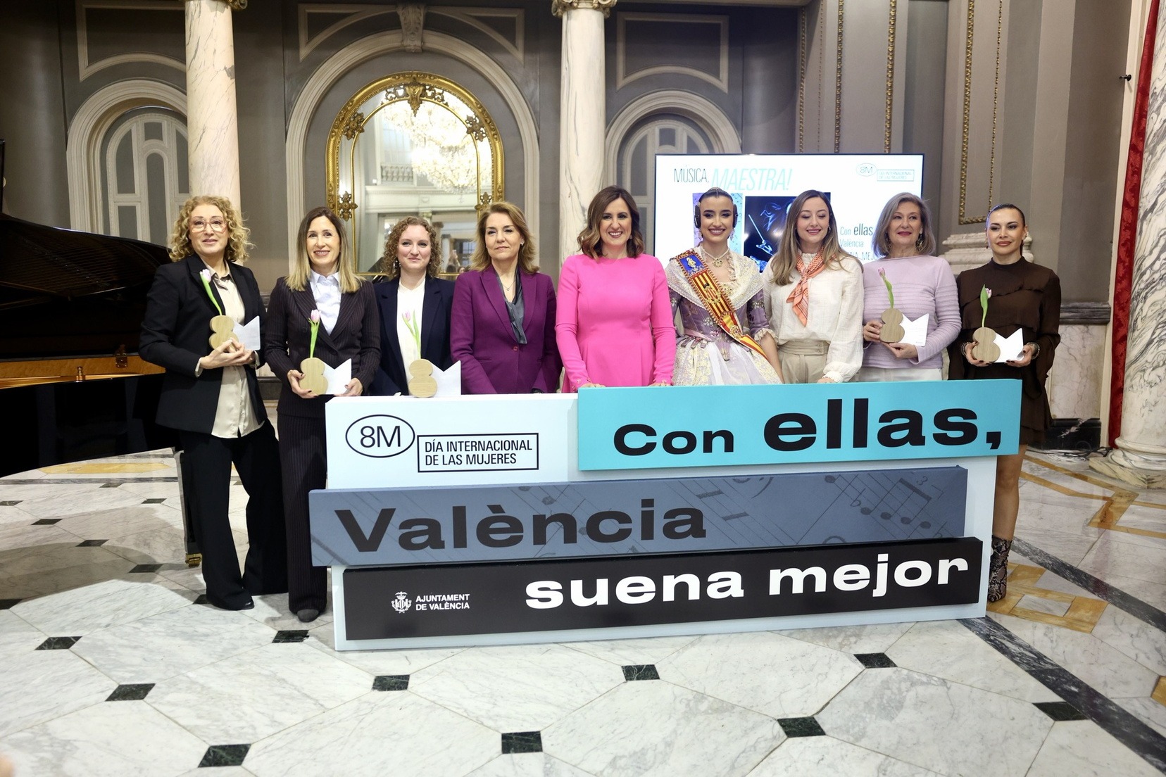 Esta recepción se enmarca dentro de la programación impulsada por el Ayuntamiento con motivo del 8 de marzo, que este año centra su campaña en la presencia y aportación de las mujeres en el mundo de la música bajo el lema “Con ellas, València suena mejor”, una iniciativa que busca visibilizar a intérpretes, compositoras, directoras, pinchadiscos y profesionales del ámbito musical.