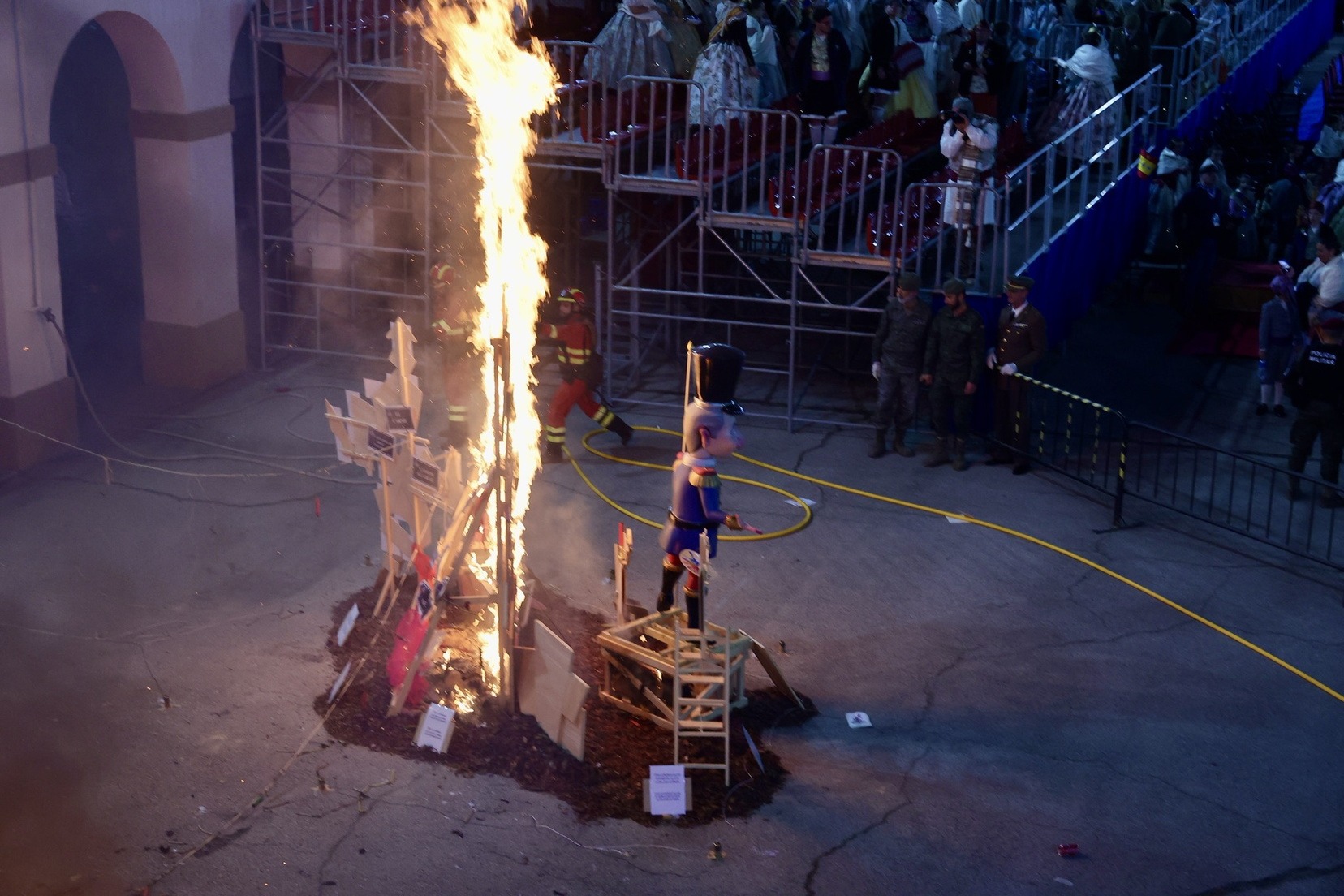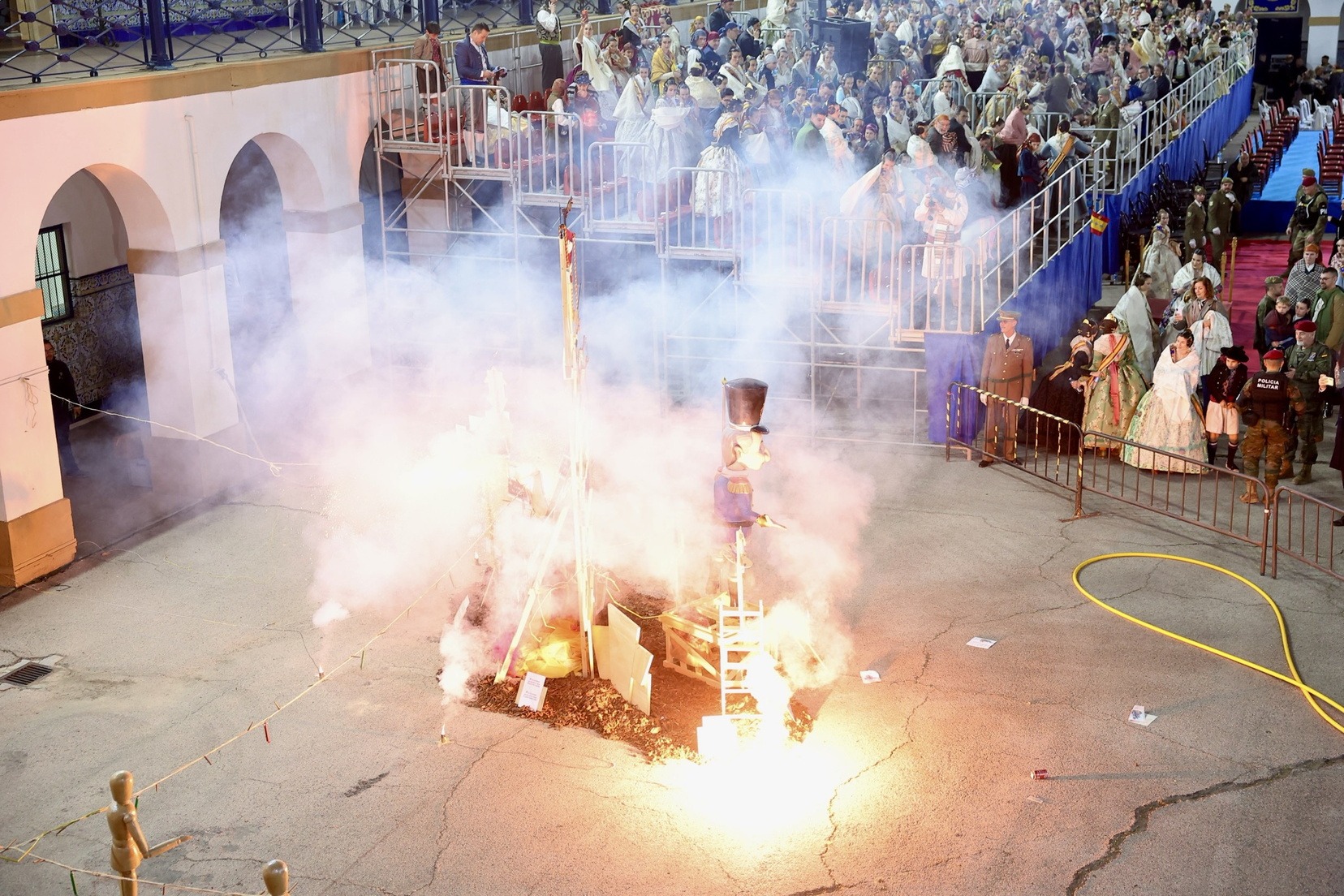 Finalmente, un pequeño espectáculo de fuegos artificiales ha dado paso a la Cremà de las fallas de las Fuerzas Armadas y Guardia Civil, creadas por Juanjo García y Jordi Palanca, poniendo el broche de oro a una de las jornadas más especiales del ejercicio.