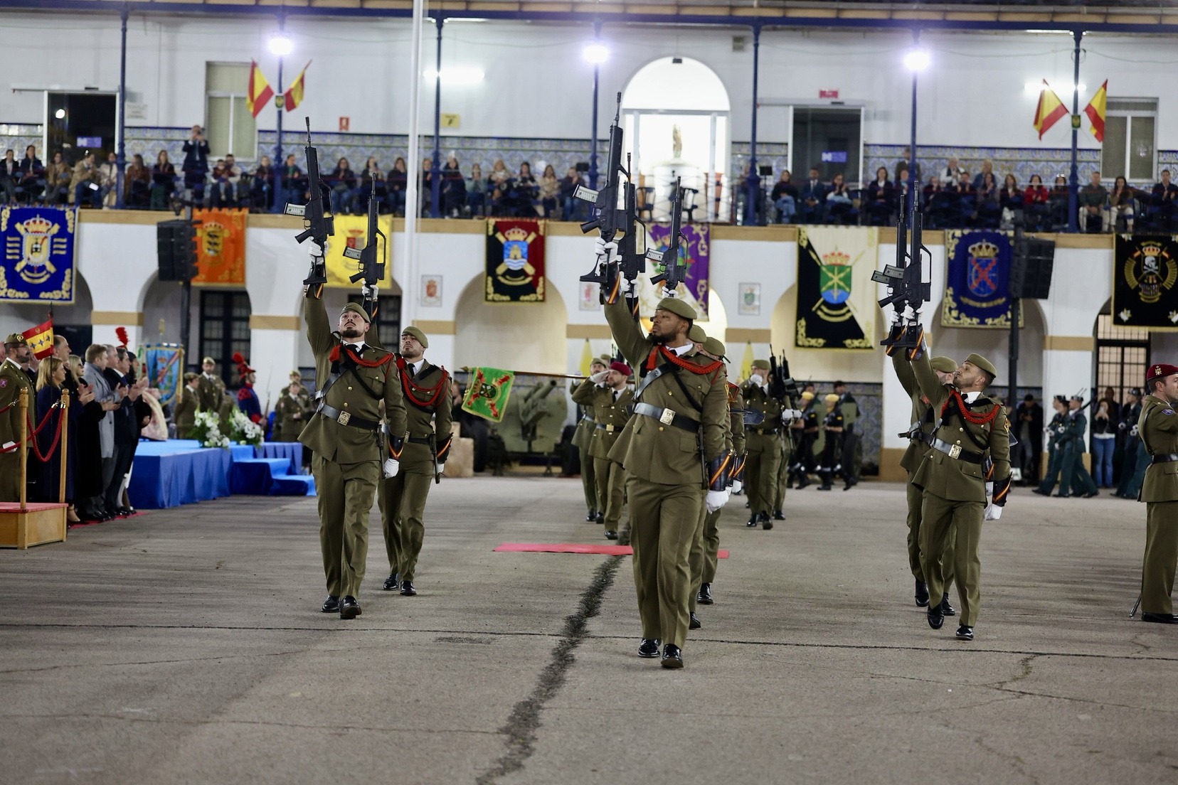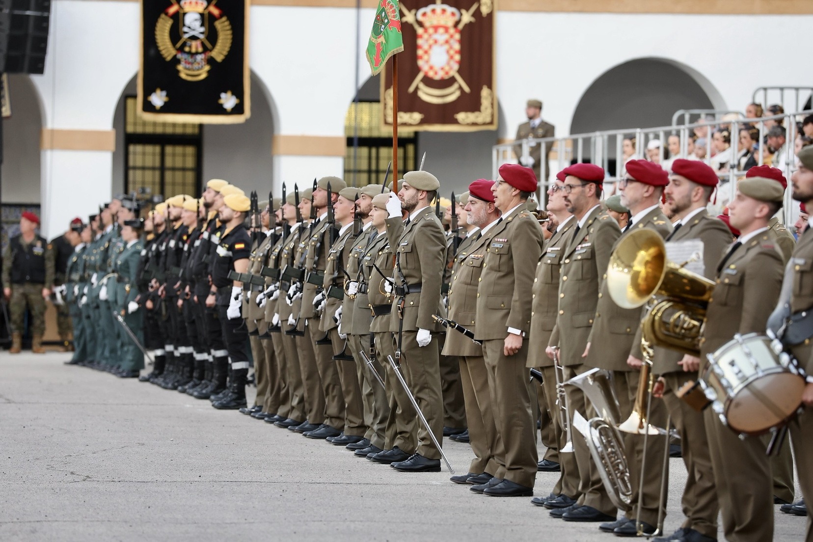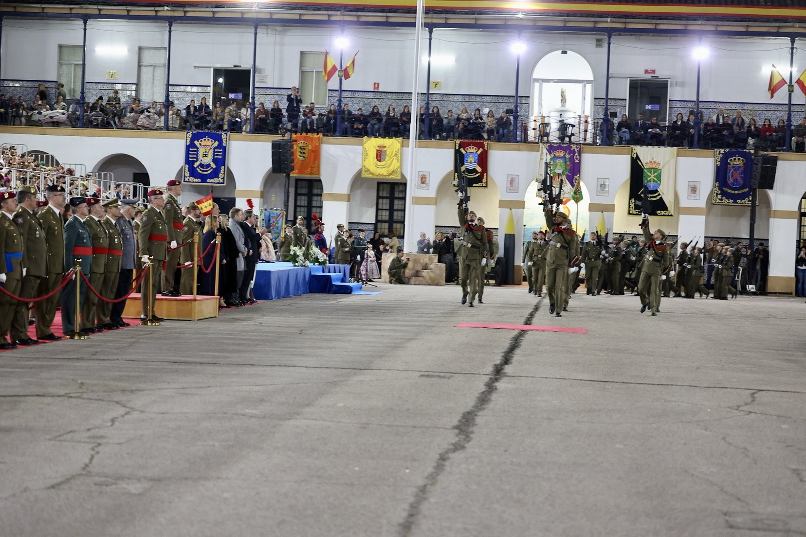 Tras el desfile de la unidad militar en el que han participado diferentes compañías y regimientos, y la entrega de los distintos galardones, se ha vivido uno de los momentos más especiales, la arriada de la bandera de España que ha presidido todo el acto.