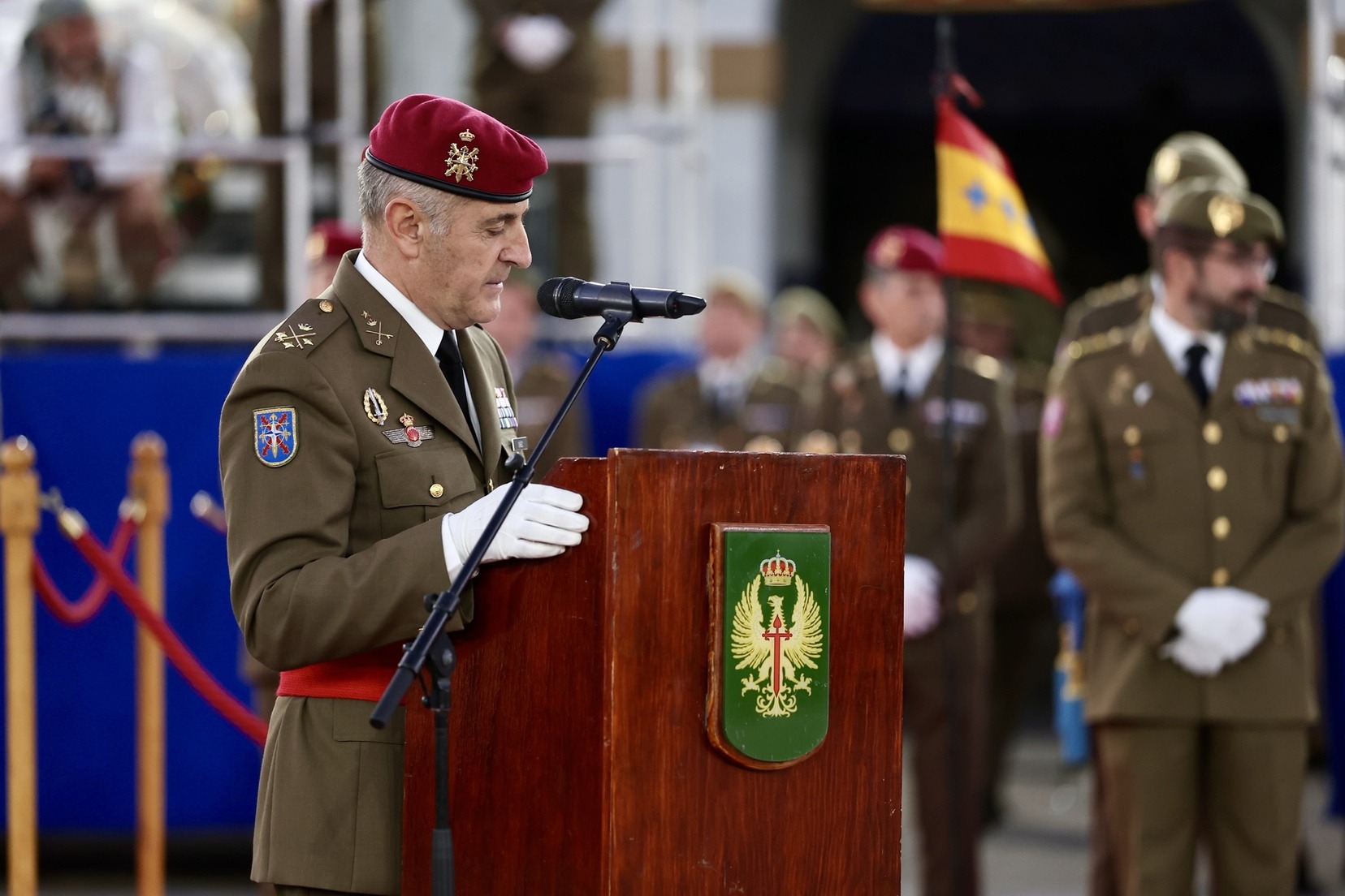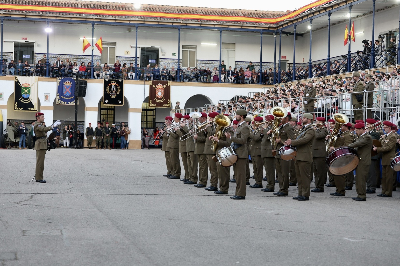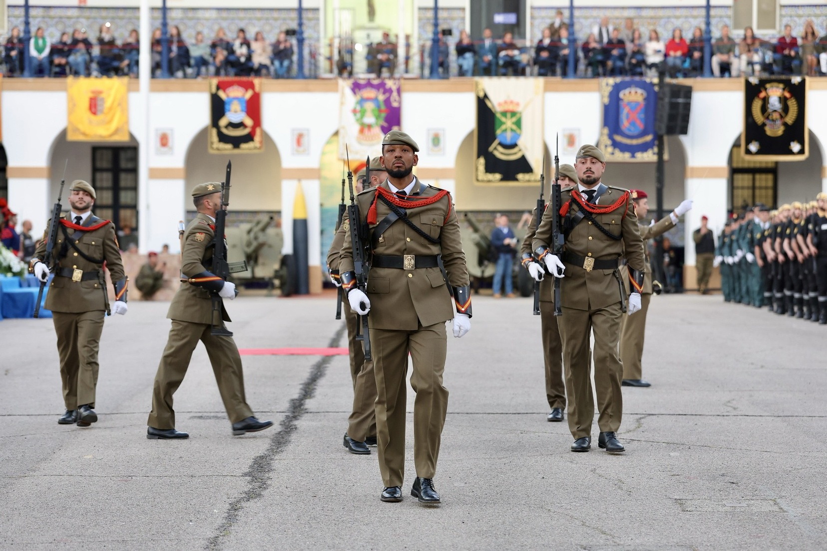 Tras el desfile de la unidad militar en el que han participado diferentes compañías y regimientos, y la entrega de los distintos galardones, se ha vivido uno de los momentos más especiales, la arriada de la bandera de España que ha presidido todo el acto.