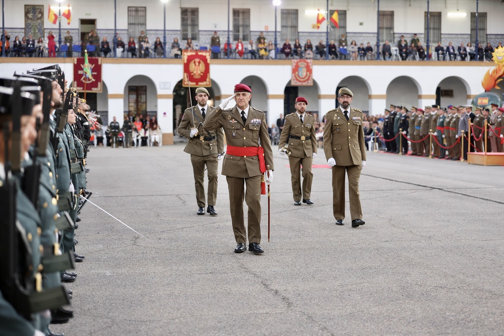 El Acuartelamiento San Juan de Ribera en el Paseo de la Alameda ha acogido esta tarde el homenaje de las Fuerzas Armadas y la Guardia Civil que cada año celebran estos cuerpos a nuestra querida fiesta.