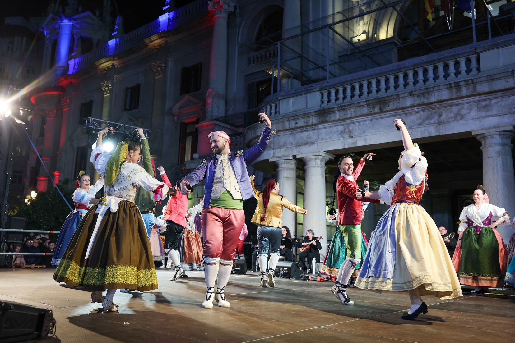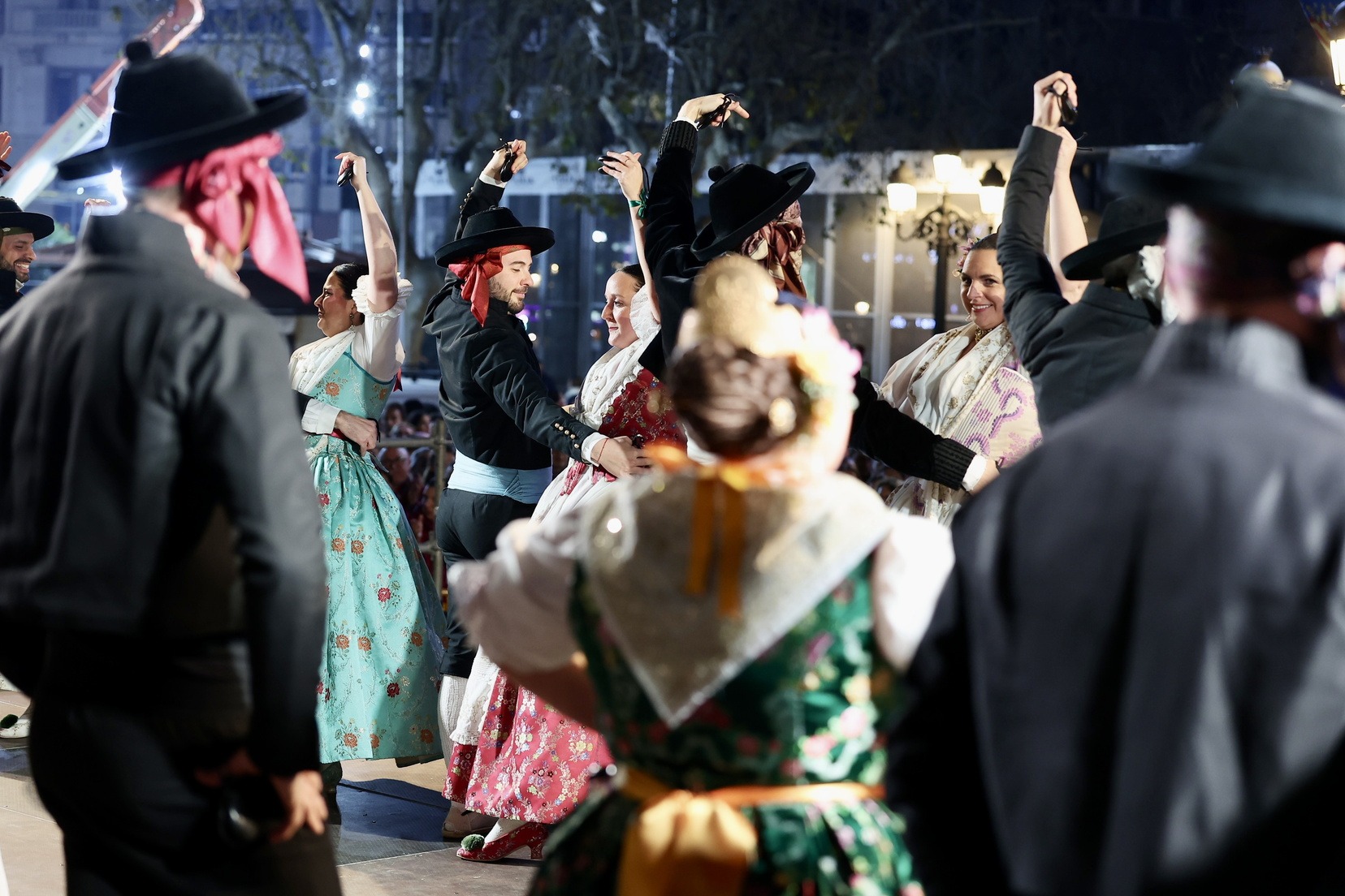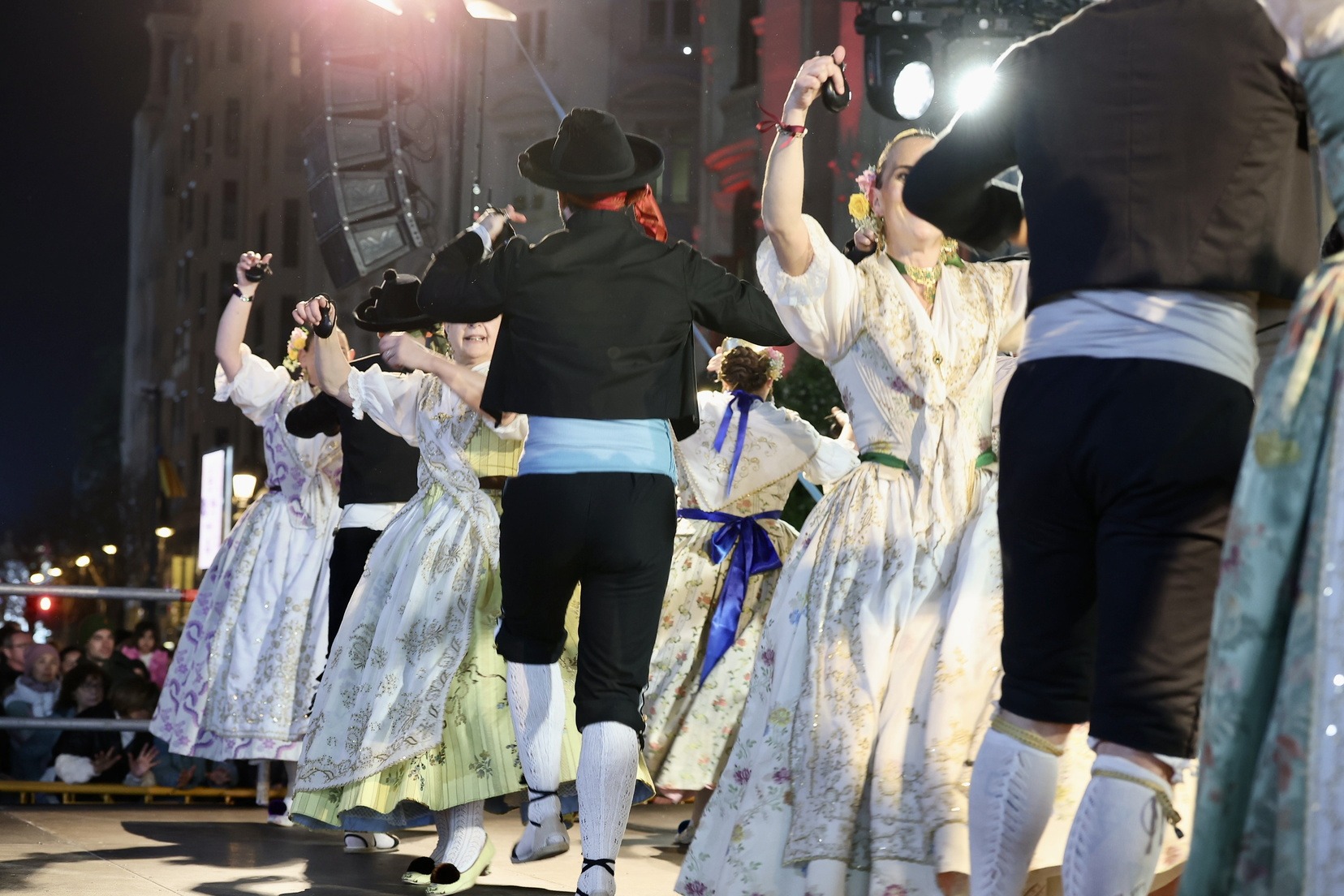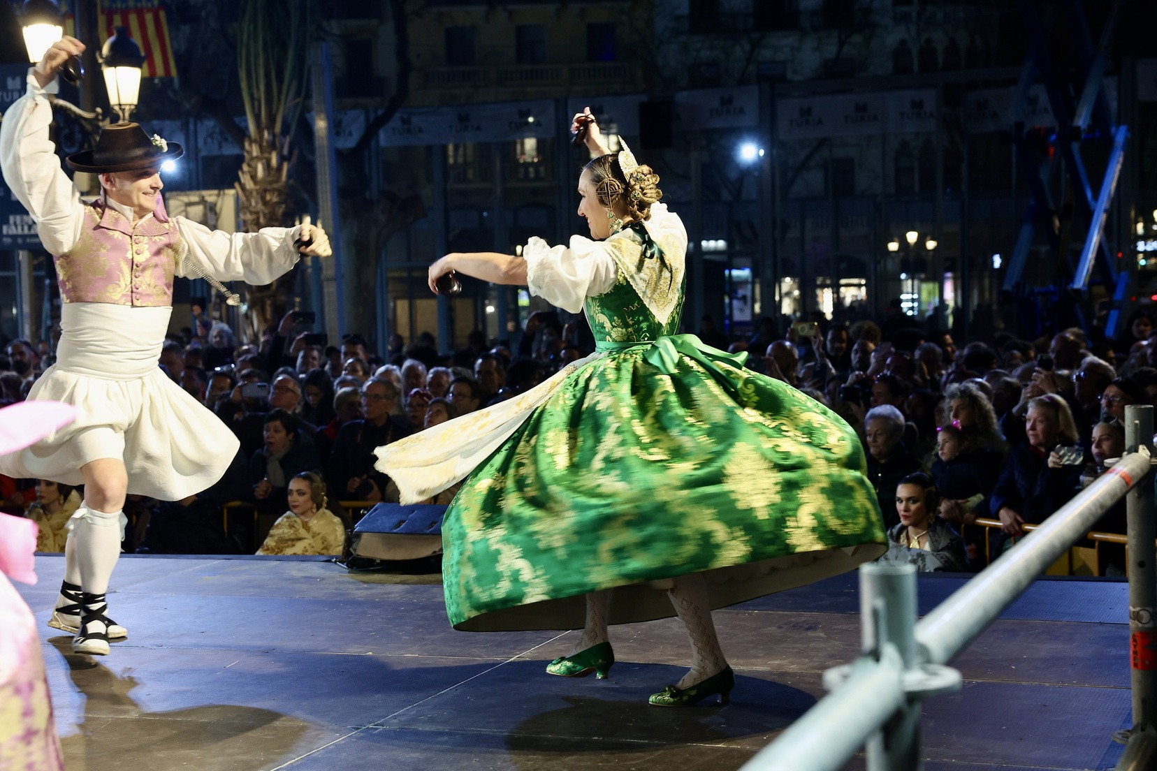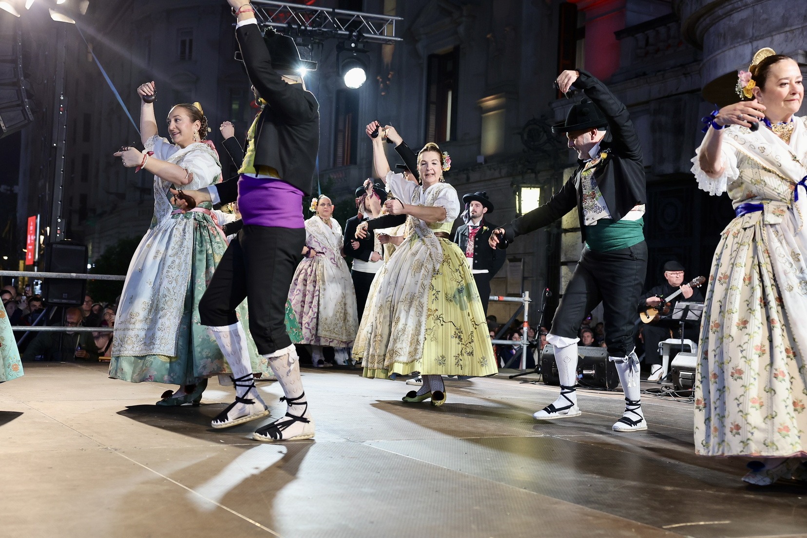 Durante la tarde, distintos grupos de danzas han mostrado al público la riqueza de los bailes tradicionales valencianos, con trajes típicos y música en directo, en una exhibición que ha reunido a numerosos falleros, falleras y visitantes que se encontraban en el corazón de la ciudad.