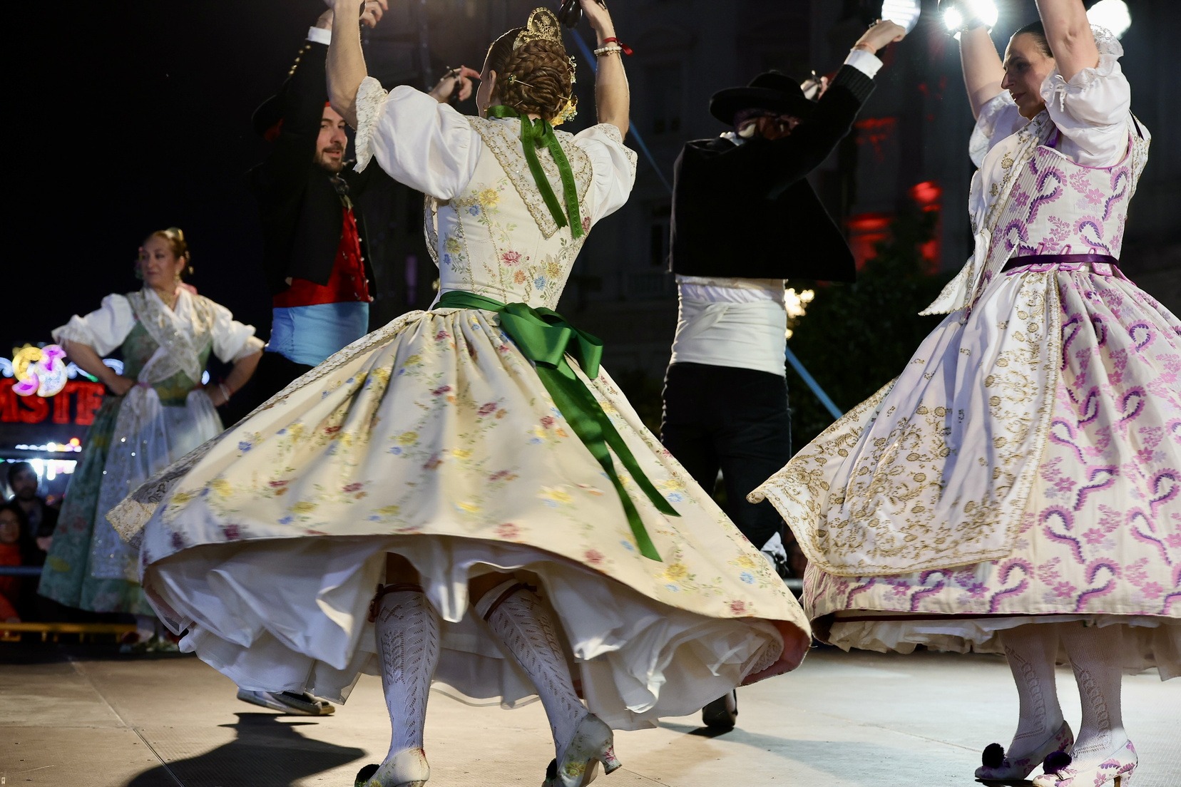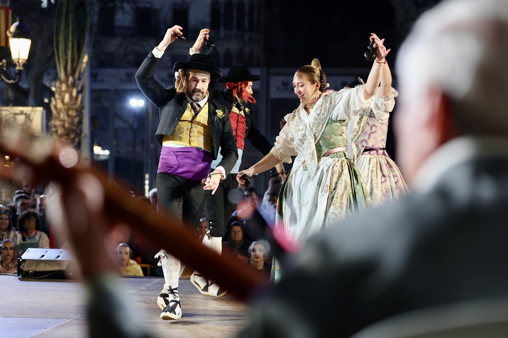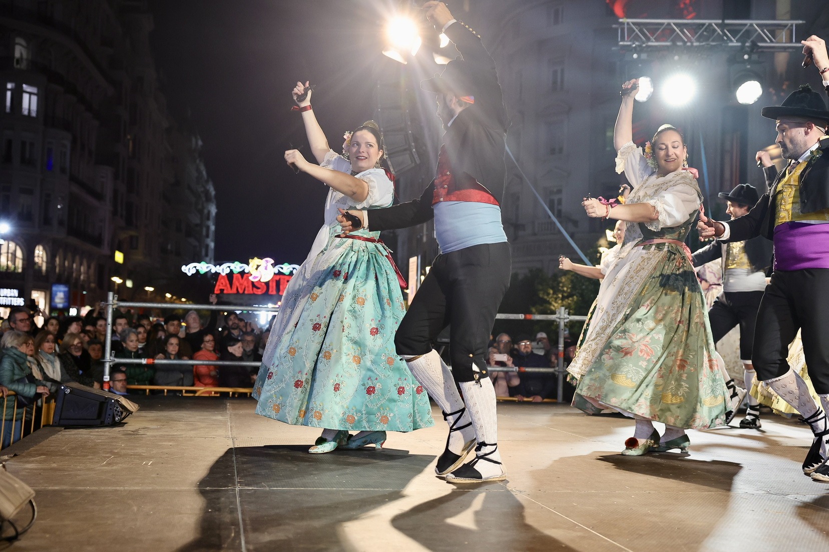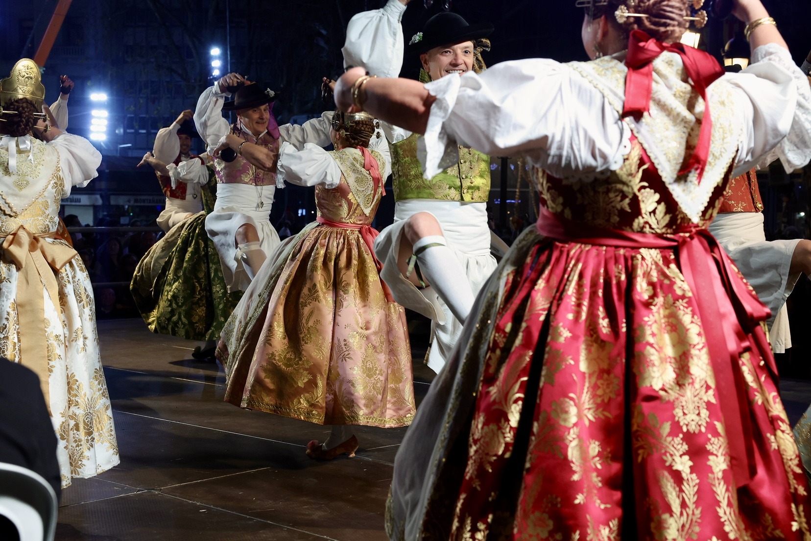 Durante la tarde, distintos grupos de danzas han mostrado al público la riqueza de los bailes tradicionales valencianos, con trajes típicos y música en directo, en una exhibición que ha reunido a numerosos falleros, falleras y visitantes que se encontraban en el corazón de la ciudad.