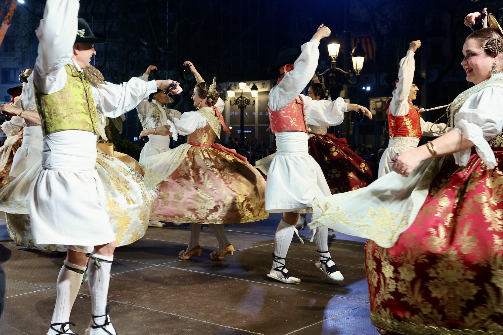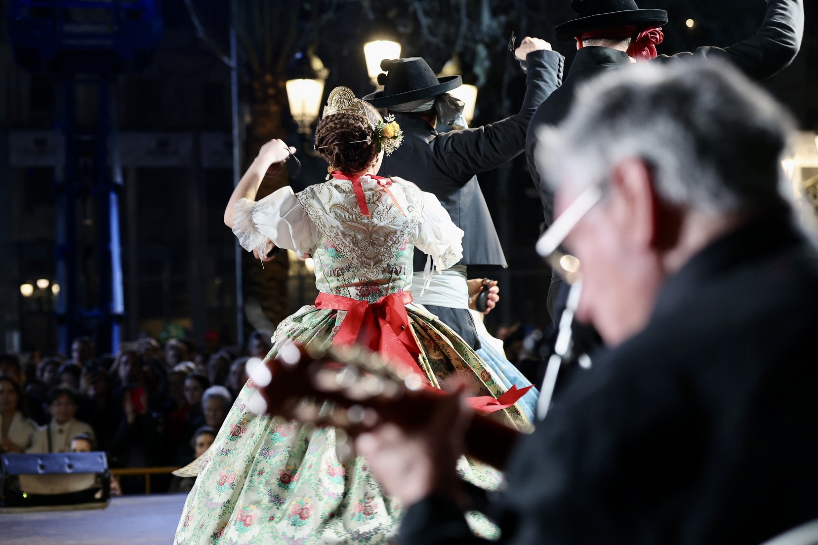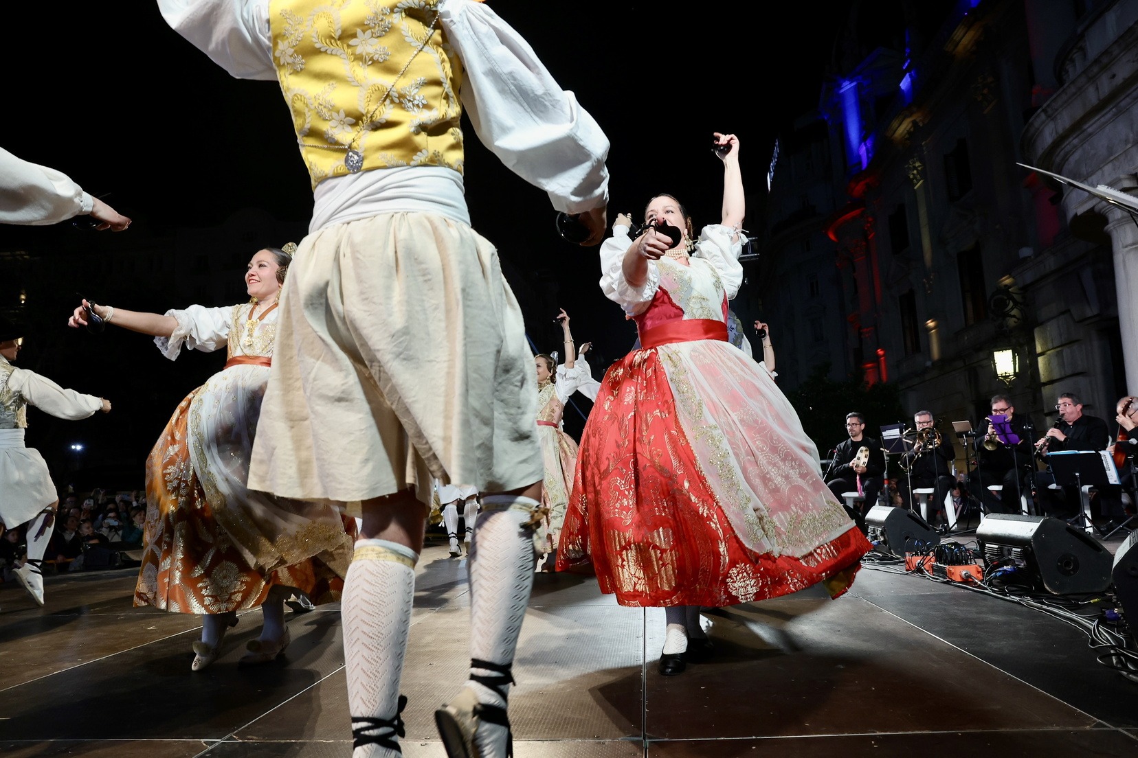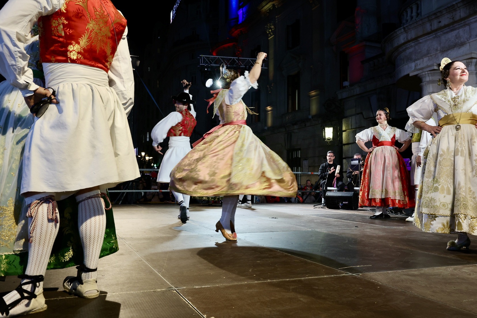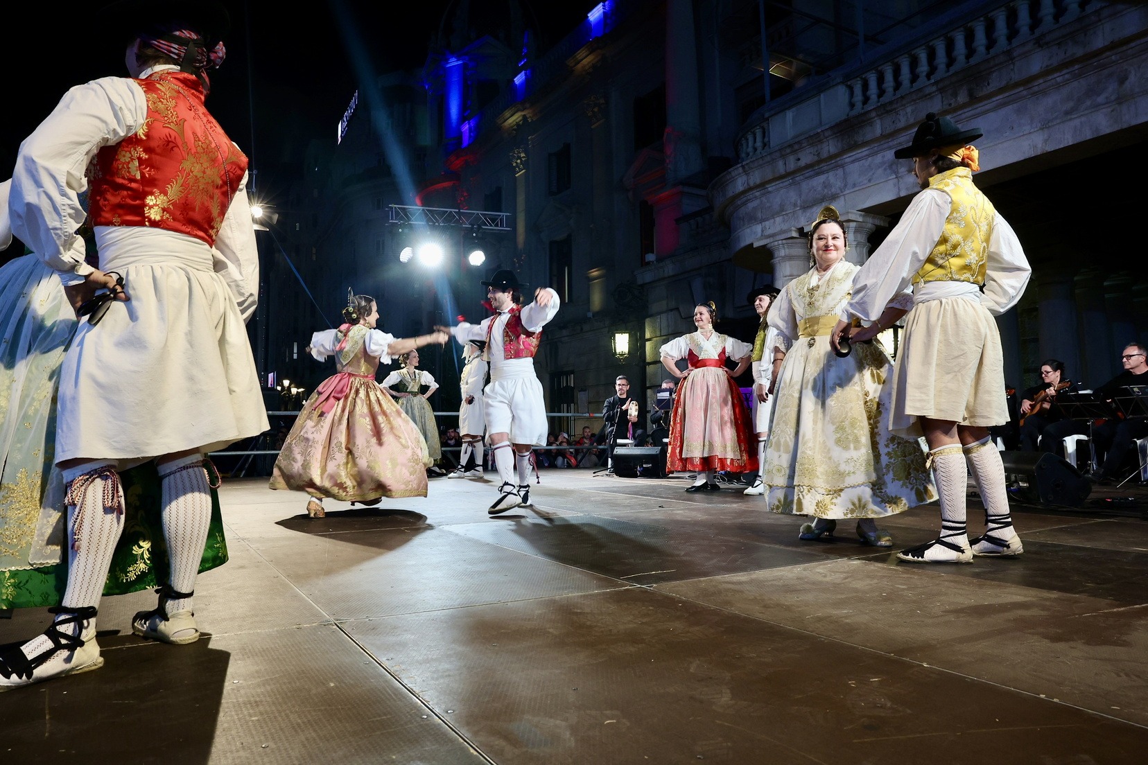 Durante la tarde, distintos grupos de danzas han mostrado al público la riqueza de los bailes tradicionales valencianos, con trajes típicos y música en directo, en una exhibición que ha reunido a numerosos falleros, falleras y visitantes que se encontraban en el corazón de la ciudad.