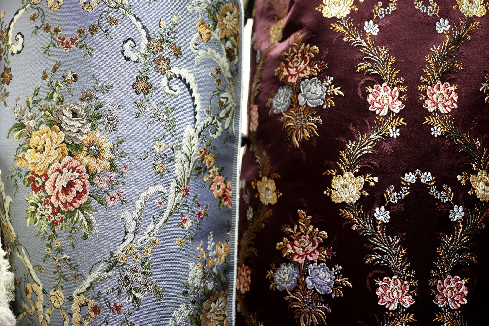 El espacio La Linterna Eventos ha acogido esta tarde la presentación de las telas que lucirá la Corte de Honor de la Fallera Mayor de Valencia, Carmen Prades Gil, en su reinado. Unos tejidos que salen de los telares de la firma Sedería Tradicional Valenciana.