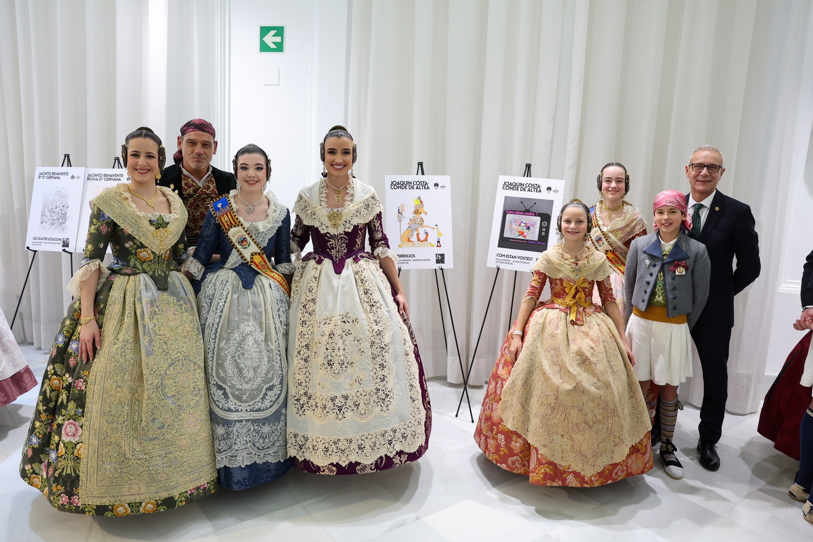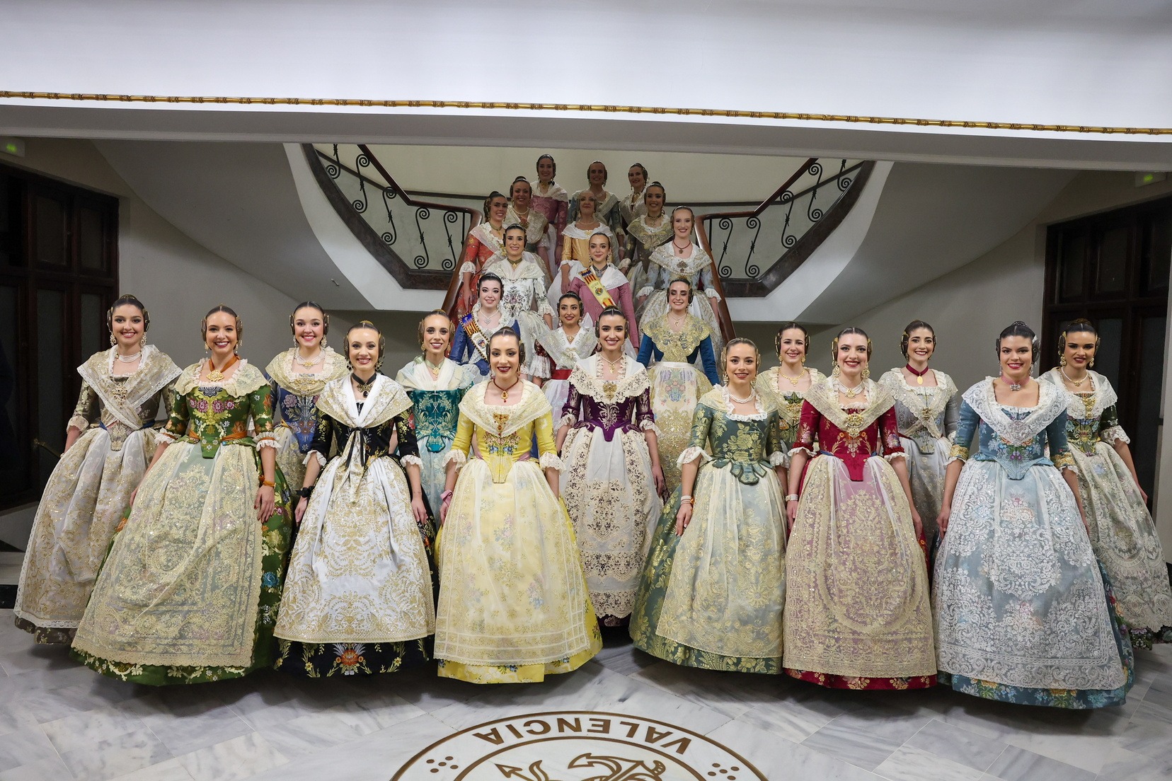 Previamente al inicio del acto, las Falleras Mayores de Valencia, Carmen y Marta, acompañadas por sus Cortes de Honor, han visitado la exposición con los bocetos, donde han podido conocer de cerca las propuestas artísticas de cada comisión y el trabajo previo desarrollado. Junto a ellas han estado los representantes de las comisiones, quienes les han explicado cada detalle de las fallas que se plantarán en poco más de dos meses.